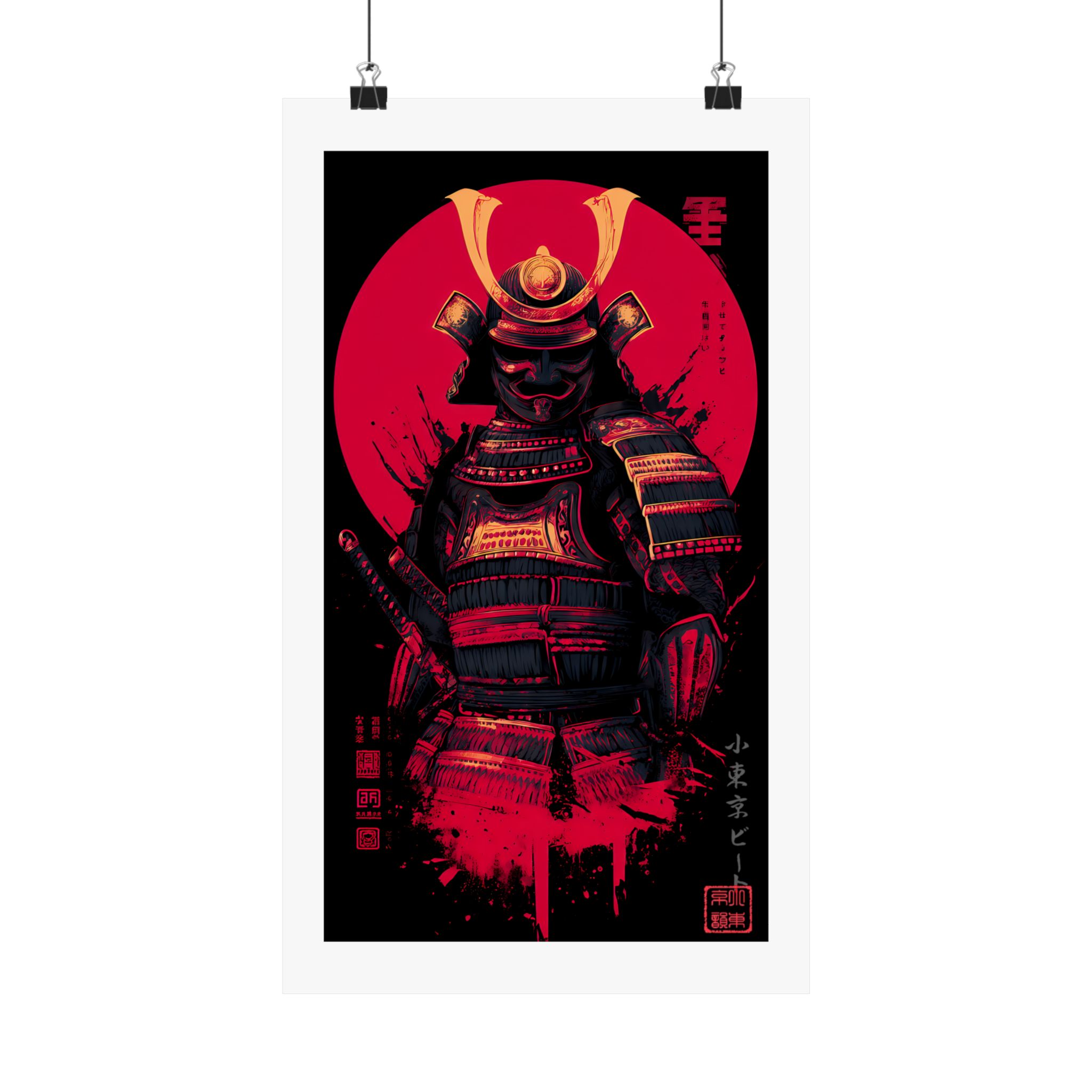 Samurai Poster — Red Sun Matte Vertical Art Print