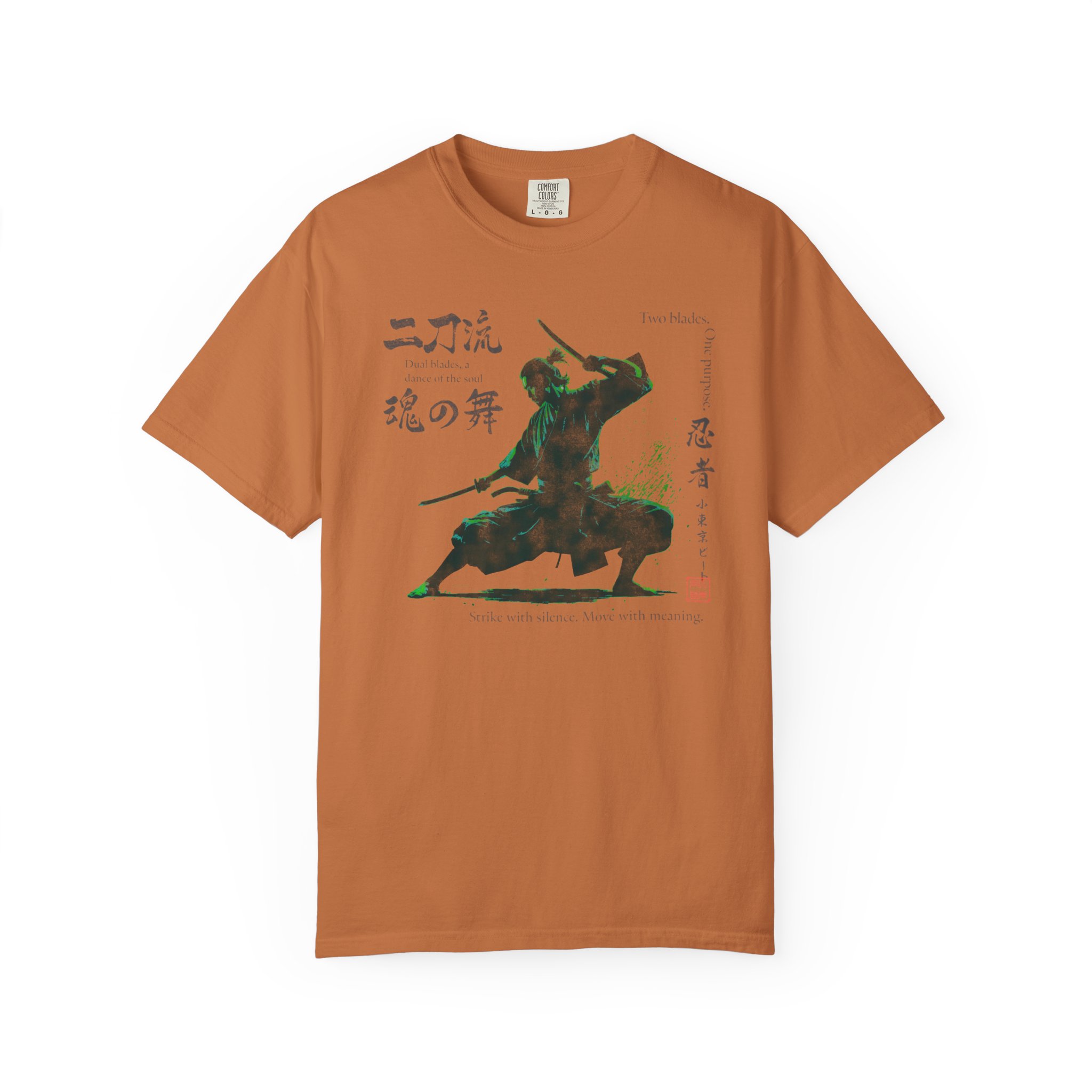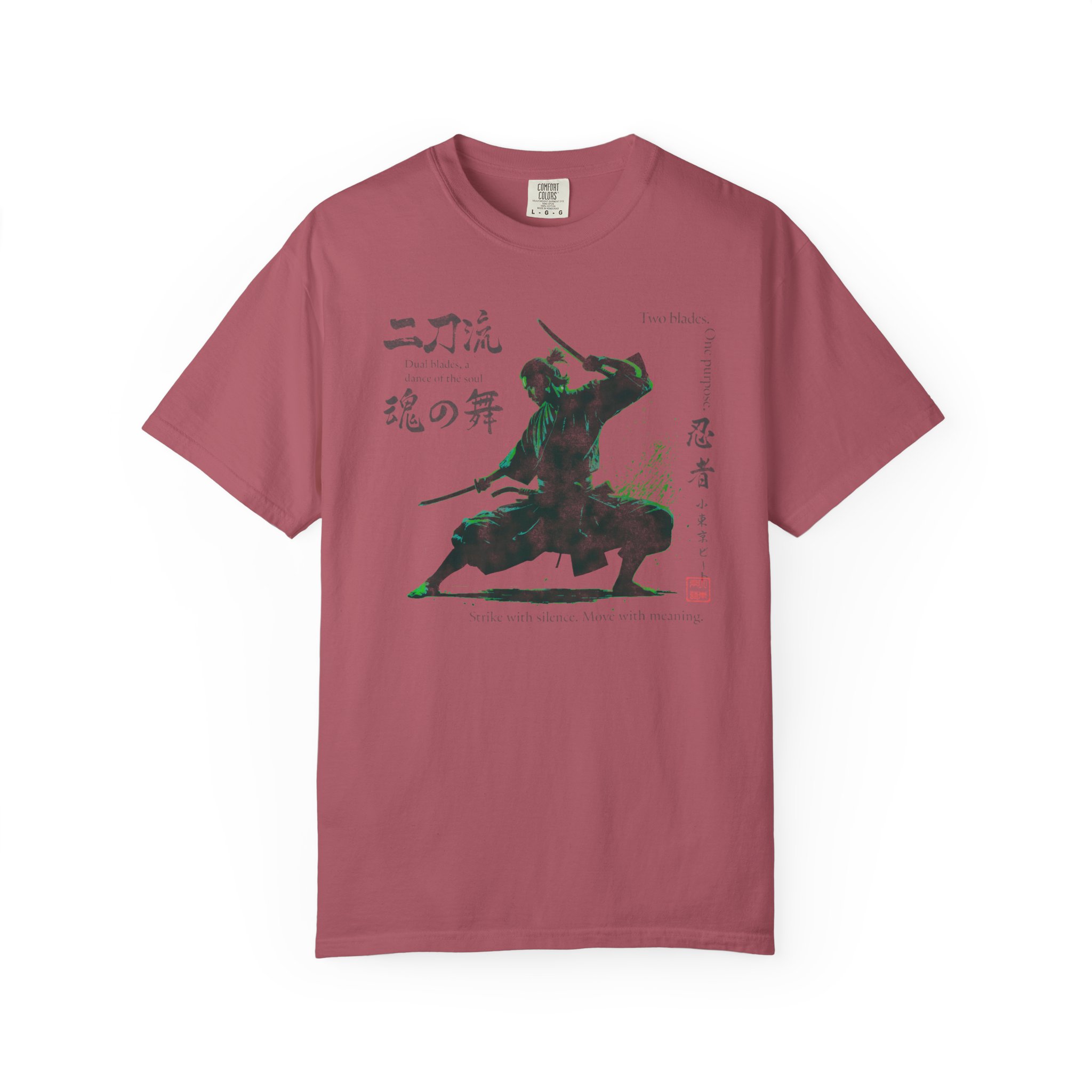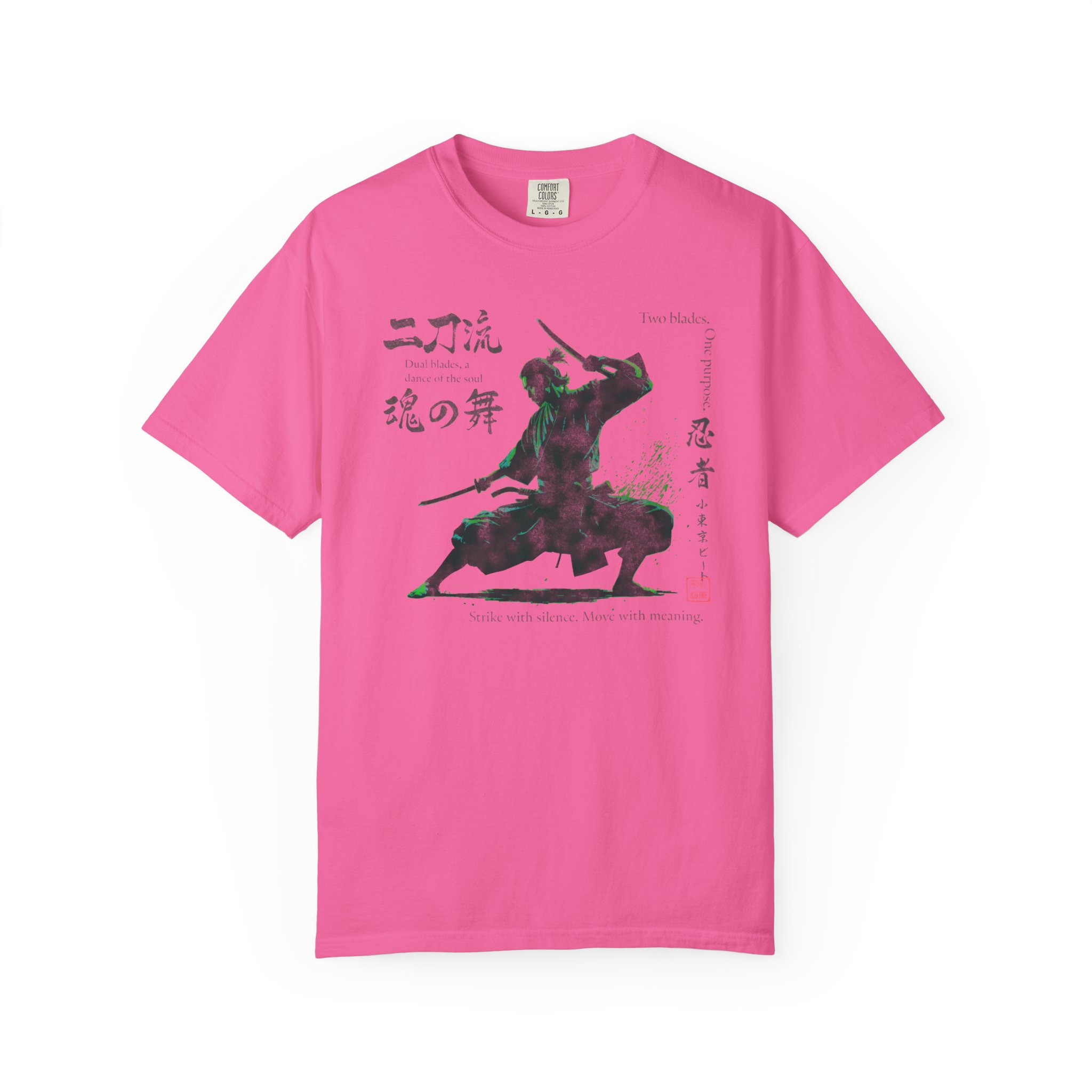 This Two Sword Style Ninja Tee features a Lil Tokyo Beat graphic, giving off a Japanese Soul Dance vibe. This unique and stylish tee is perfect for those who love Japanese culture and ninja themes. It is a great addition to your casual wardrobe and ideal for fans of martial arts and anime. Perfect for wearing on Japanese themed parties, Anime Conventions, or everyday wear for ninja enthusiasts. Product features – Available in sizes S to 4XL for the perfect fit – Double-needle stitching for durability – Made with garment-dyed fabric for a soft texture – Meant for adults – Ethically made with 100% US cotton Care instructions – Machine wash: cold (max 30C or 90F) – Do not bleach – Tumble dry: low heat – Iron, steam or dry: low heat – Do not dryclean