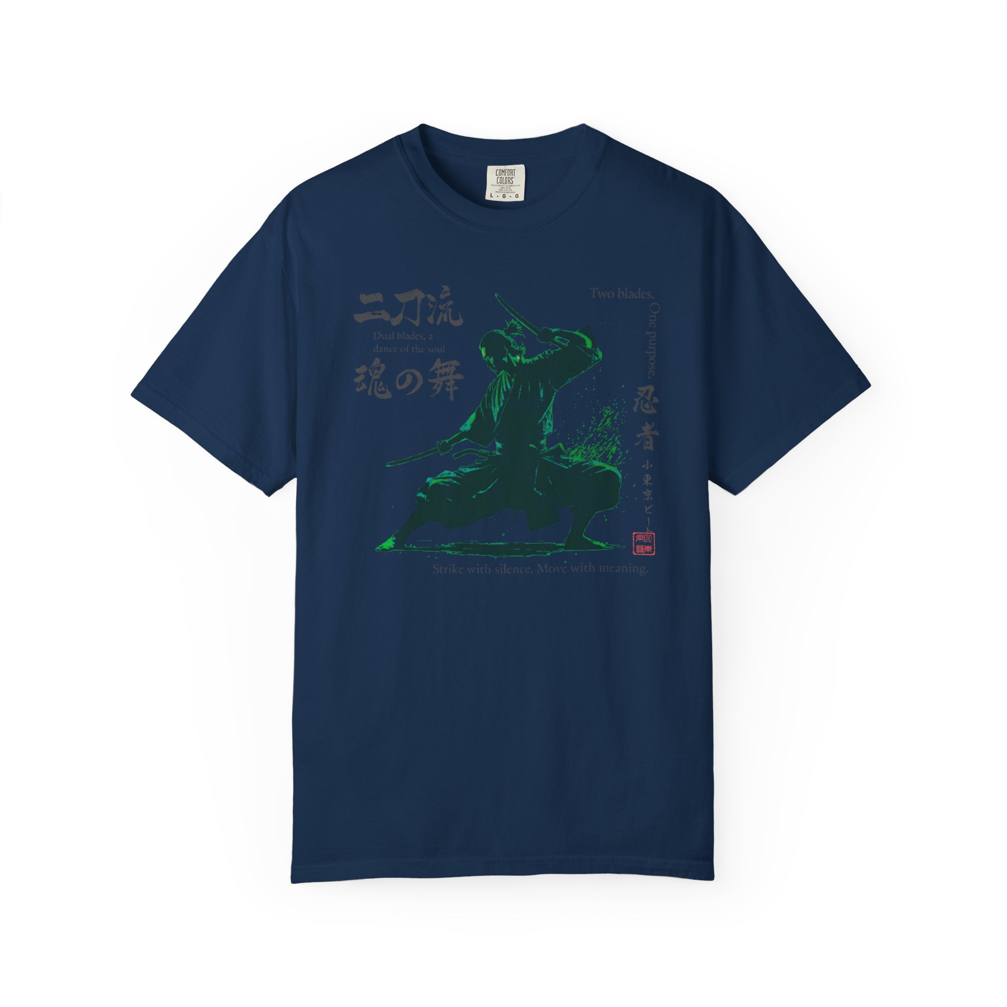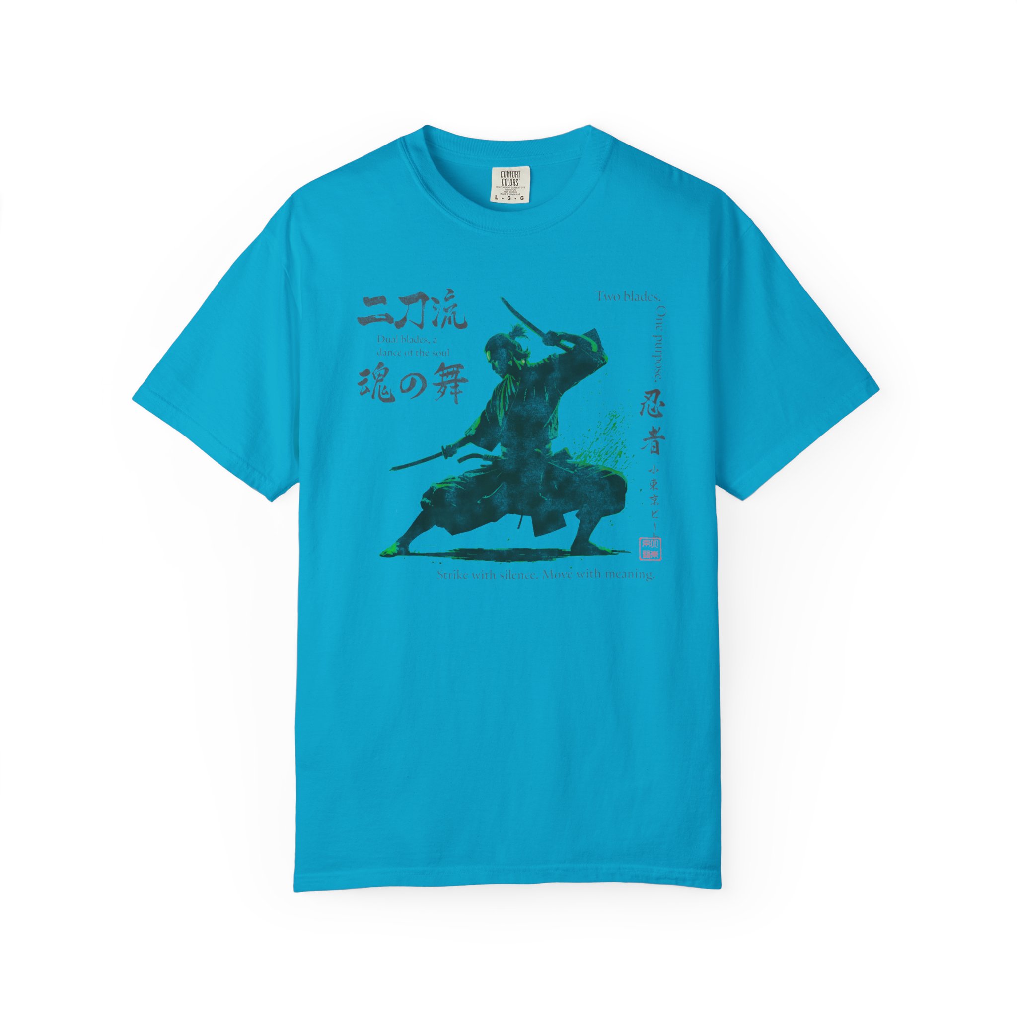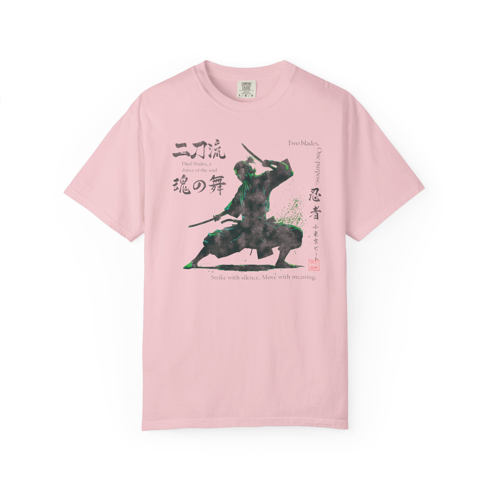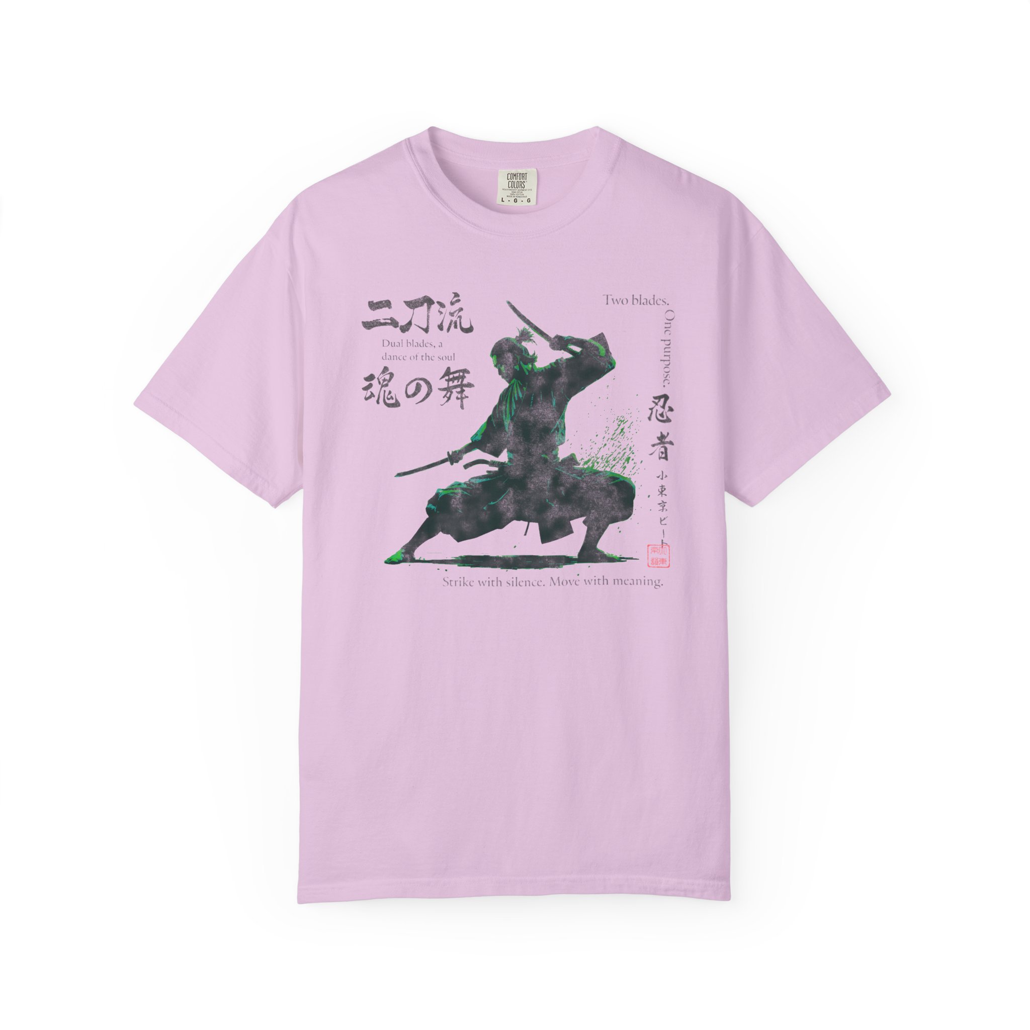 This Two Sword Style Ninja Tee features a Lil Tokyo Beat graphic, giving off a Japanese Soul Dance vibe. This unique and stylish tee is perfect for those who love Japanese culture and ninja themes. It is a great addition to your casual wardrobe and ideal for fans of martial arts and anime. Perfect for wearing on Japanese themed parties, Anime Conventions, or everyday wear for ninja enthusiasts. Product features – Available in sizes S to 4XL for the perfect fit – Double-needle stitching for durability – Made with garment-dyed fabric for a soft texture – Meant for adults – Ethically made with 100% US cotton Care instructions – Machine wash: cold (max 30C or 90F) – Do not bleach – Tumble dry: low heat – Iron, steam or dry: low heat – Do not dryclean