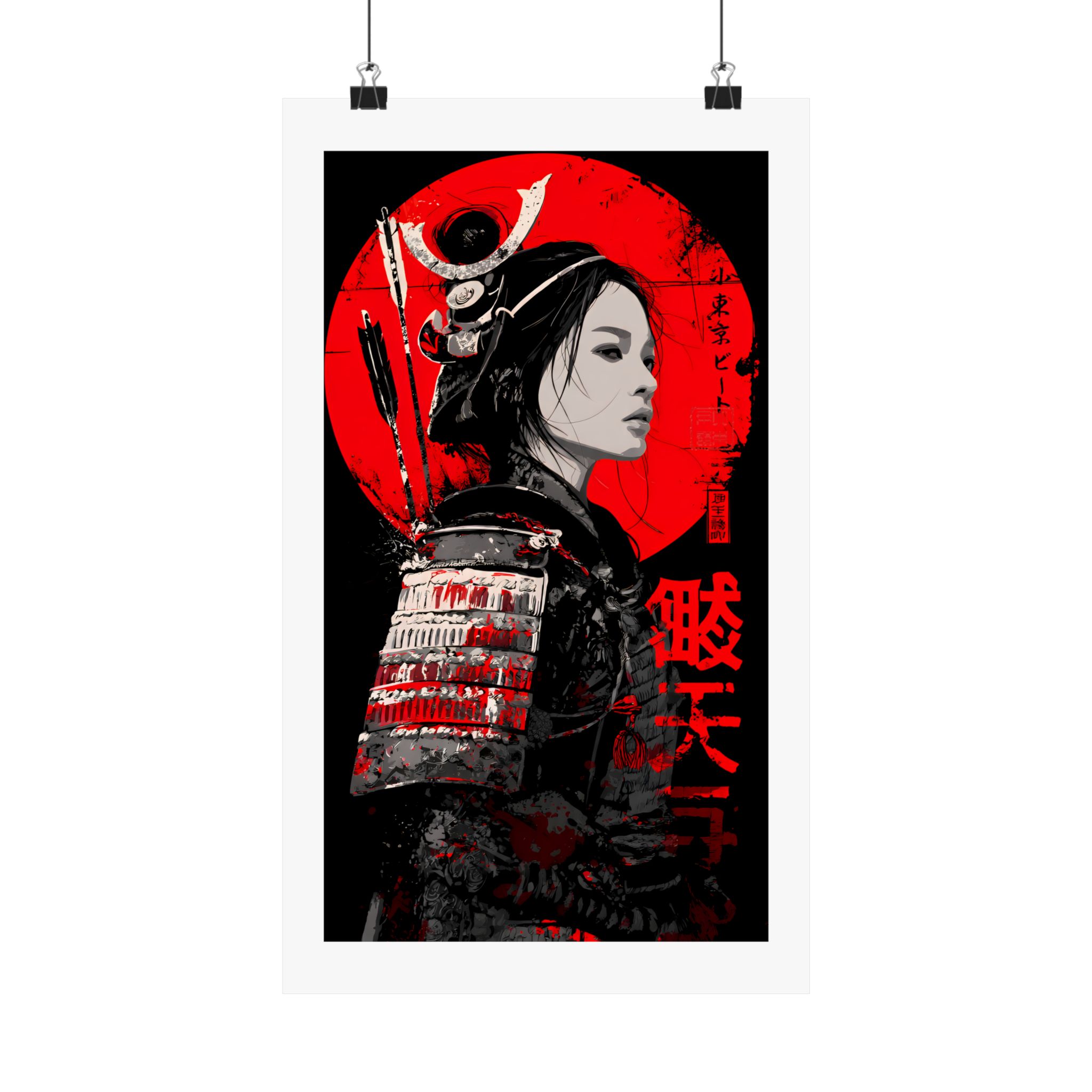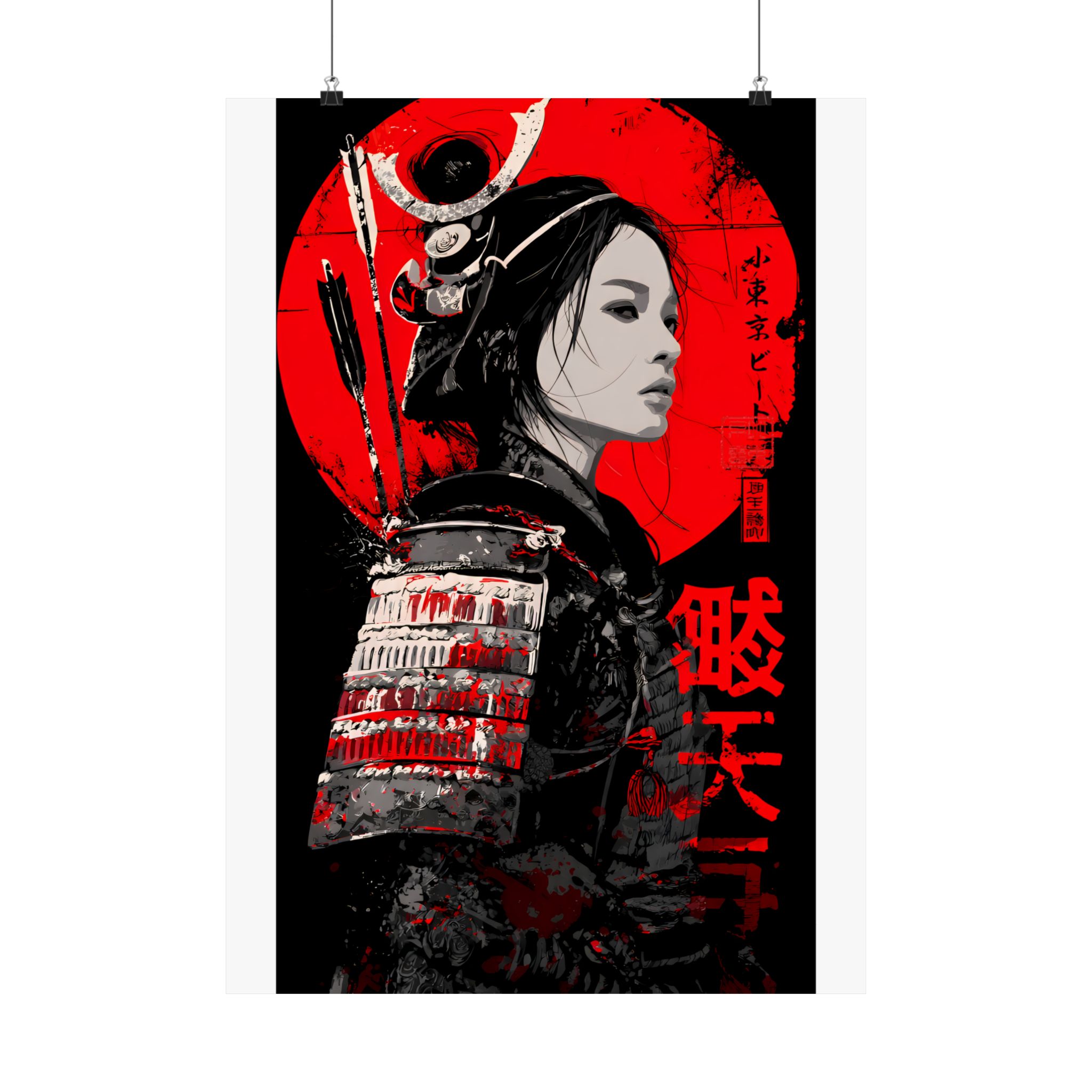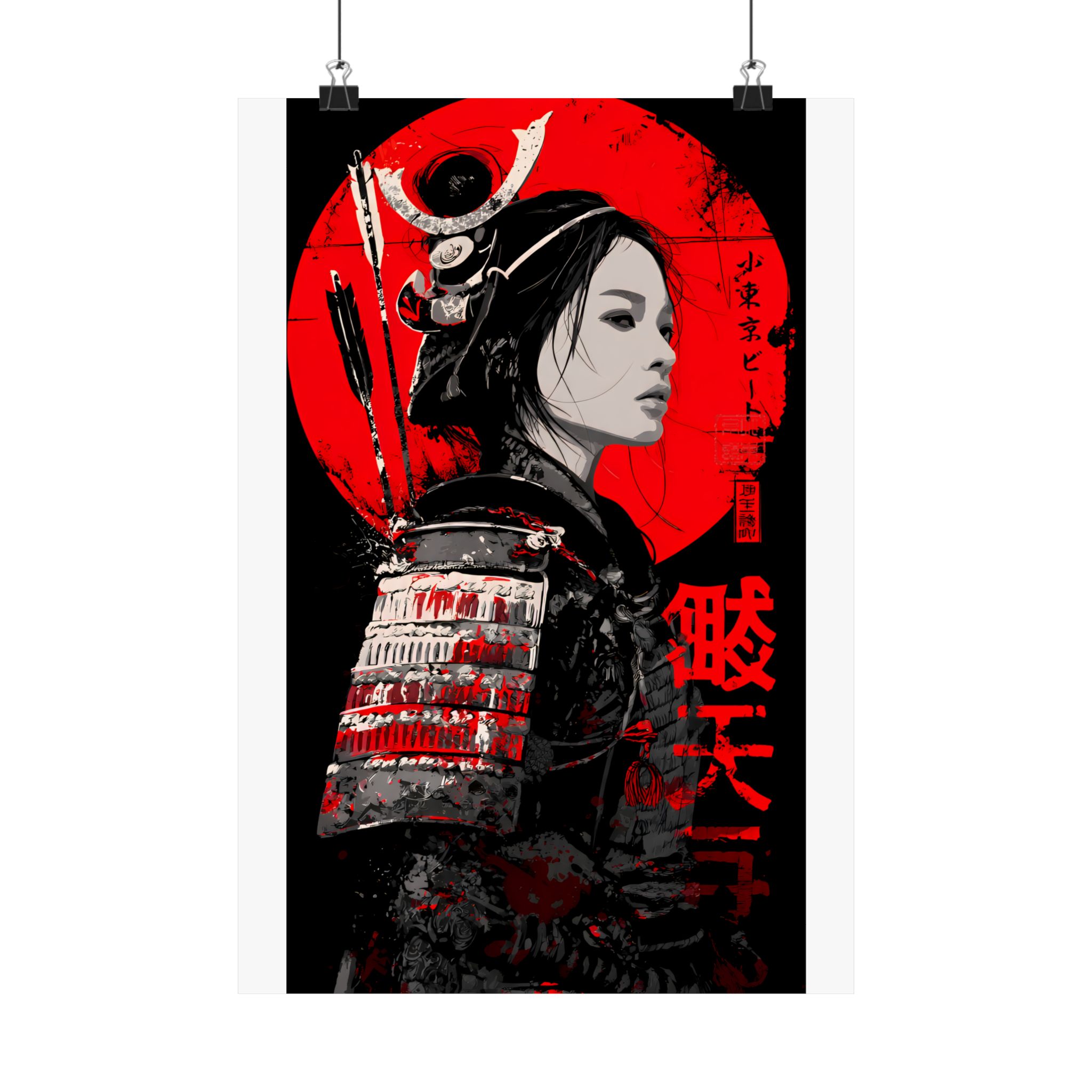 This striking samurai warrior woman poster blends Japanese heritage aesthetics with modern graphic intensity. Featuring a fierce female samurai in traditional armor set against a bold red sun, this artwork captures strength, honor, and quiet power. The dramatic red, black, and monochrome palette creates a cinematic, gallery-style presence that commands attention in any space. Perfect for fans of Japanese culture, warrior art, anime-inspired decor, and modern Asian-influenced interiors, this poster brings Lil Tokyo Beat’s K.A.T. spirit — Kool, Artful, Timeless — into your home, studio, or office. A powerful statement piece that celebrates resilience, beauty, and warrior energy.