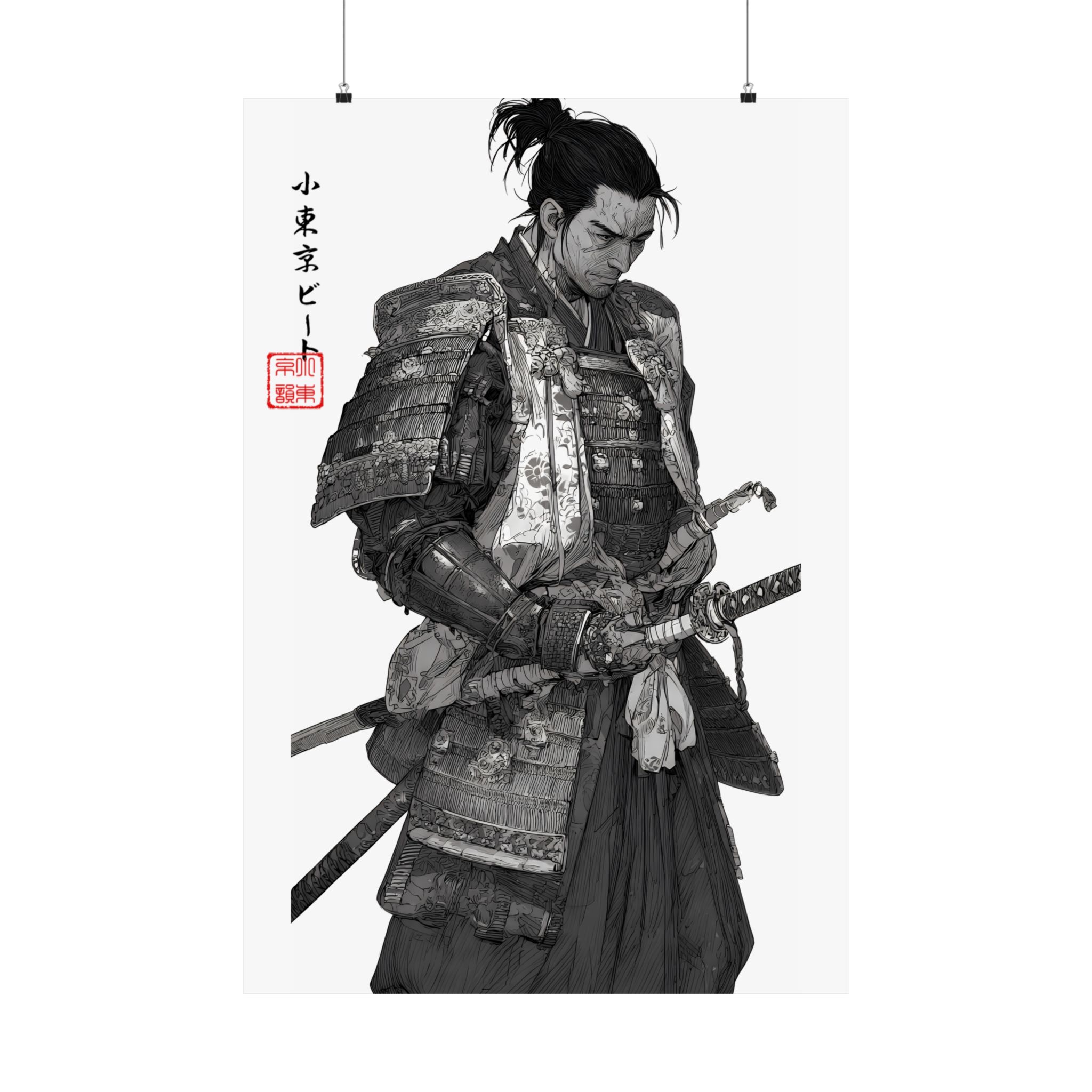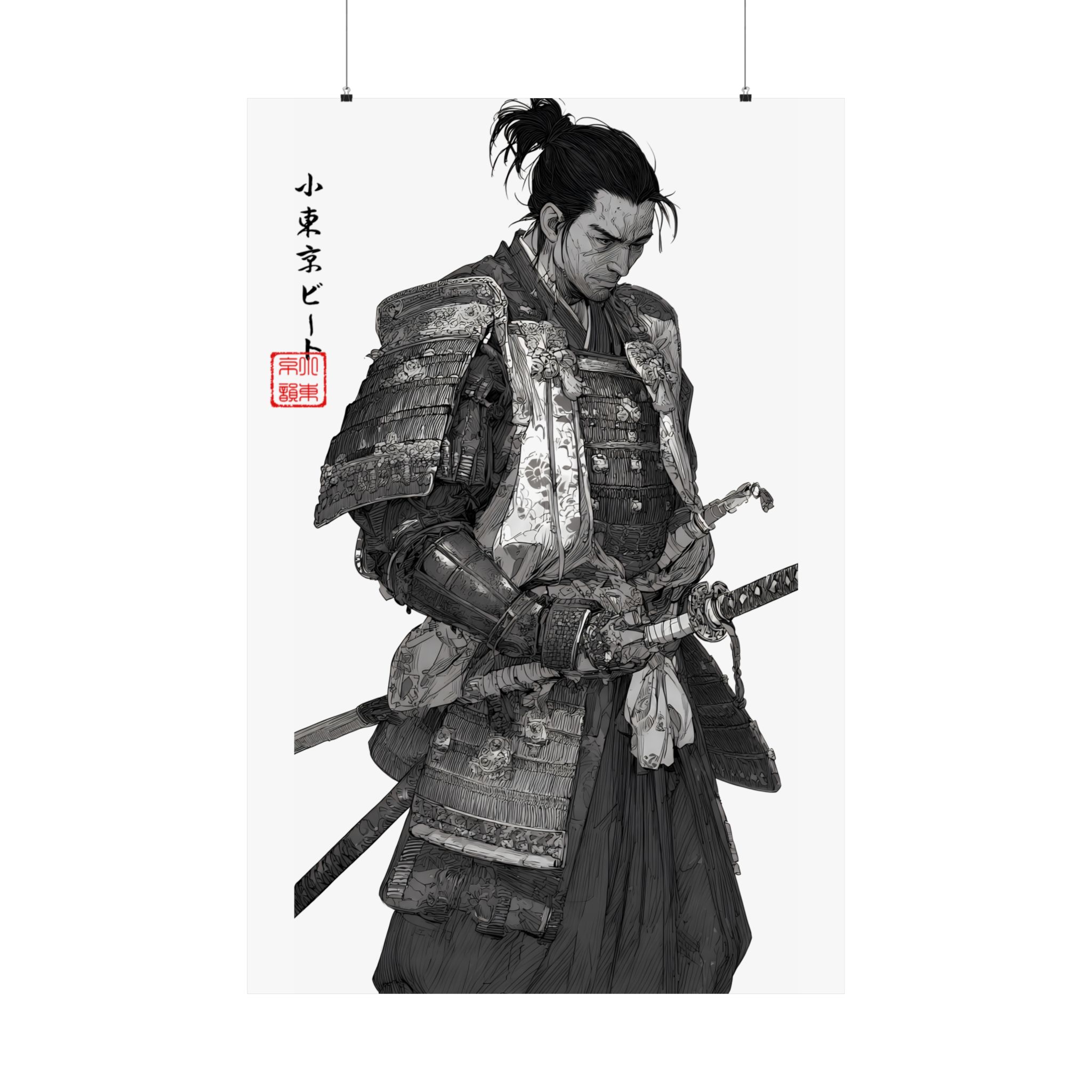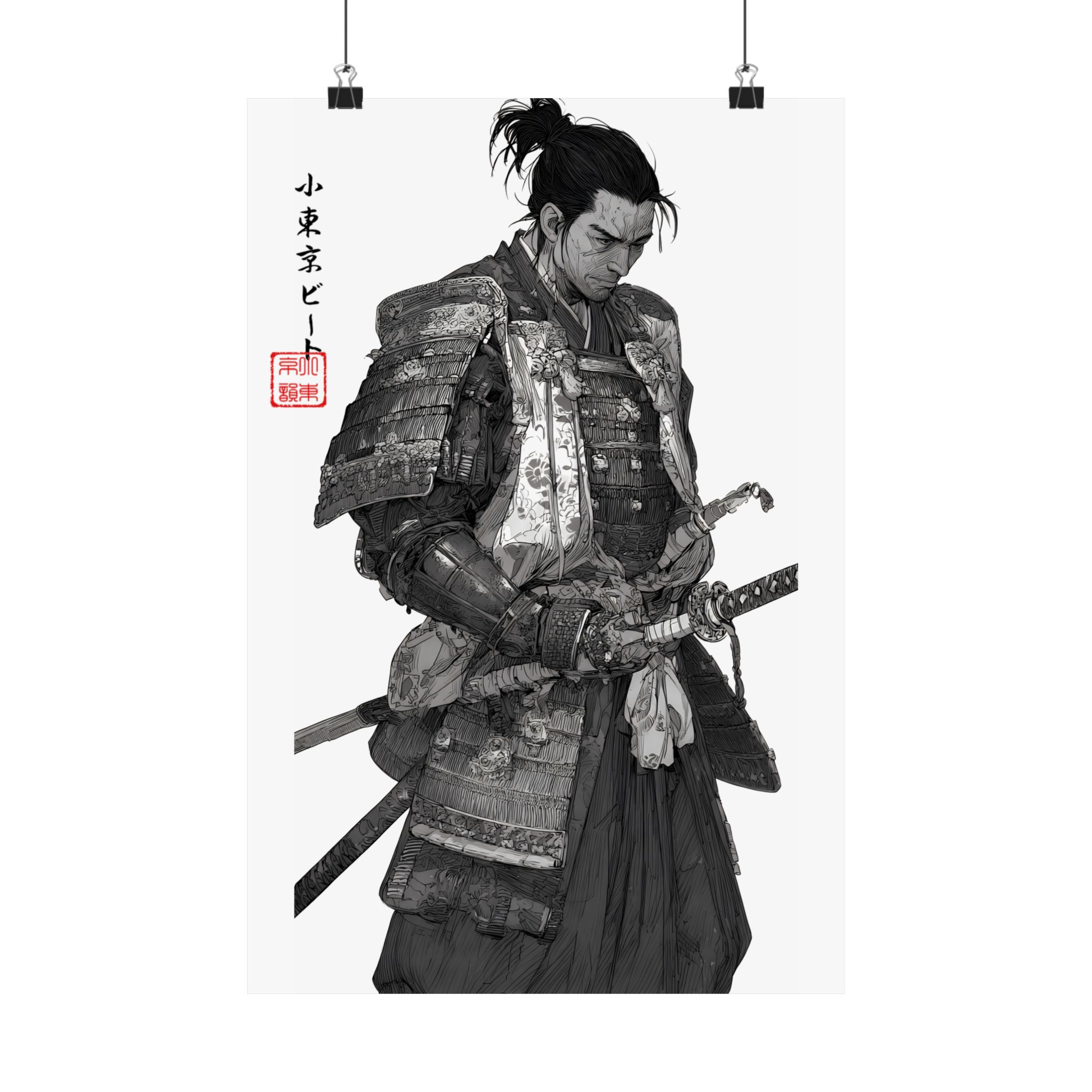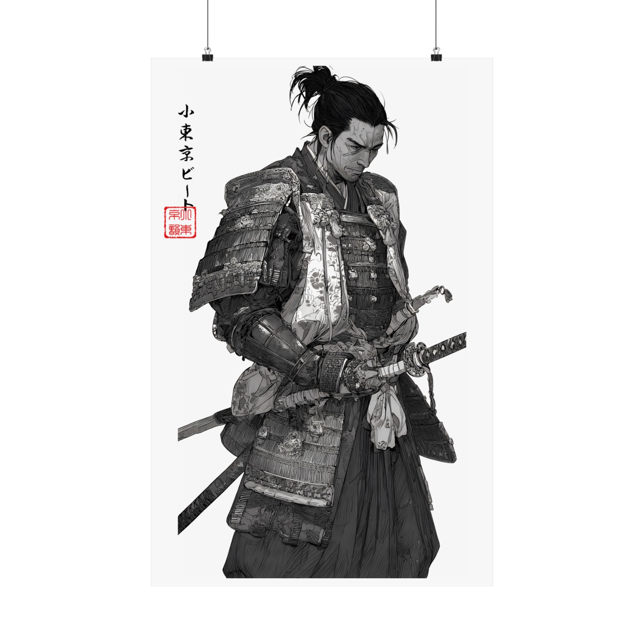 This matte vertical poster brings a quiet, reverent moment from a samurai’s life into your space. Rendered in monochrome with delicate shading and museum-grade detail, the print captures the weight of armor, the calm before action, and a contemplative pause at the edge of dusk. Hang it in a study, studio, or hallway to introduce an atmosphere of discipline, history, and focused calm. The absorbent matte surface keeps glare low and emphasizes pencil-like textures, while archival giclée inks preserve the deep blacks and subtle grays so the piece ages like a treasured sketch rather than a mass print. Available in many sizes for framing or floating on a wall, this poster complements minimalist, vintage, and historical-themed interiors and invites longer looks and quiet reflection.