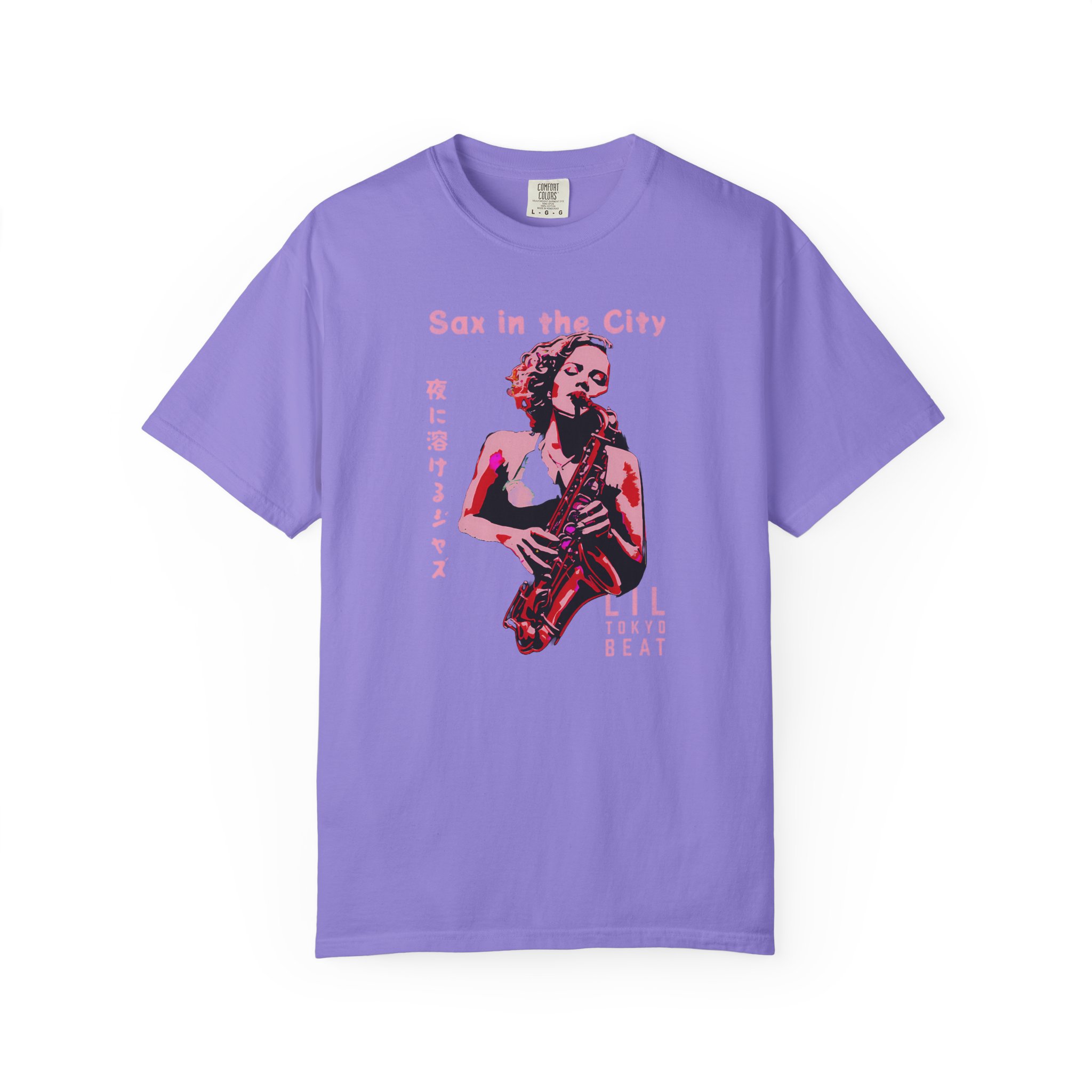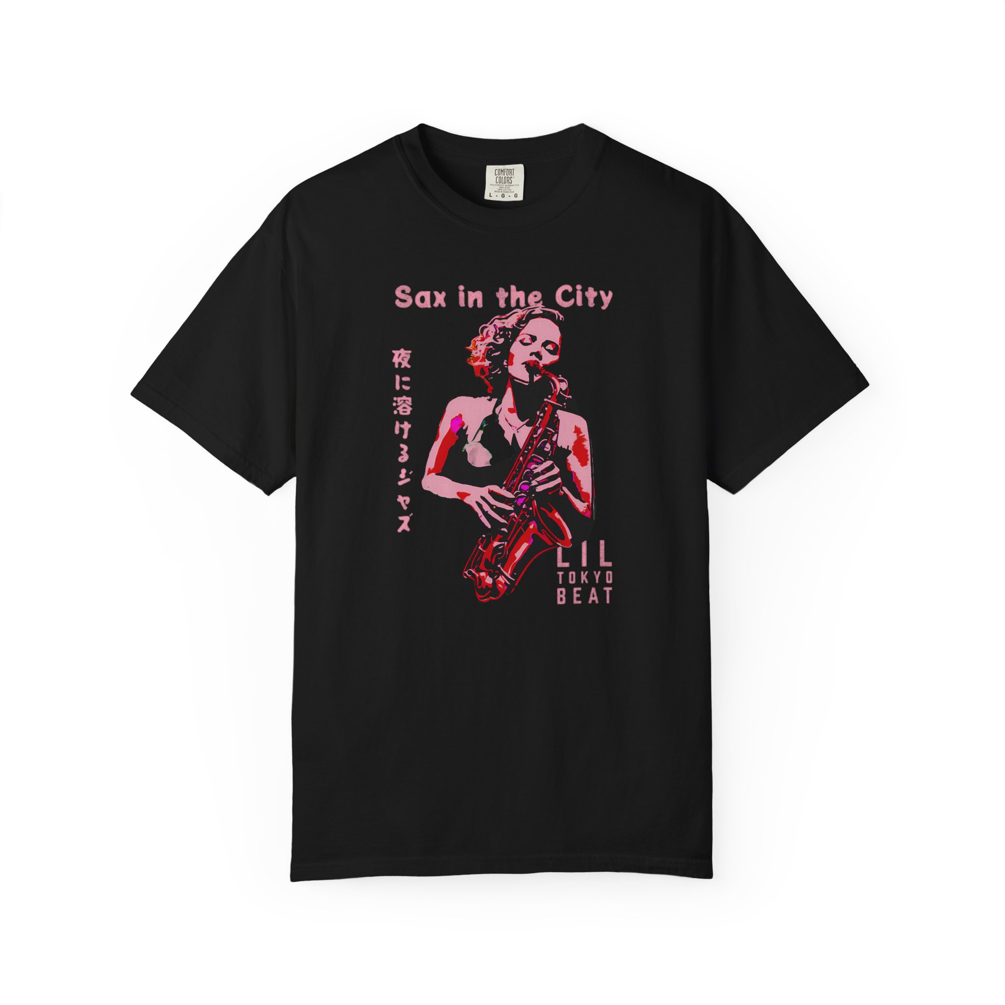 Step into the mood of neon nights and smooth city jazz with this atmospheric music‑inspired graphic T-shirt from Lil Tokyo Beat. The design features a stylized saxophone player rendered in bold pink and red tones, paired with Japanese text that evokes the feeling of jazz drifting through the night. Blending modern illustration, nightlife energy, and Tokyo‑meets‑city‑streets aesthetics, this tee is perfect for musicians, jazz lovers, creatives, and anyone who connects with expressive, soulful visuals. Whether worn for concerts, night outings, studio sessions, or everyday streetwear, this shirt captures rhythm, emotion, and late‑night artistry. Created under the Lil Tokyo Beat philosophy—Kool. Artful. Timeless.—this design continues the brand vision as A New Voice in Tee Culture.