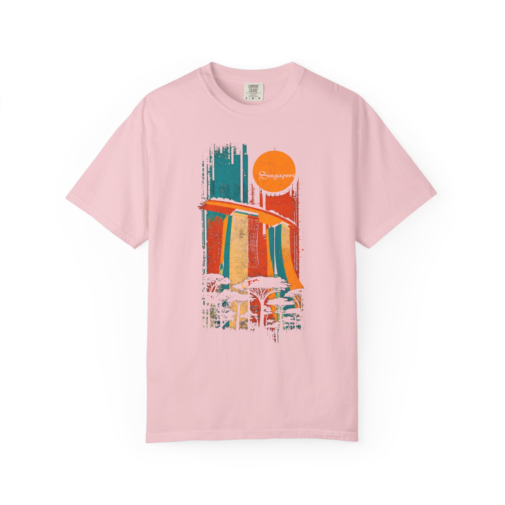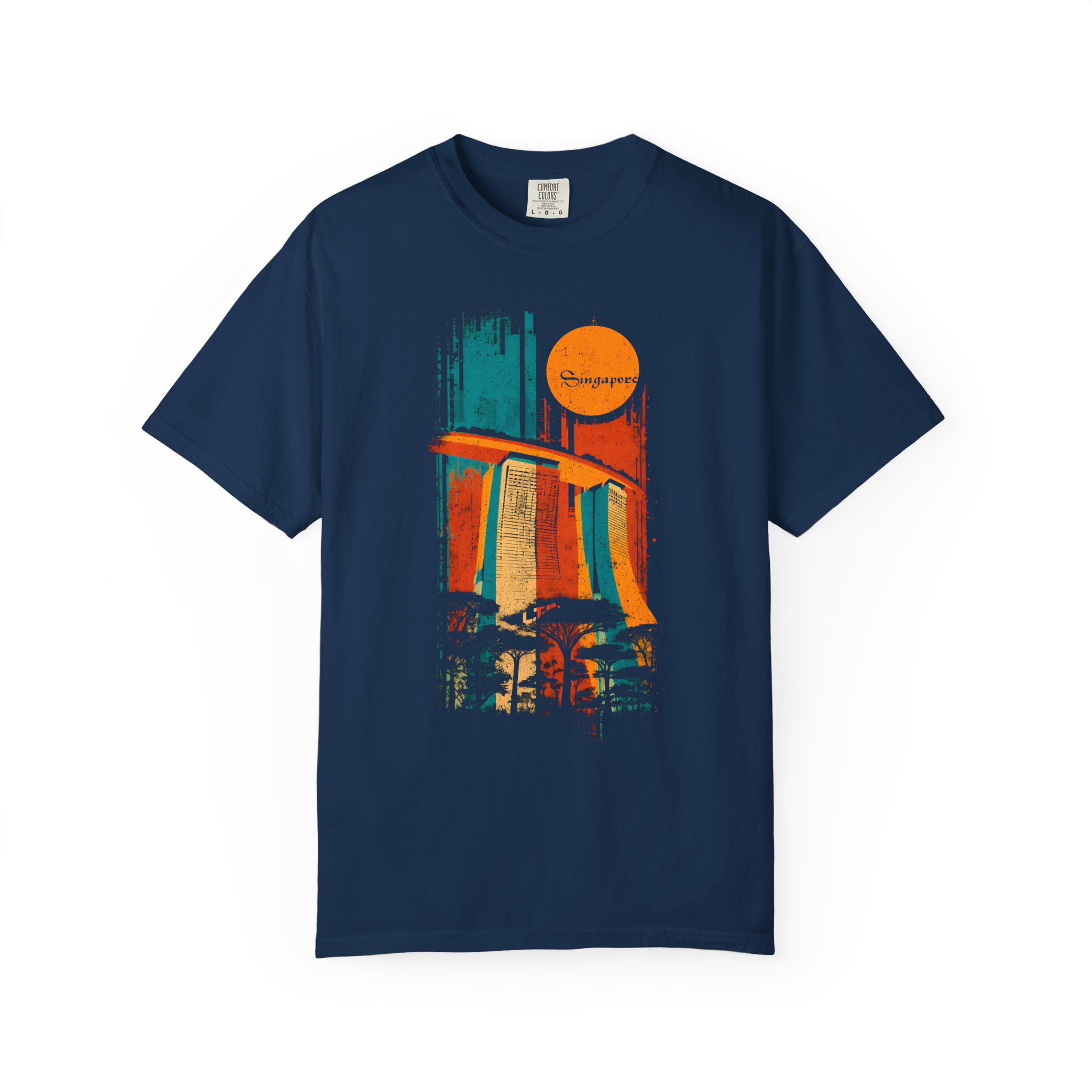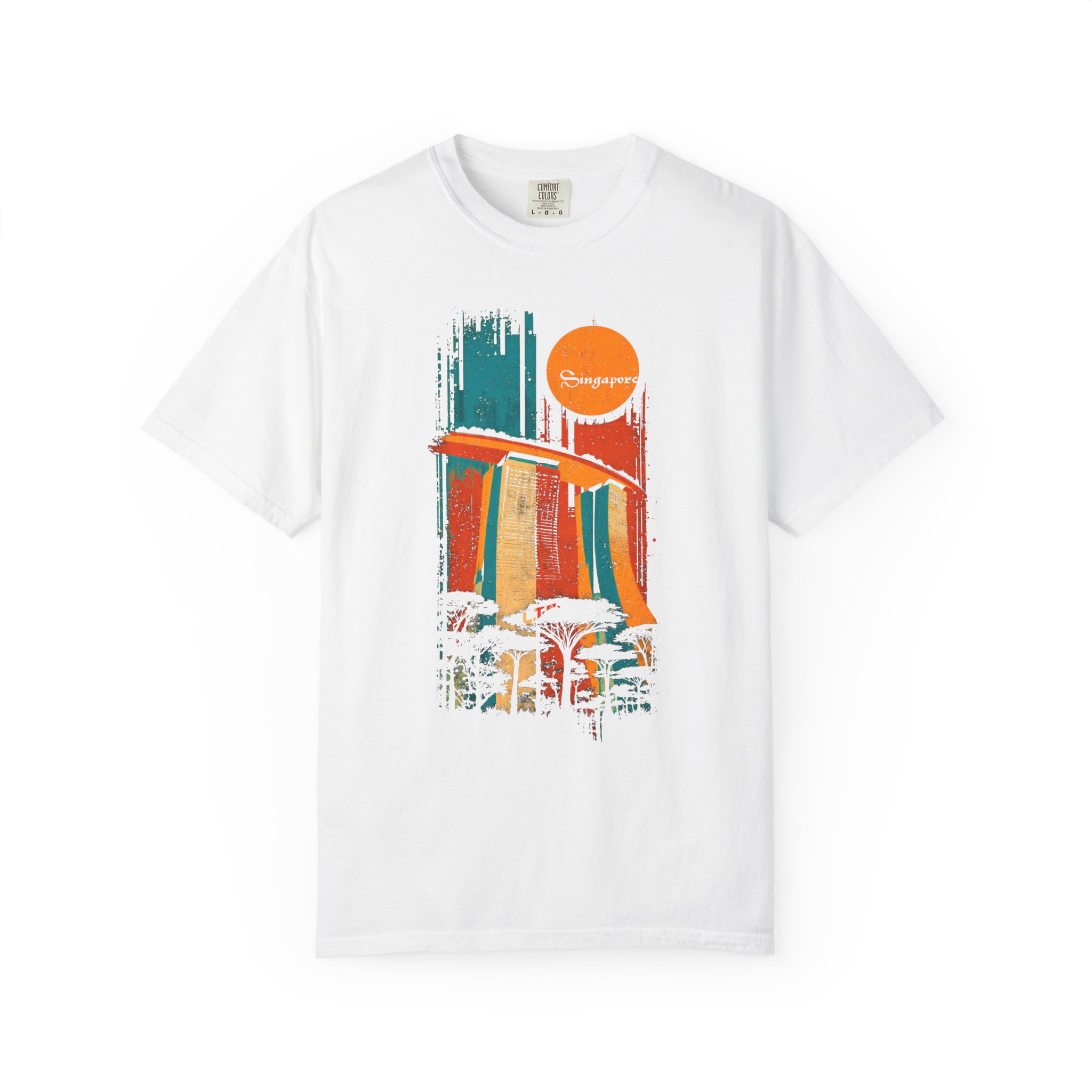 Celebrate iconic architecture and global streetwear culture with this vibrant Singapore‑themed graphic T-shirt from Lil Tokyo Beat. The design features a bold, stylized depiction of Marina Bay Sands rendered in expressive vertical brush strokes of orange, blue, and yellow, paired with a retro sun motif and the word “Singapore” in flowing script. Silhouetted trees below add depth and nod to the city’s lush urban landscape. The distressed, vintage aesthetic gives the artwork a warm, nostalgic feel perfect for travelers, Singapore fans, architecture lovers, and anyone who appreciates culturally inspired streetwear. Whether worn for travel days, creative sessions, weekend hangs, or everyday style, this tee embodies the Lil Tokyo Beat philosophy—Kool. Artful. Timeless.—and continues the brand’s mission as A New Voice in Tee Culture.