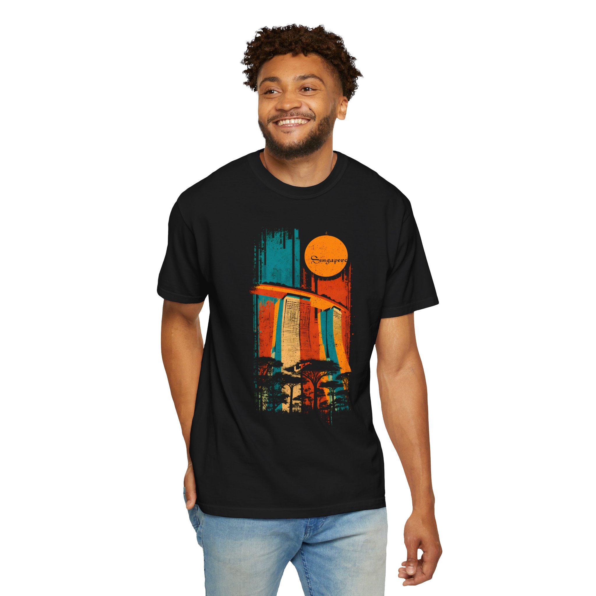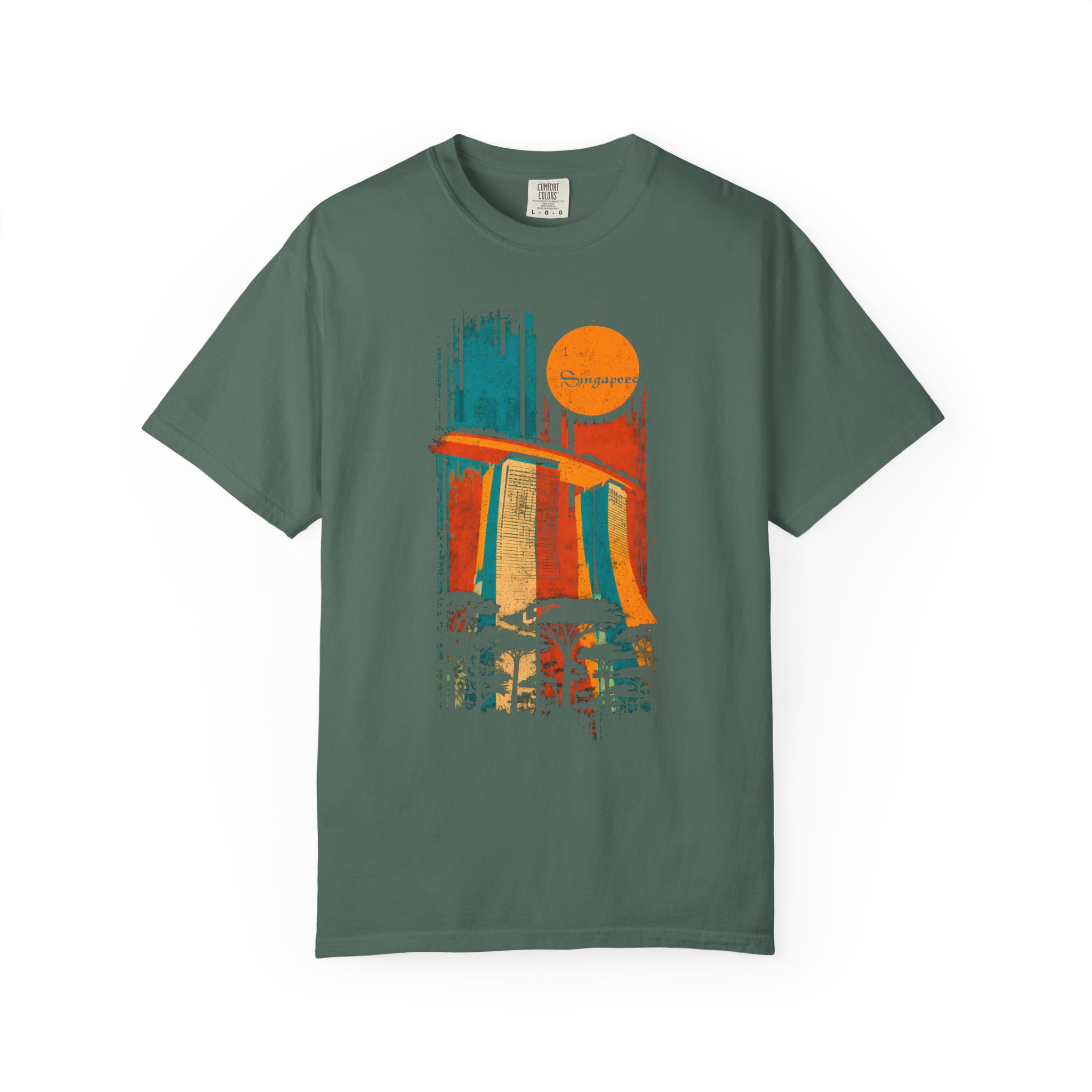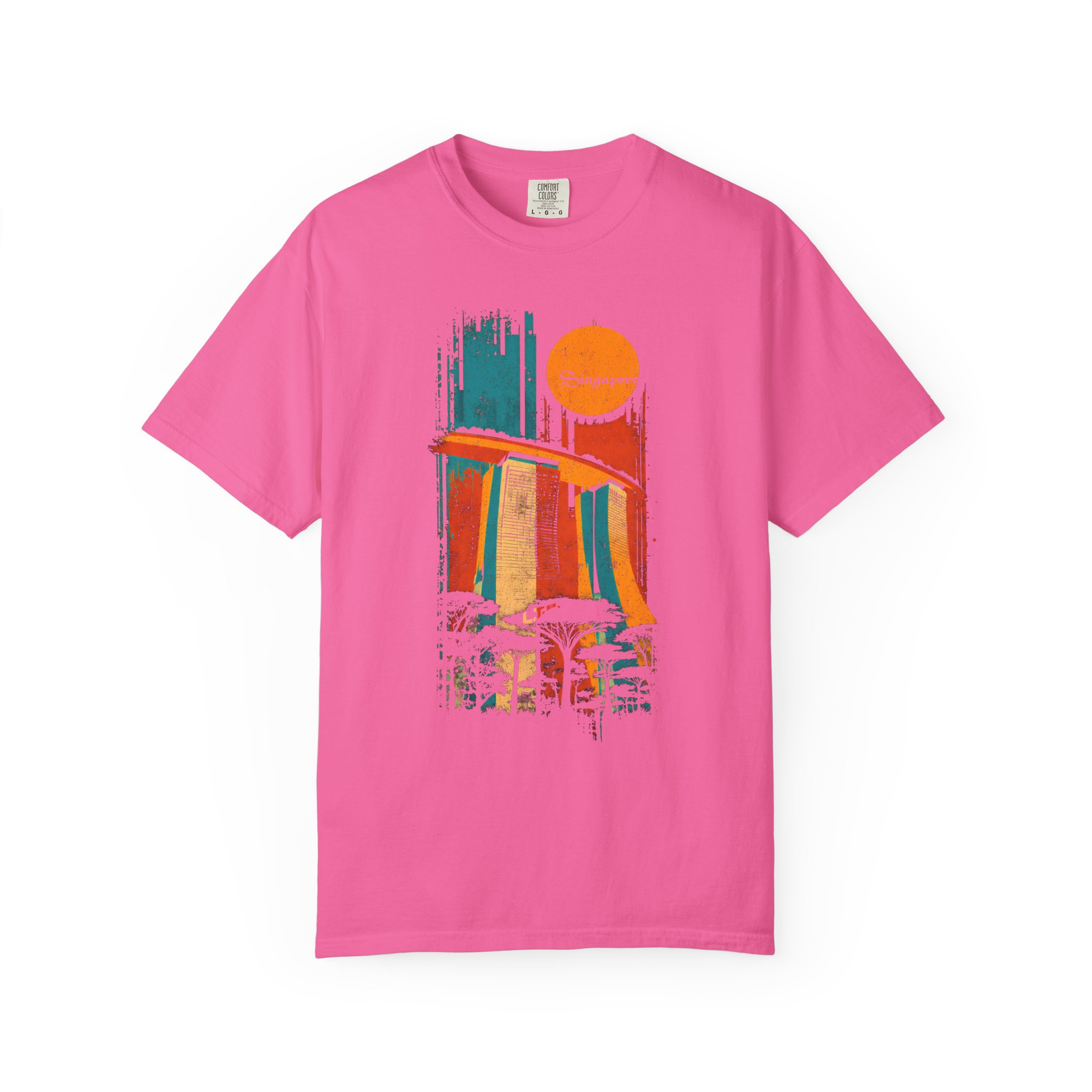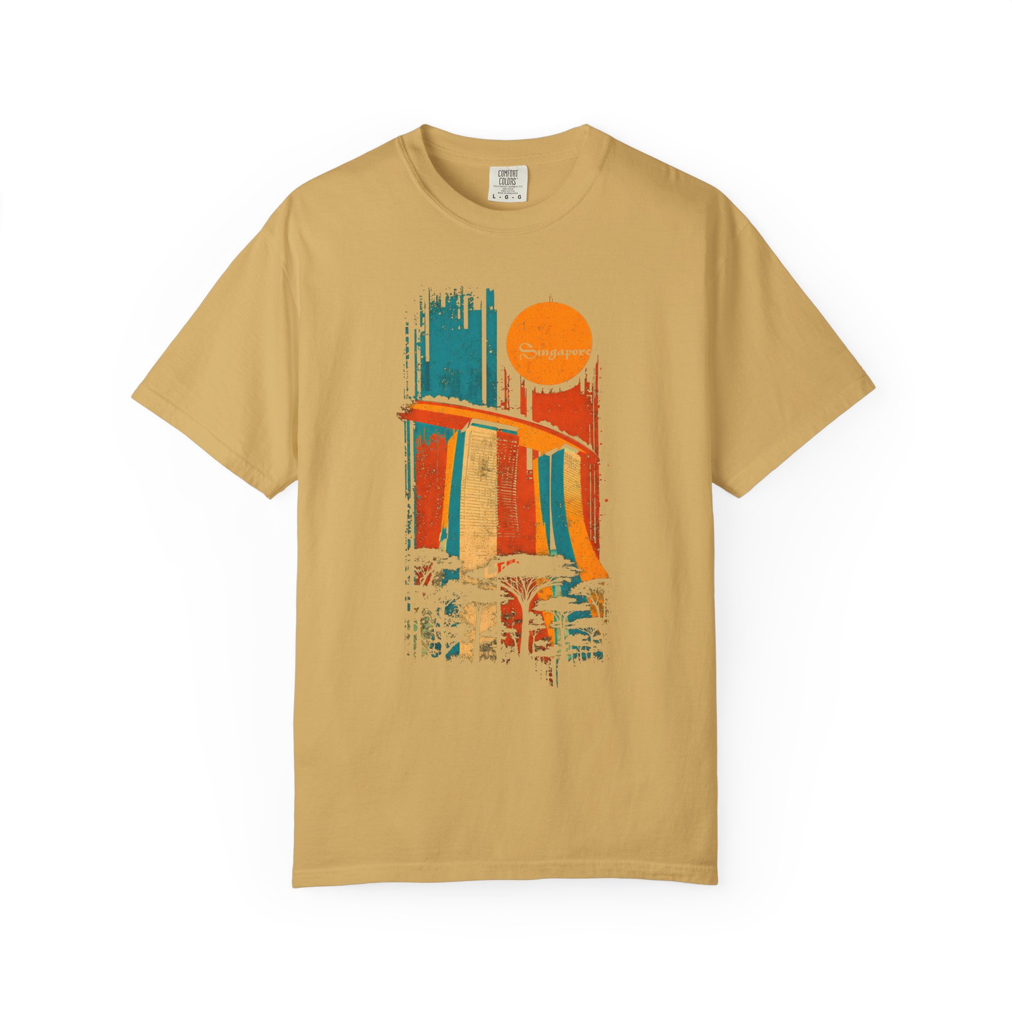 Celebrate iconic architecture and global streetwear culture with this vibrant Singapore‑themed graphic T-shirt from Lil Tokyo Beat. The design features a bold, stylized depiction of Marina Bay Sands rendered in expressive vertical brush strokes of orange, blue, and yellow, paired with a retro sun motif and the word “Singapore” in flowing script. Silhouetted trees below add depth and nod to the city’s lush urban landscape. The distressed, vintage aesthetic gives the artwork a warm, nostalgic feel perfect for travelers, Singapore fans, architecture lovers, and anyone who appreciates culturally inspired streetwear. Whether worn for travel days, creative sessions, weekend hangs, or everyday style, this tee embodies the Lil Tokyo Beat philosophy—Kool. Artful. Timeless.—and continues the brand’s mission as A New Voice in Tee Culture.