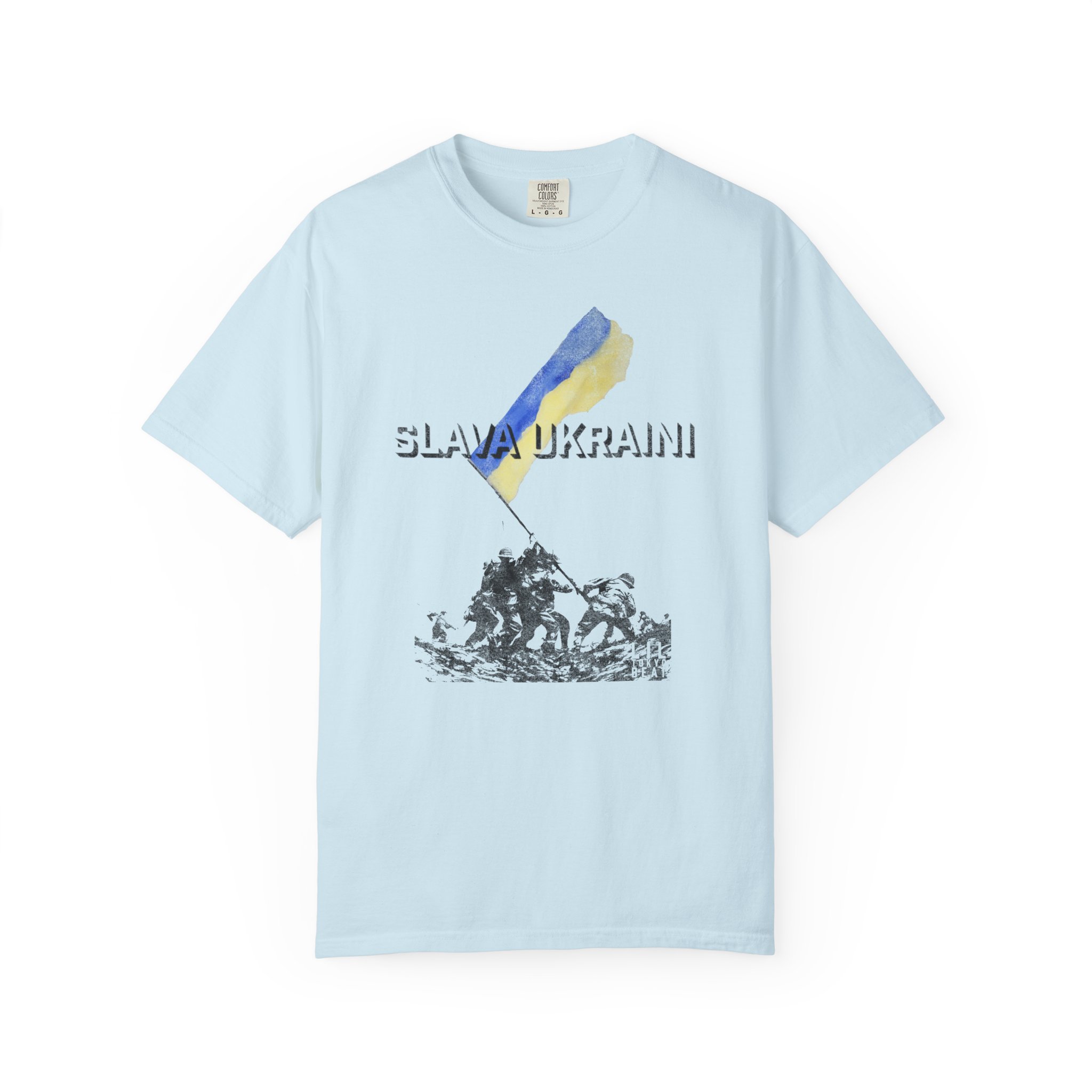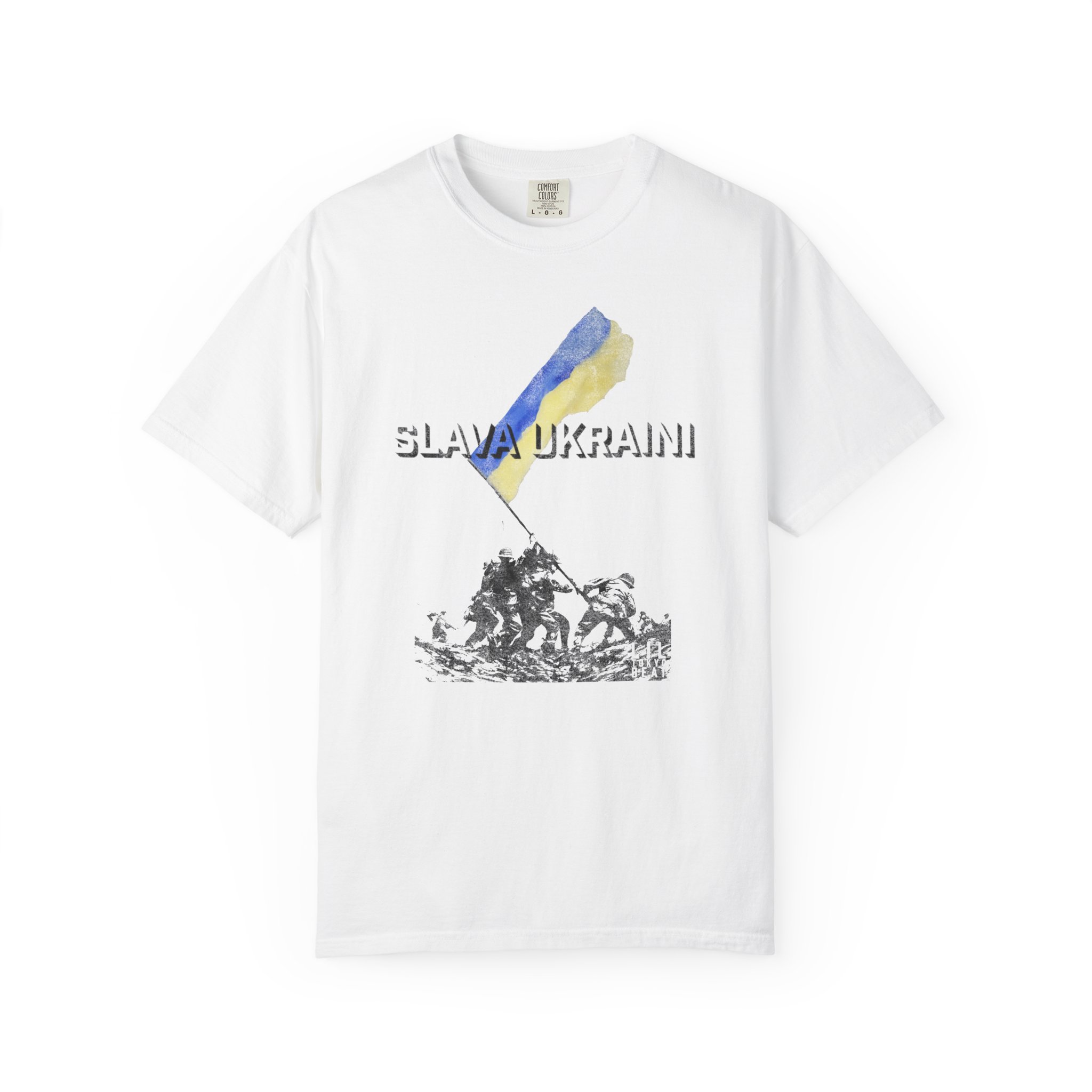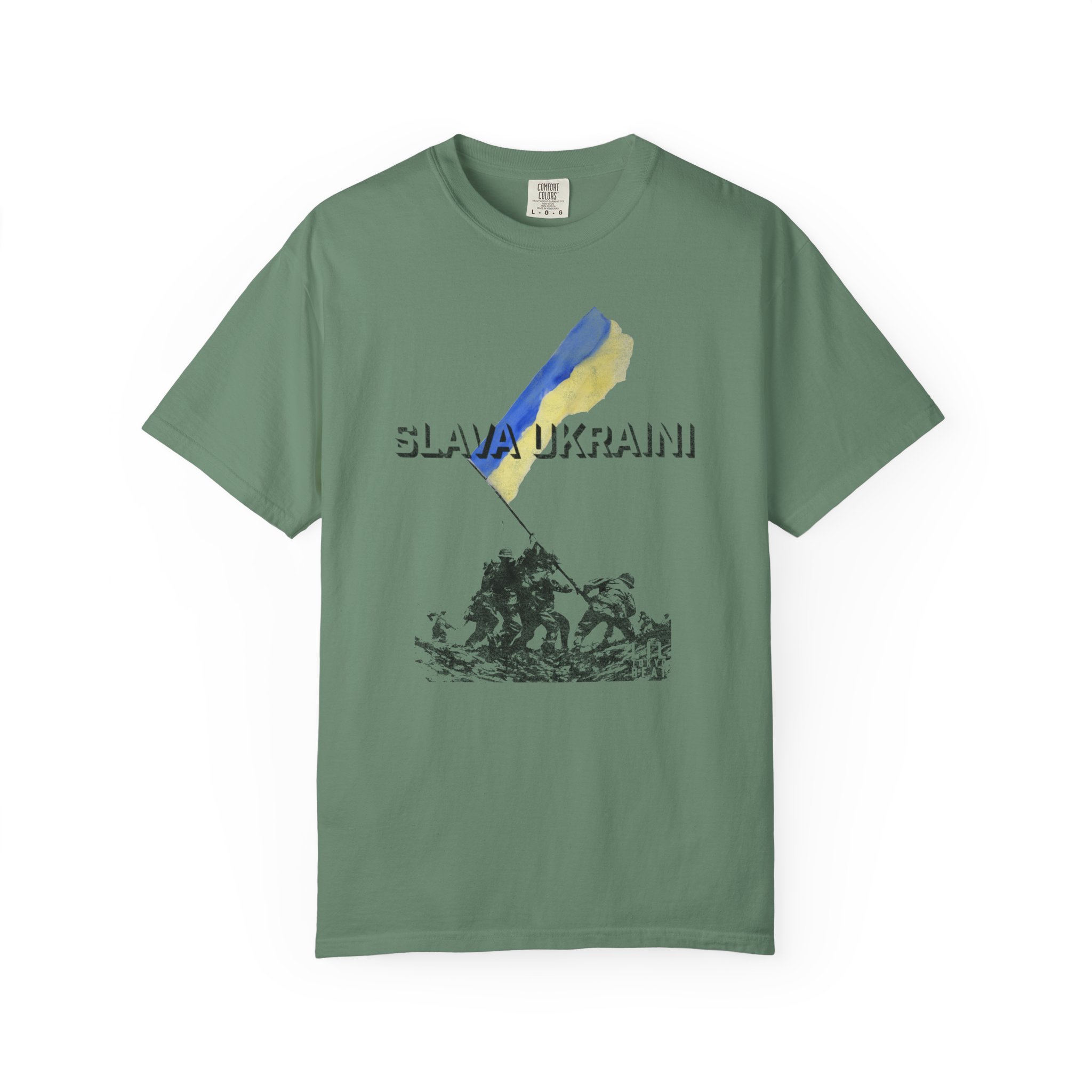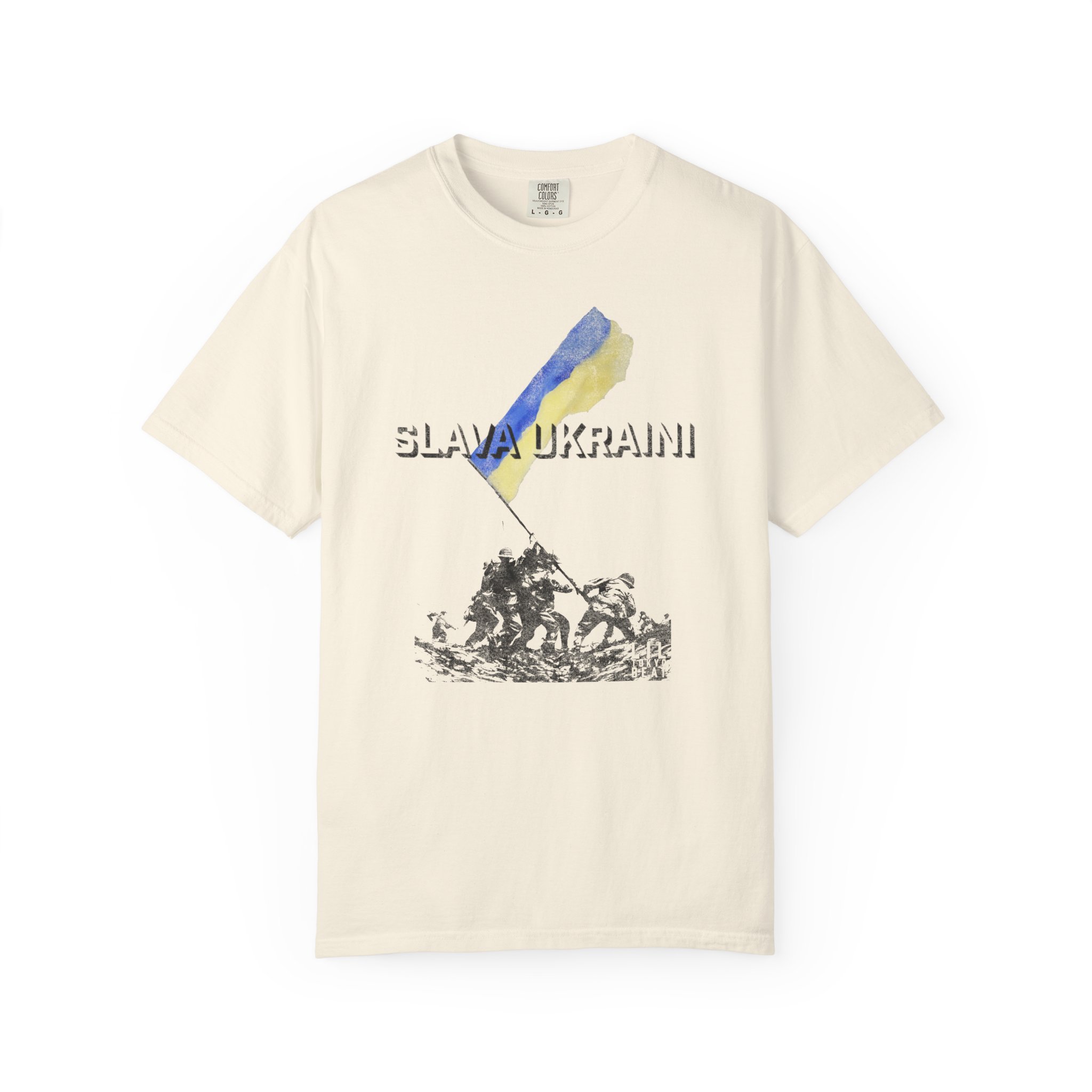 This design connects these two powerful historical echoes: one from the past, when Americans fought to stop tyranny, and one from today, where Ukrainians stand fiercely against invasion and oppression. It is a reminder that the fight for freedom is ongoing, and that Ukraine now inspires the hope and determination once associated with the United States. Slava Ukraini. Heroyam Slava.