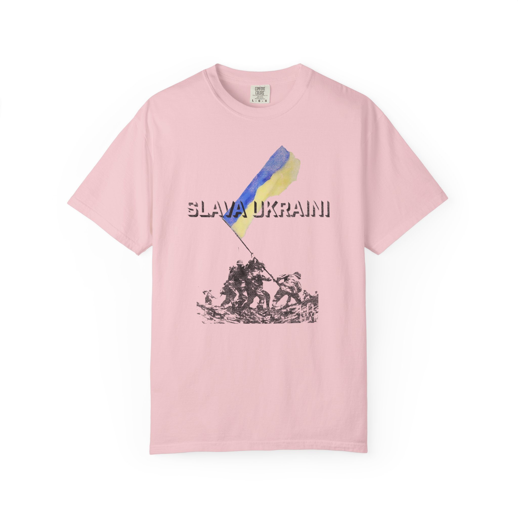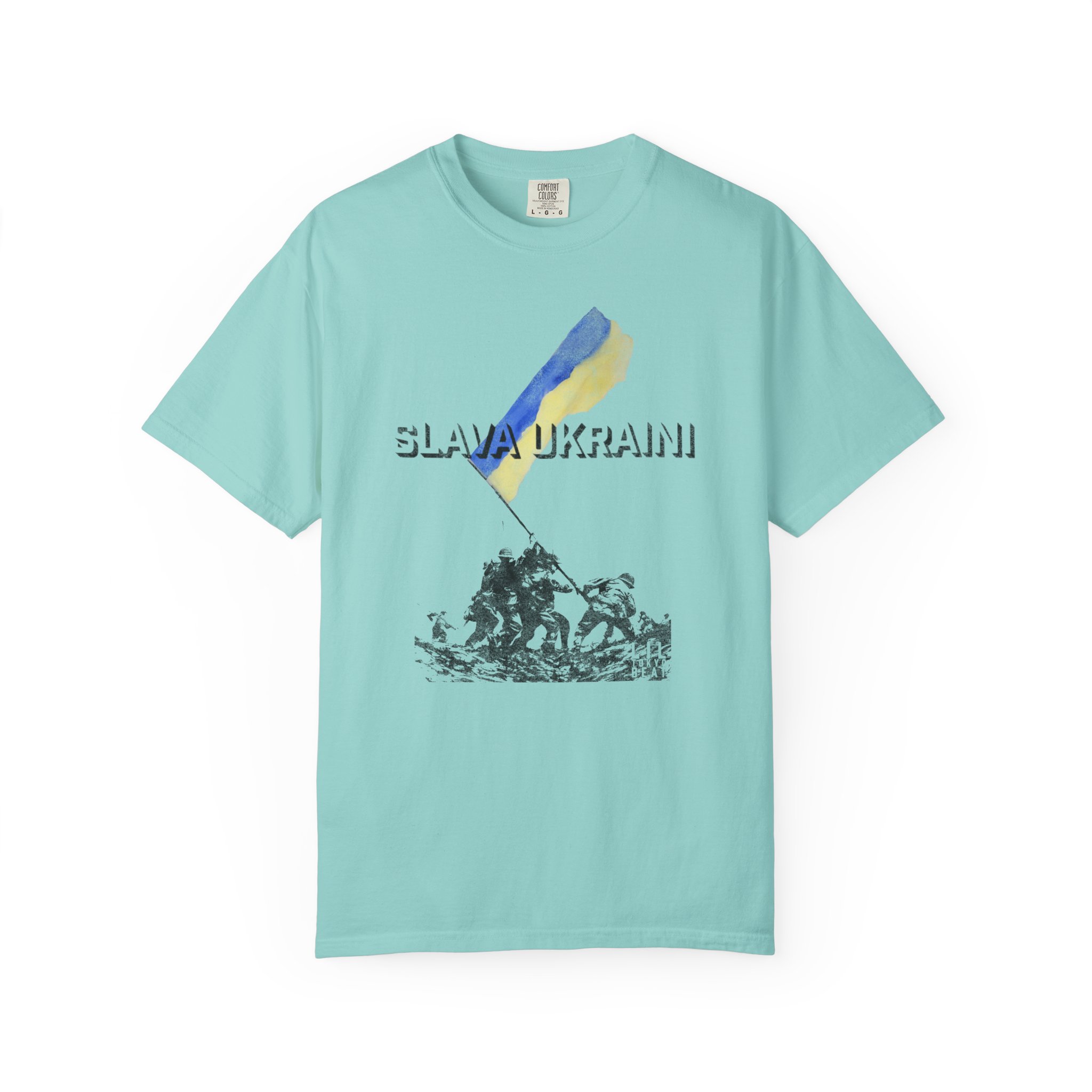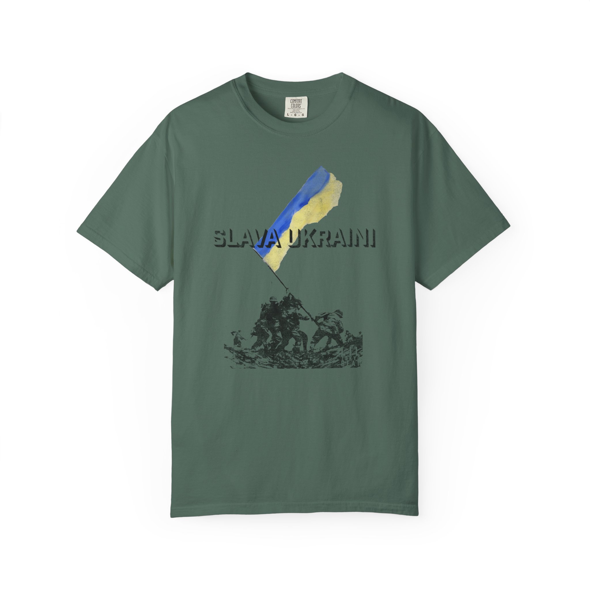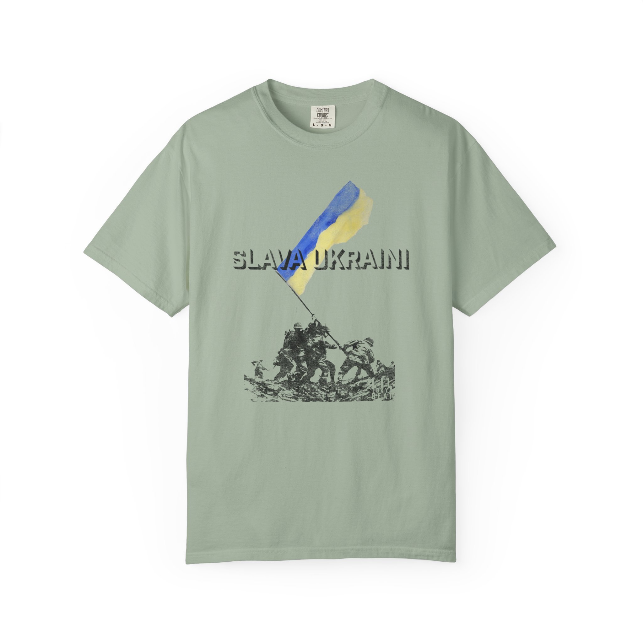 This design connects these two powerful historical echoes: one from the past, when Americans fought to stop tyranny, and one from today, where Ukrainians stand fiercely against invasion and oppression. It is a reminder that the fight for freedom is ongoing, and that Ukraine now inspires the hope and determination once associated with the United States. Slava Ukraini. Heroyam Slava.