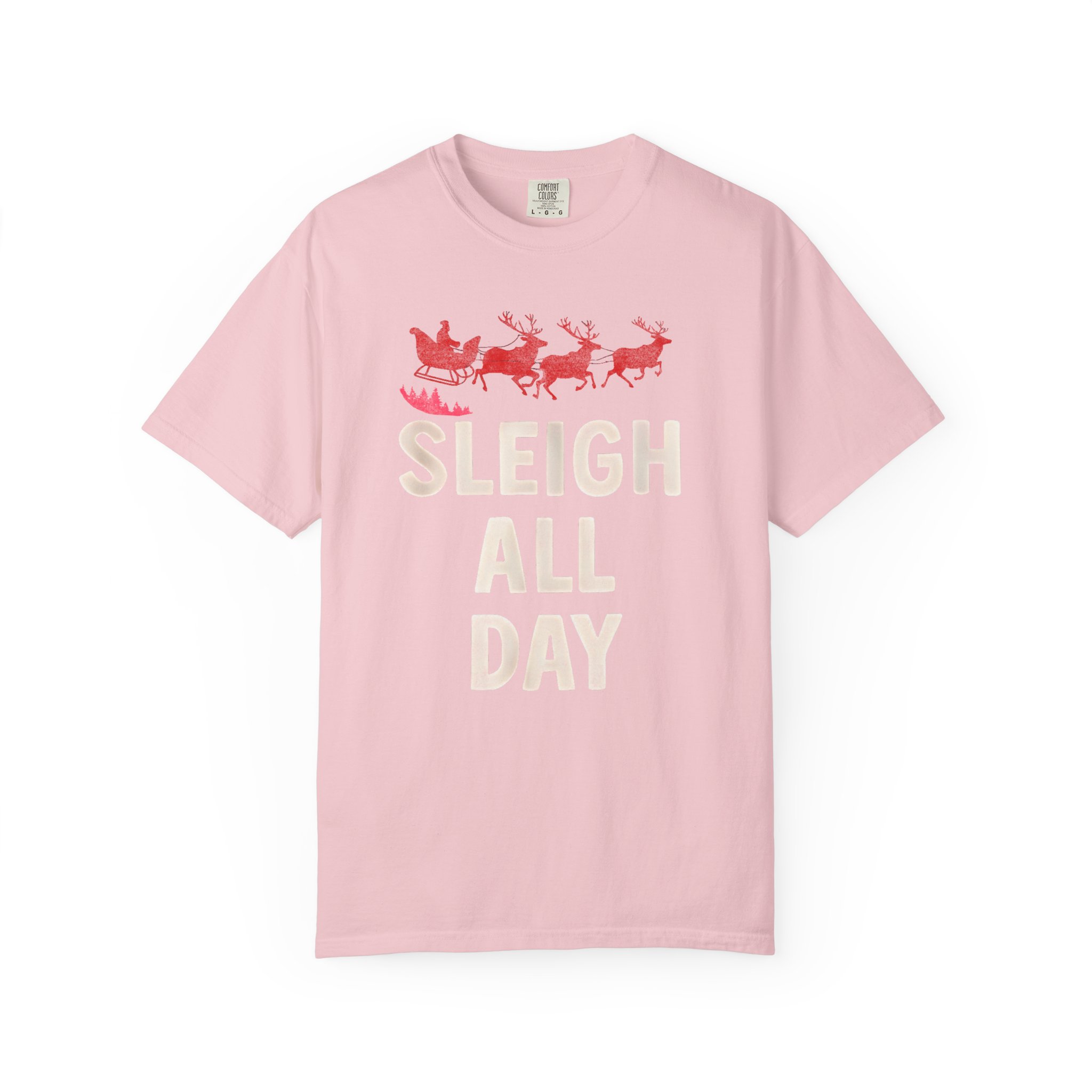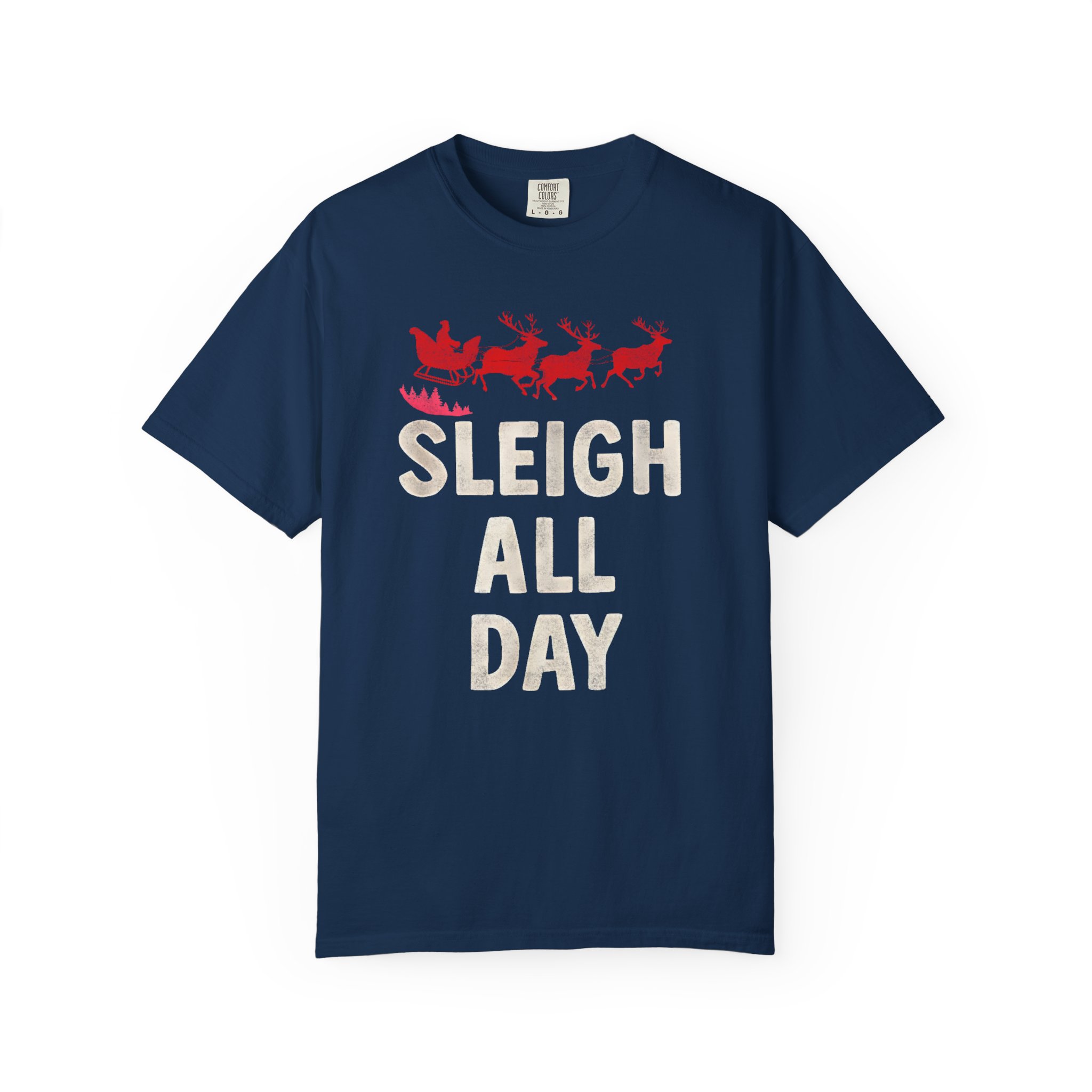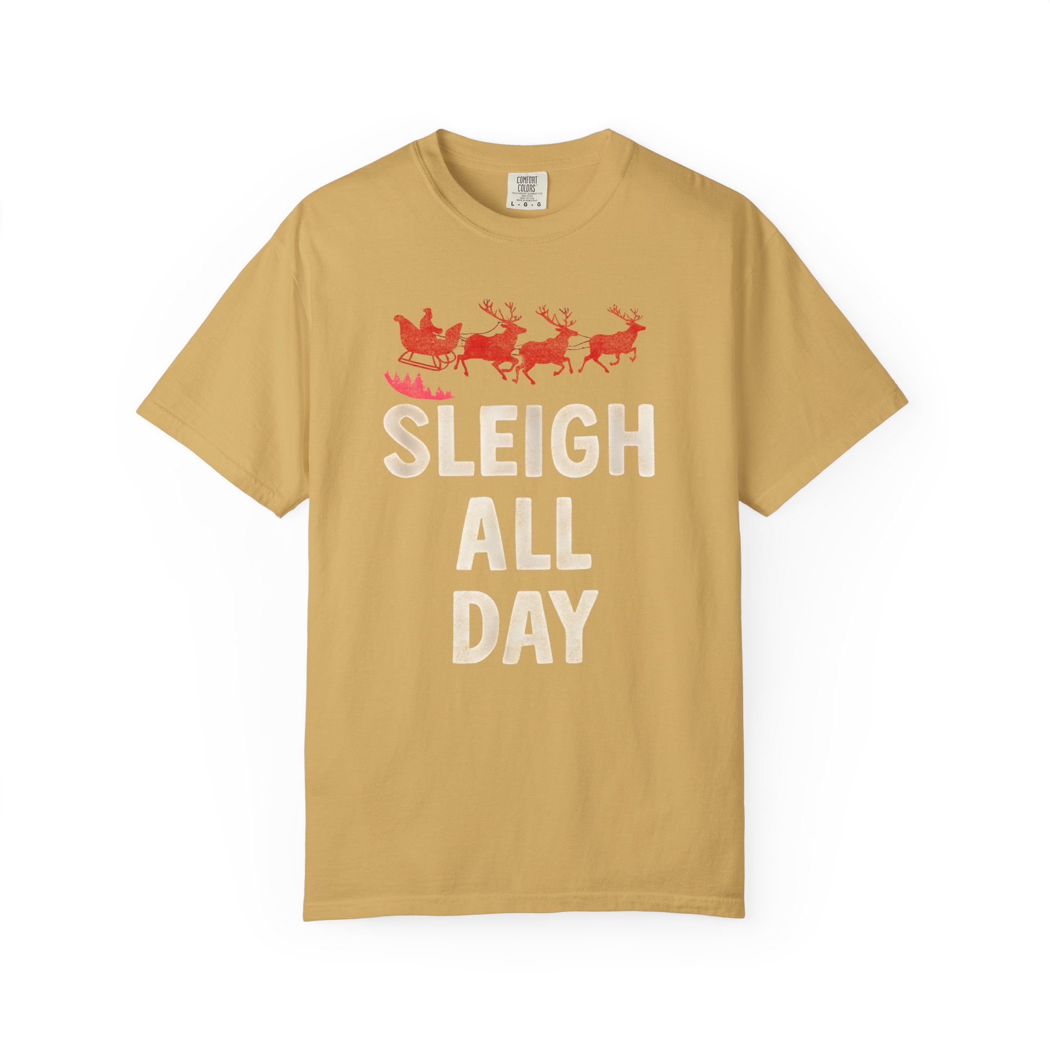 This heavyweight, garment-dyed tee brings cozy, vintage holiday energy to everyday wear. A soft, sun-warmed color and tactile, lived-in feel make the shirt comfortable from the first wear. The front art — a playful sleigh and reindeer silhouette with bold, cheerful lettering — reads like a wink to holiday hustle and slow, snowy evenings alike. The relaxed cut and pre-shrunk 100% ring-spun cotton let you layer it over long sleeves or wear it solo at gatherings, caroling runs, or while wrapping gifts by lamplight. Durable double-needle seams and a tubular, seam-free body mean the tee keeps its shape and comfort season after season.