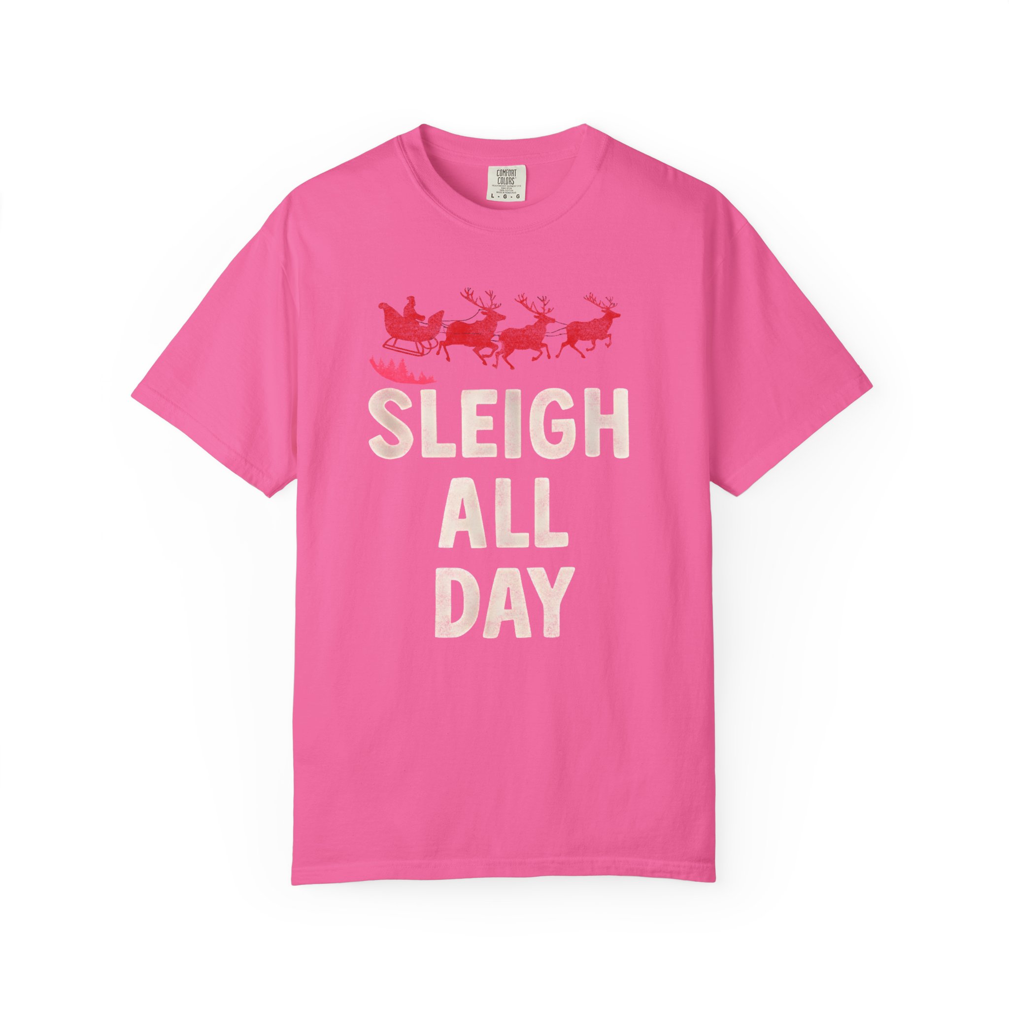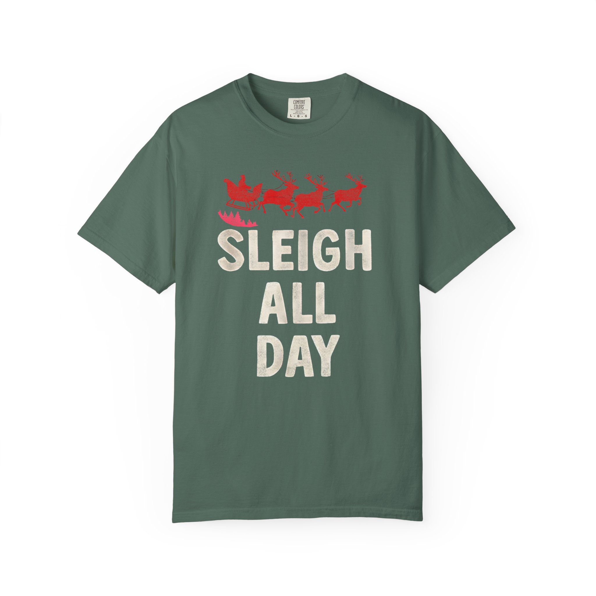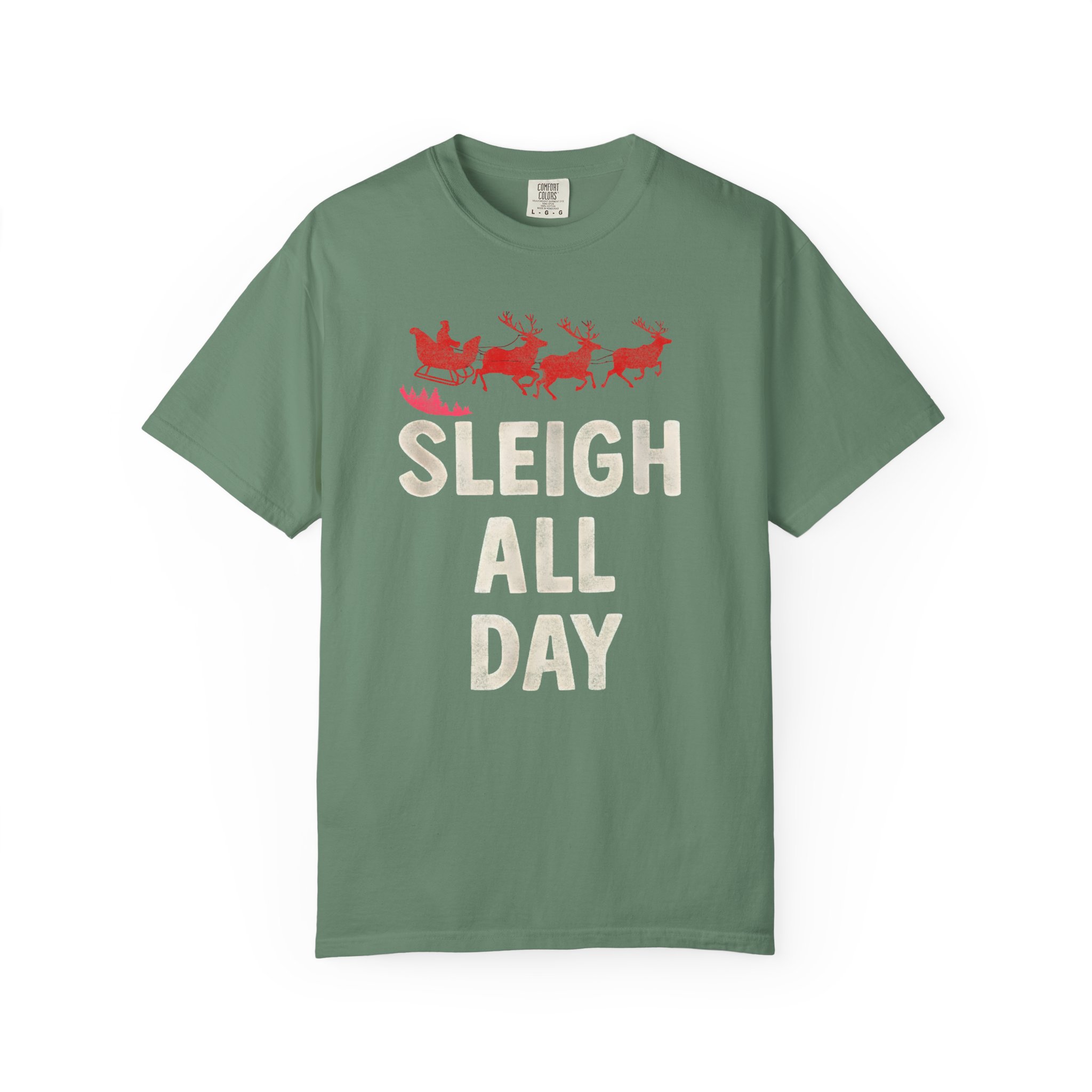 This heavyweight, garment-dyed tee brings cozy, vintage holiday energy to everyday wear. A soft, sun-warmed color and tactile, lived-in feel make the shirt comfortable from the first wear. The front art — a playful sleigh and reindeer silhouette with bold, cheerful lettering — reads like a wink to holiday hustle and slow, snowy evenings alike. The relaxed cut and pre-shrunk 100% ring-spun cotton let you layer it over long sleeves or wear it solo at gatherings, caroling runs, or while wrapping gifts by lamplight. Durable double-needle seams and a tubular, seam-free body mean the tee keeps its shape and comfort season after season.