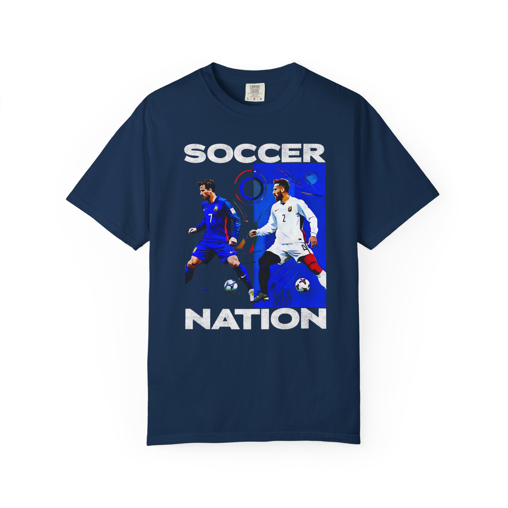Be the first to review “Soccer Nation Graphic T-Shirt — Retro Player Split-Image Tee, Edition 4”
