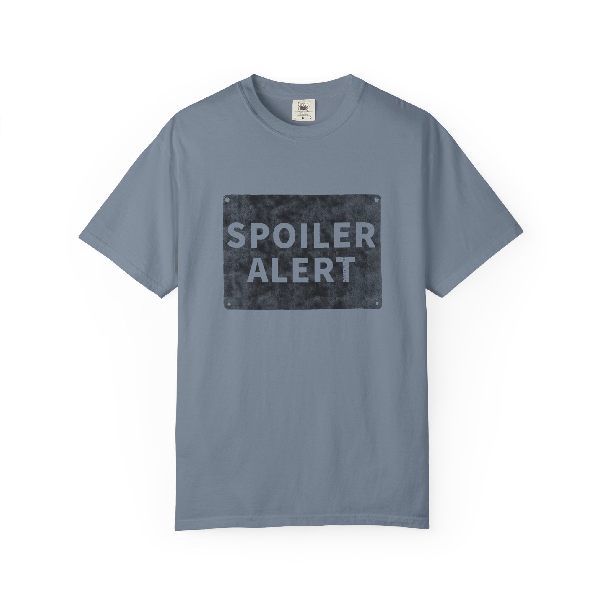 This garment-dyed tee speaks quietly but confidently. The muted, vintage-wash color and boxed “SPOILER ALERT” print give it a lived-in, low-key vibe — the kind of shirt you reach for when you want to make a subtle, tongue-in-cheek statement. Soft, midweight cotton and a relaxed fit let it move with you through lazy afternoons, book-club debates, weekend walks, and late-night streaming sessions. It layers easily under a flannel or wears solo with worn jeans. The sewn-in label and double-needle stitching mean it will age gracefully with repeated wear and washes, keeping its shape and soft hand. For people who love storylines, inside jokes, and comfortable clothes that show a little personality, this tee becomes part of the regular rotation.