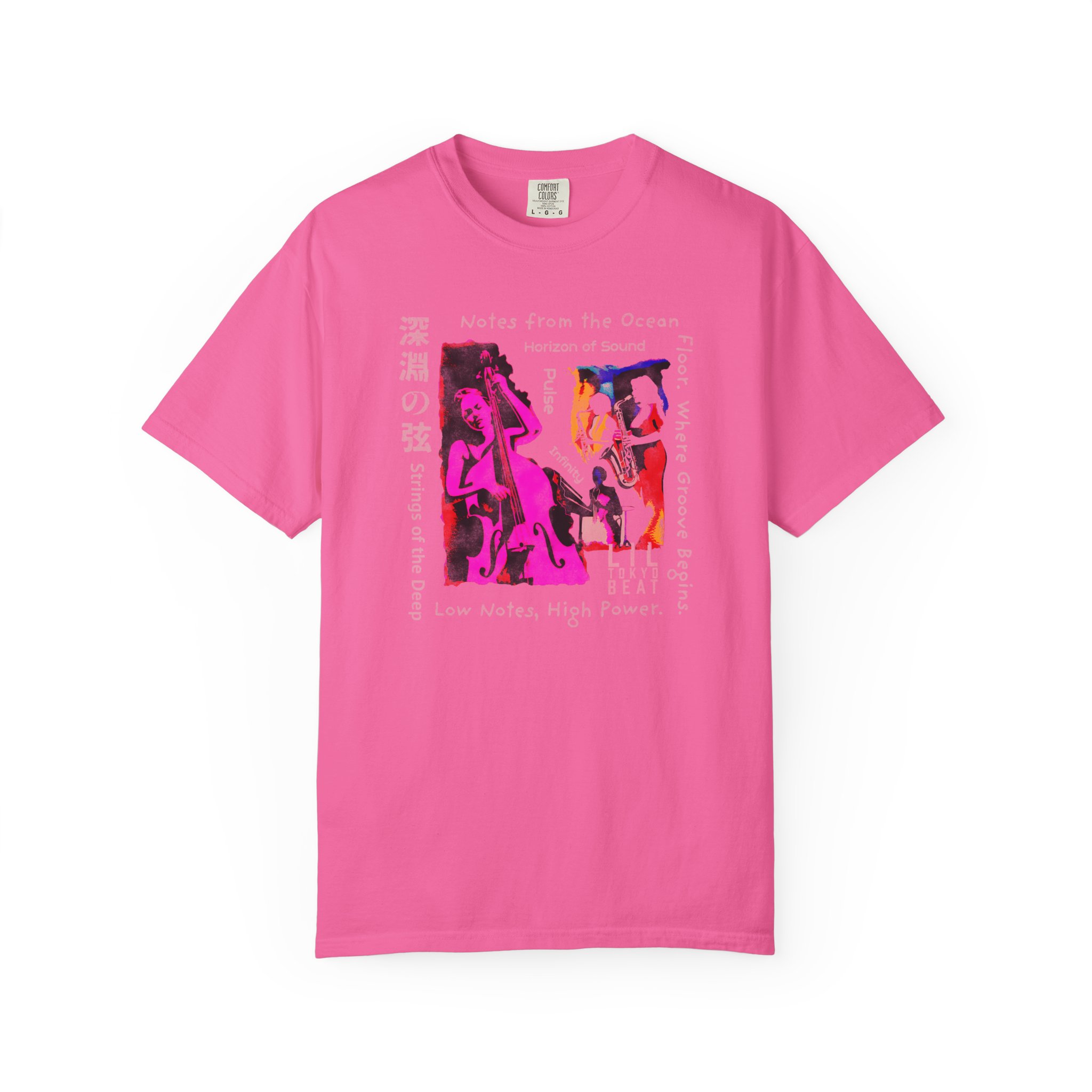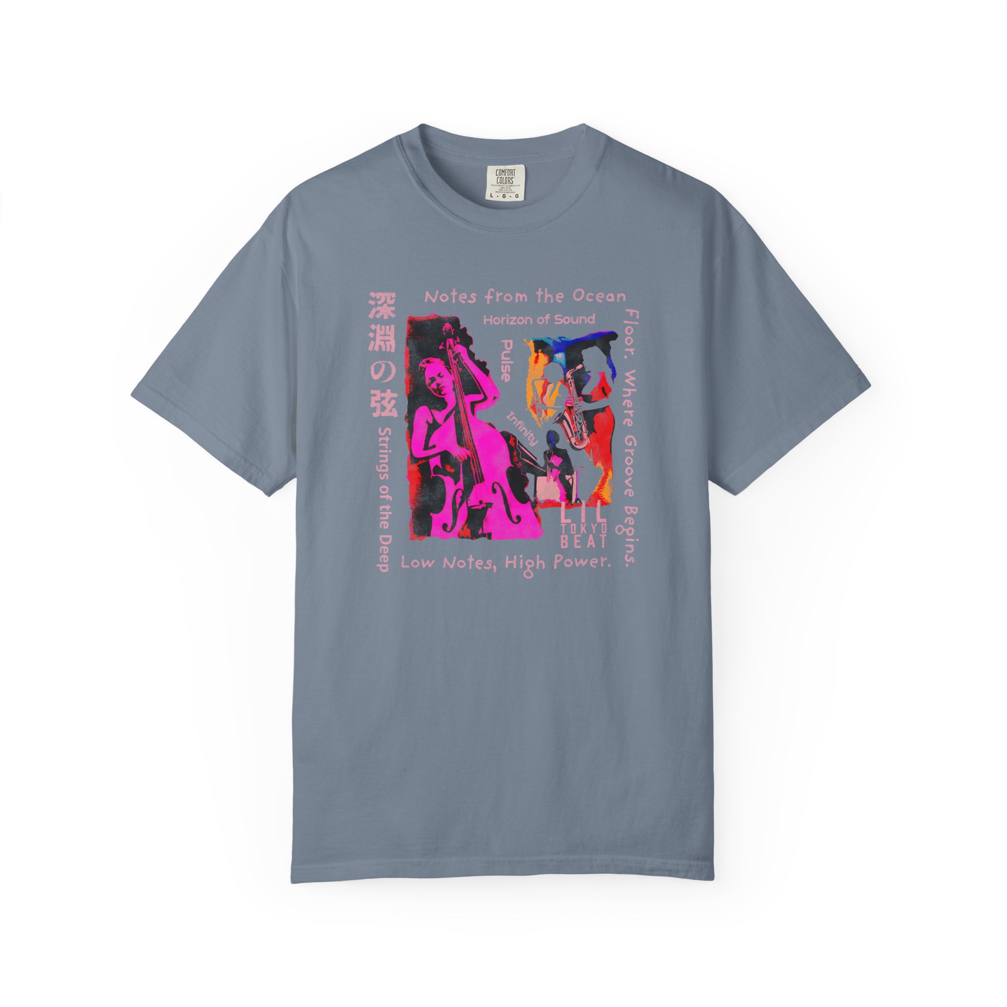 Elegant Double Bass Jazz T-Shirt for music lovers, Strings of the Deep. This garment-dyed unisex T-shirt offers a relaxed fit and classic crew neckline, perfect for casual or semi-formal settings. Ideal for adults, this tee is made with high-quality US cotton for long-lasting comfort. Product features – Available in multiple sizes from S to 4XL – Double-needle stitching for durability – Garment-dyed fabric for a soft texture – Made with 100% ring-spun US cotton – Available in 58 colors Care instructions – Machine wash: cold (max 30C or 90F) – Do not bleach – Tumble dry: low heat – Iron, steam or dry: low heat – Do not dryclean