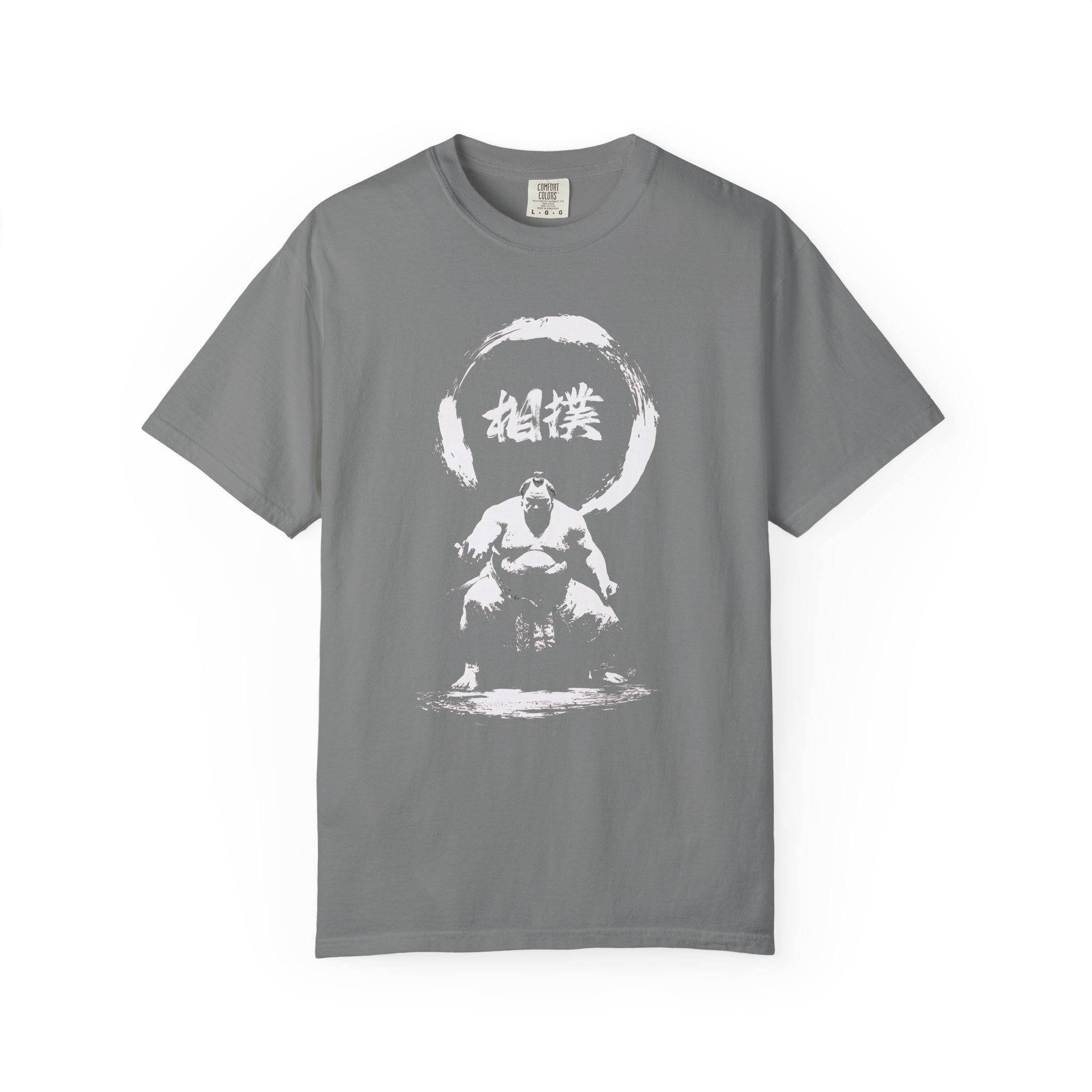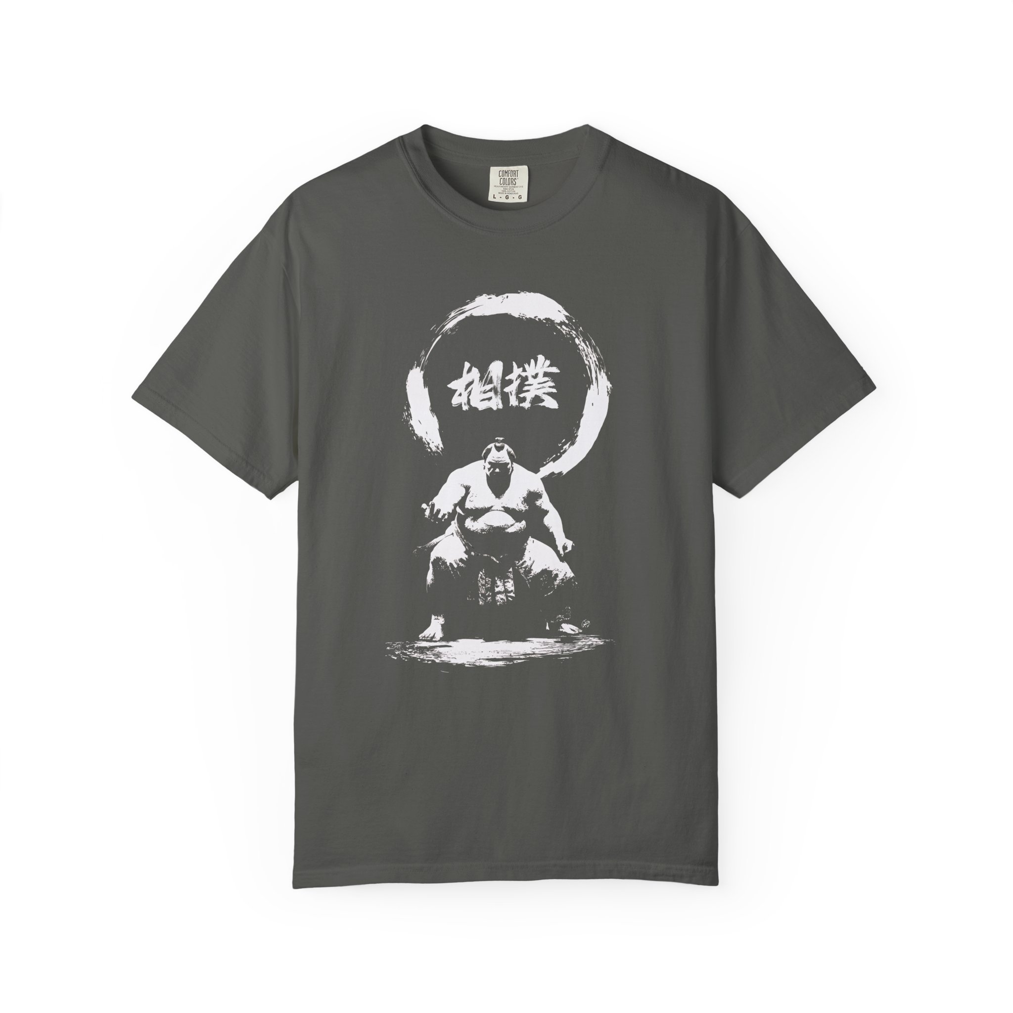 A bold Japanese sumo wrestler design beneath a zen circle, blending traditional culture with modern streetwear style.