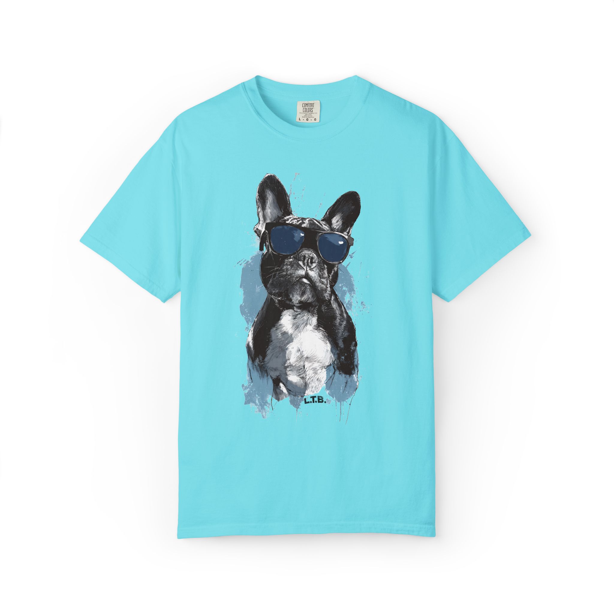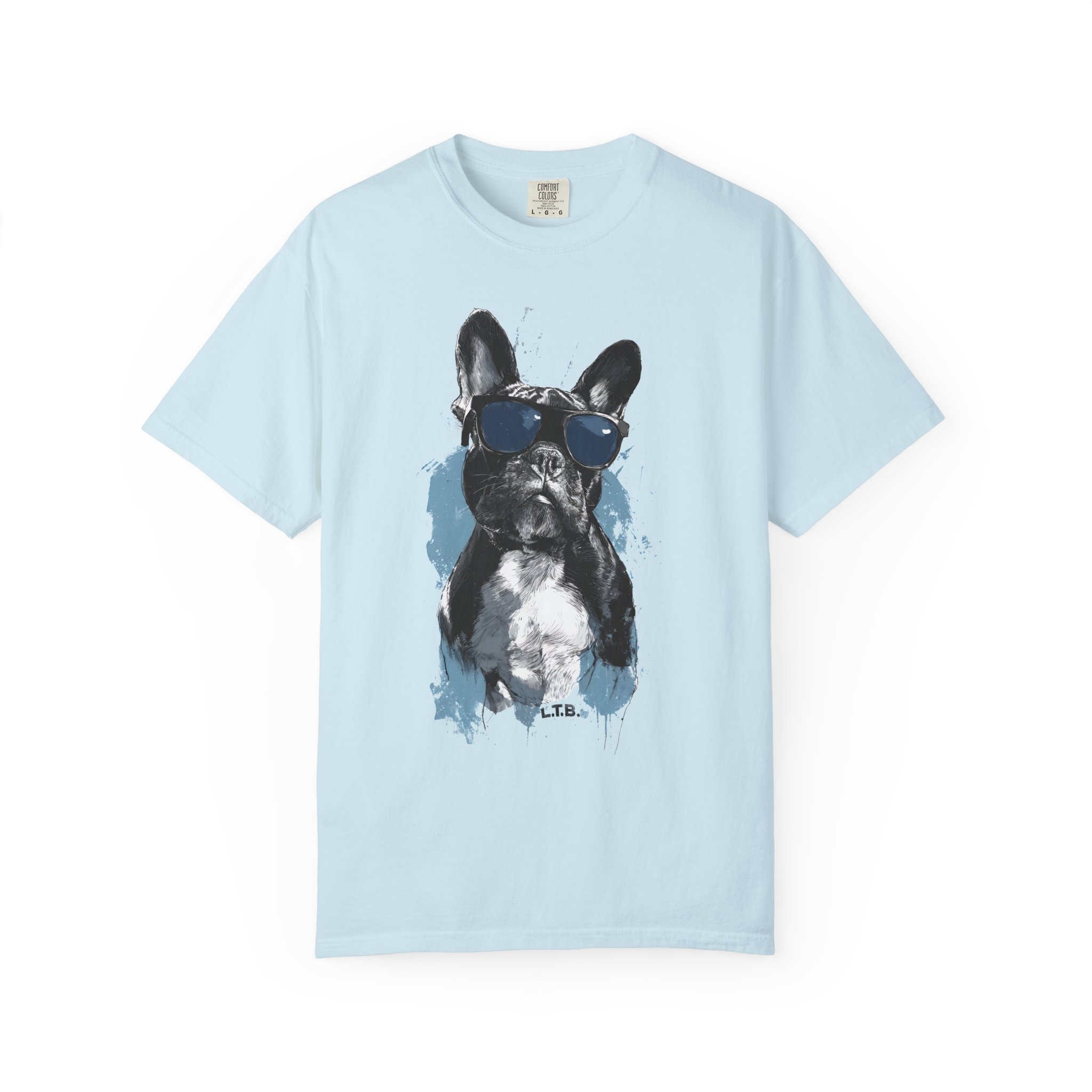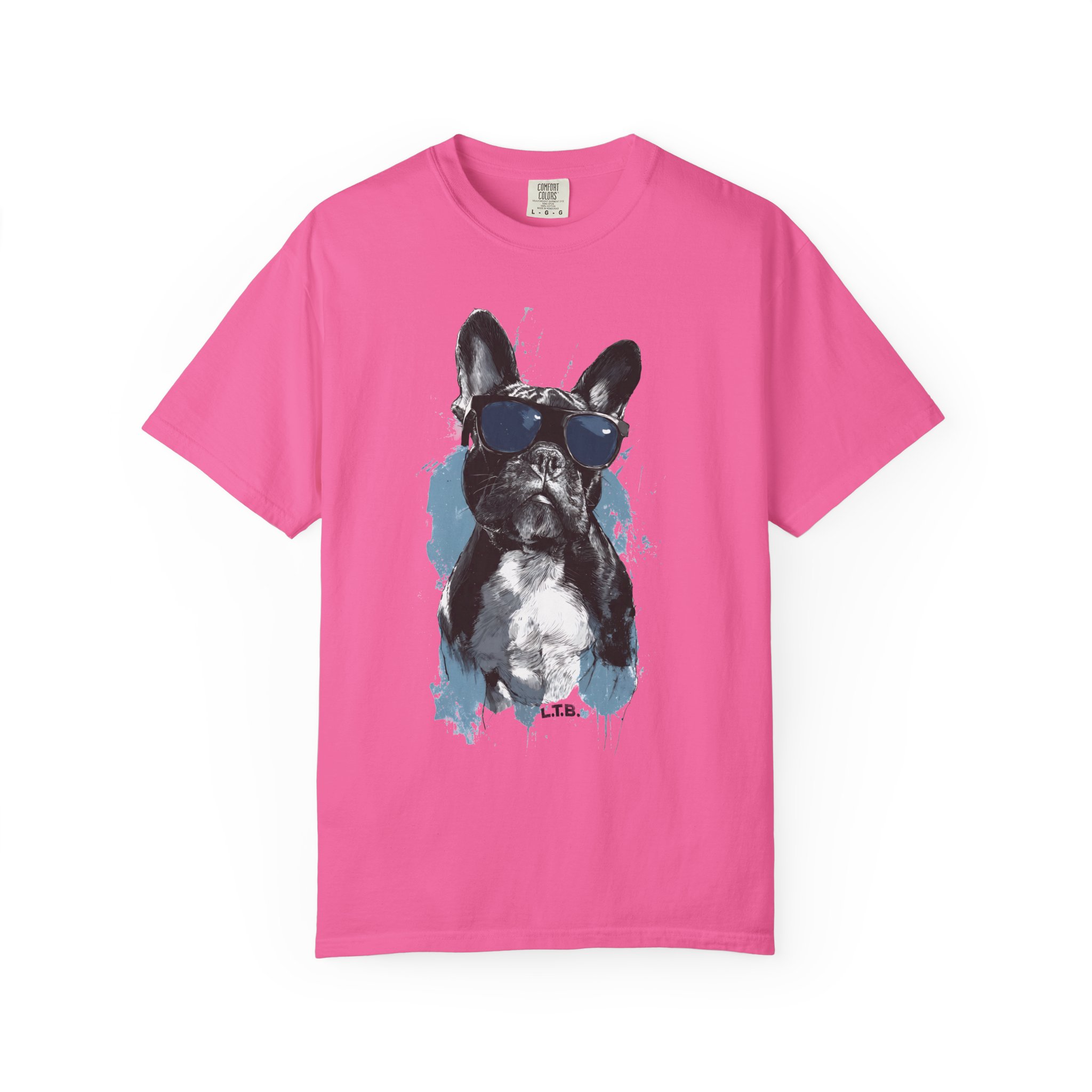 This heavyweight garment-dyed tee brings an effortless, lived-in vibe to everyday wear. A bold, painterly French bulldog print sits center chest—sunglasses, brushstrokes, and all—giving the shirt a playful, artful attitude. The relaxed fit and soft, post-dye texture invite you to reach for this tee when you want comfort without losing personality. Wear it on walks, casual meetups, or quiet mornings with coffee; it layers neatly under jackets and stands on its own when you want to show a little canine charm.
