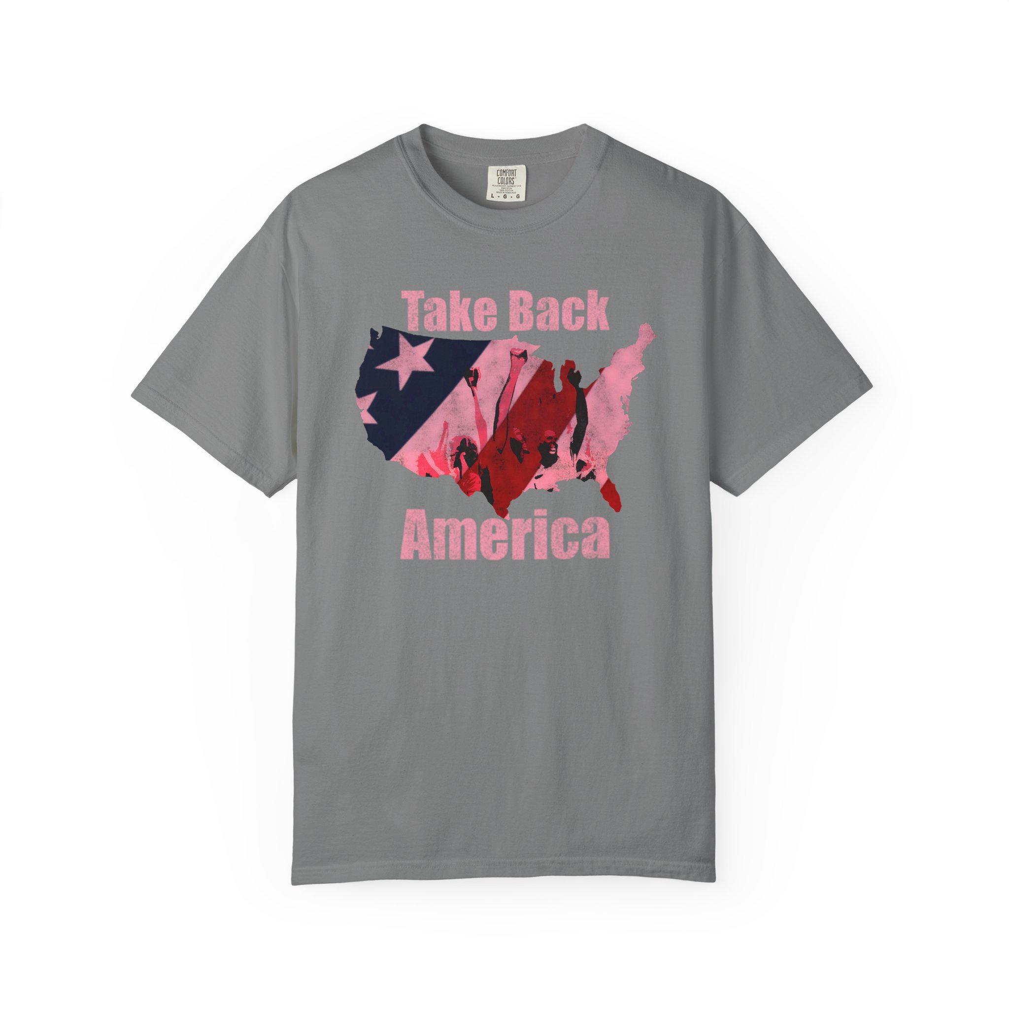 This “Take Back America” T-shirt blends bold patriotism with everyday style. Designed with softer pink lettering and a subtle American flag graphic, it delivers the same powerful message in a more fashion-conscious, wearable way. Perfect for those who want to show their pride without being over-the-top, this tee works for casual outings, daily errands, or simply expressing your beliefs in comfort and style. Available in multiple colors, it’s a versatile piece for anyone who values freedom, unity, and individuality. Make a statement that’s strong yet refined—because patriotism is also everyday fashion. Product features – Available in multiple sizes from S to 4XL – Double-needle stitching for durability – Garment-dyed fabric for soft texture – Made of 100% cotton for comfort – Available in 58 colors Care instructions – Machine wash: cold (max 30C or 90F) – Do not bleach – Tumble dry: low heat – Iron, steam or dry: low heat – Do not dryclean