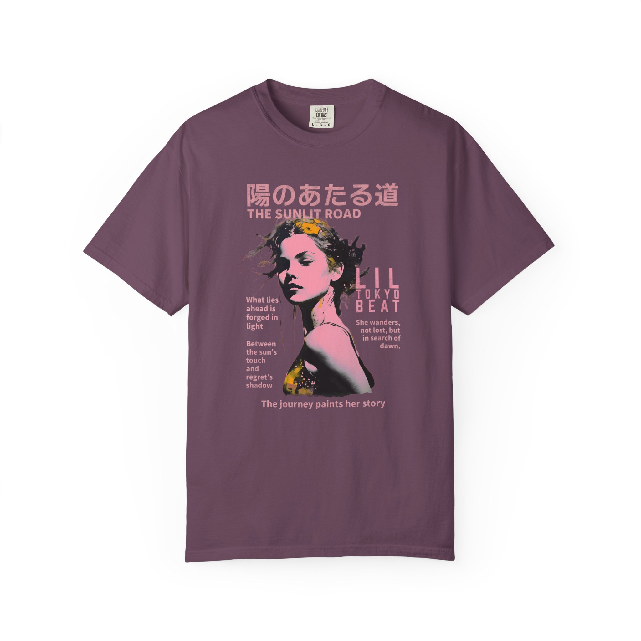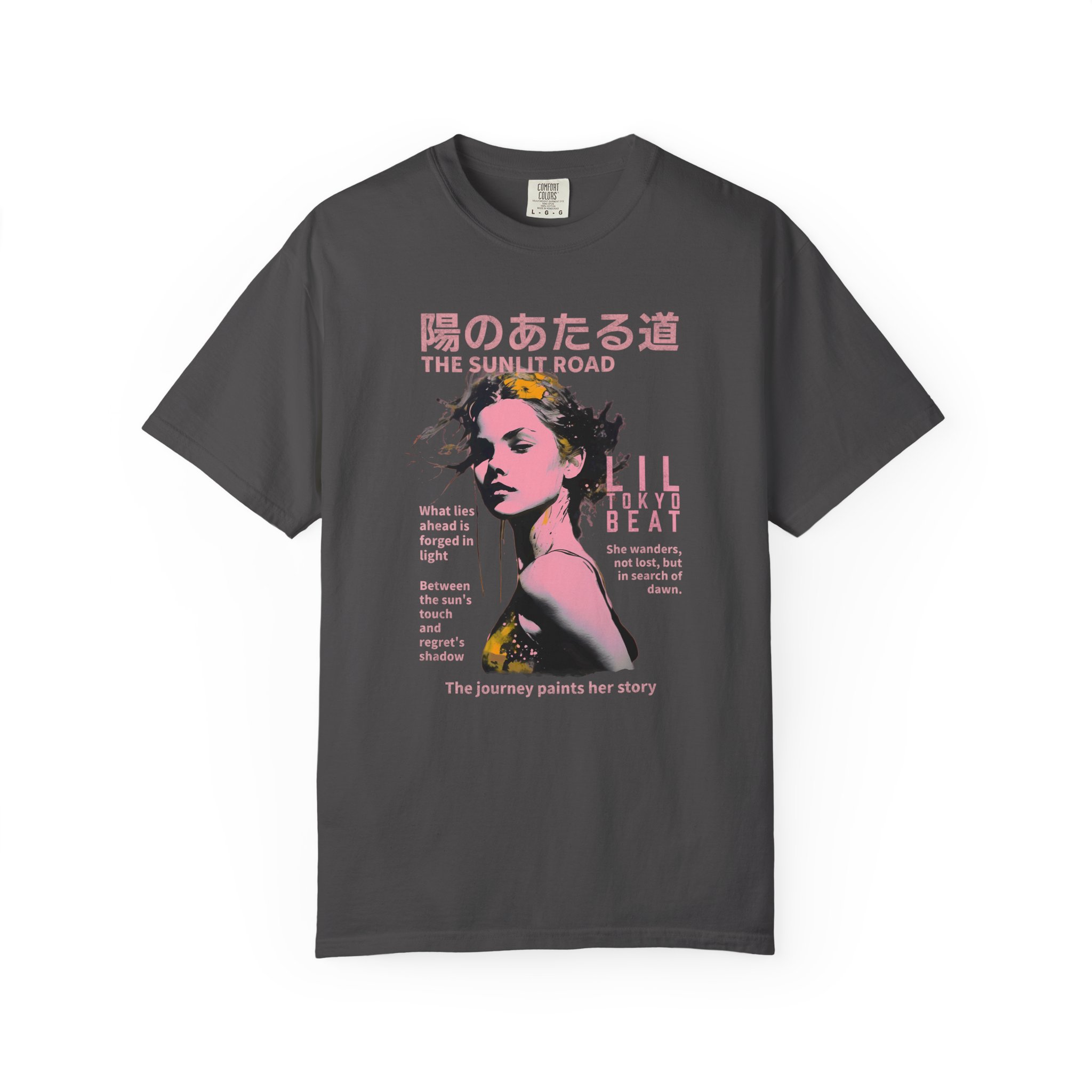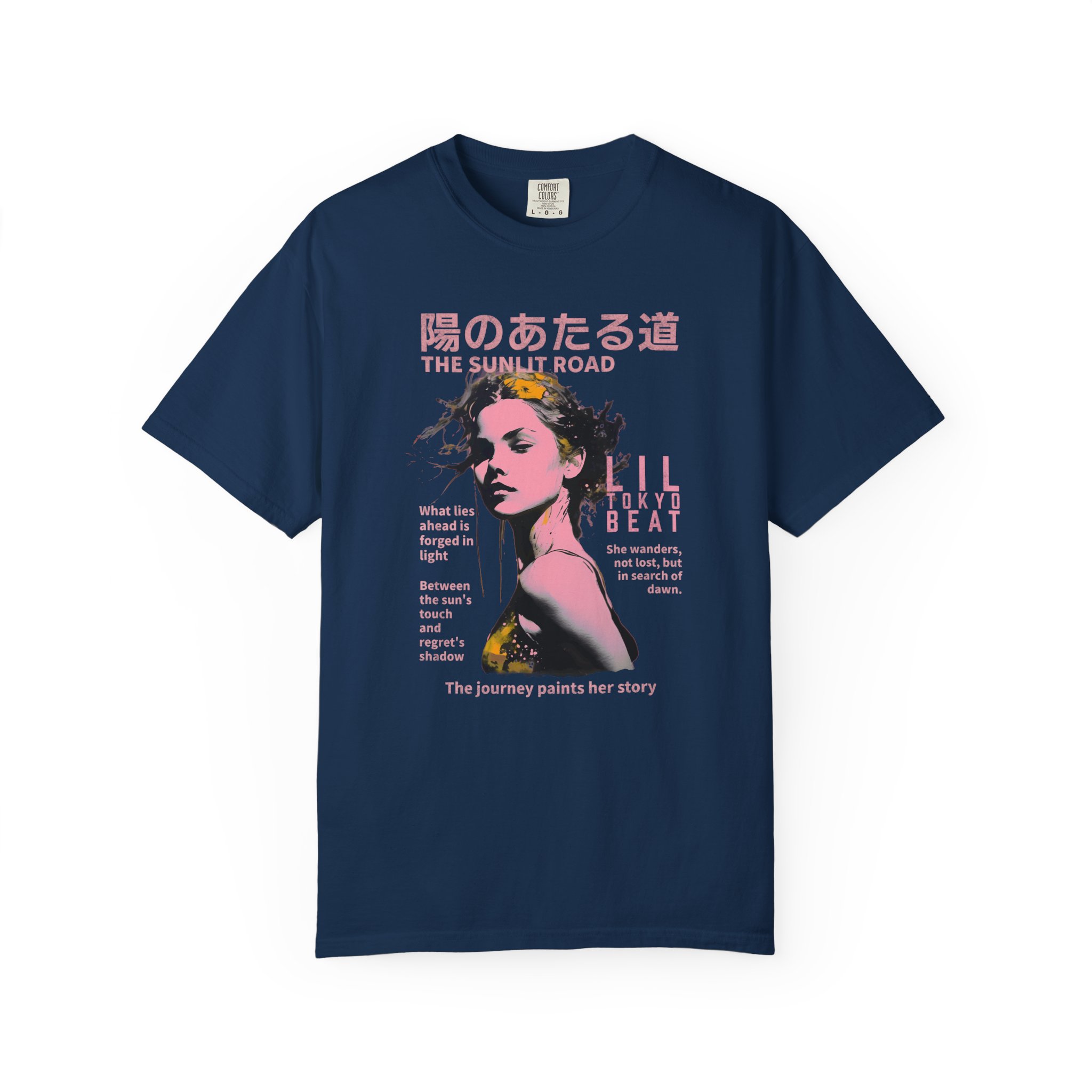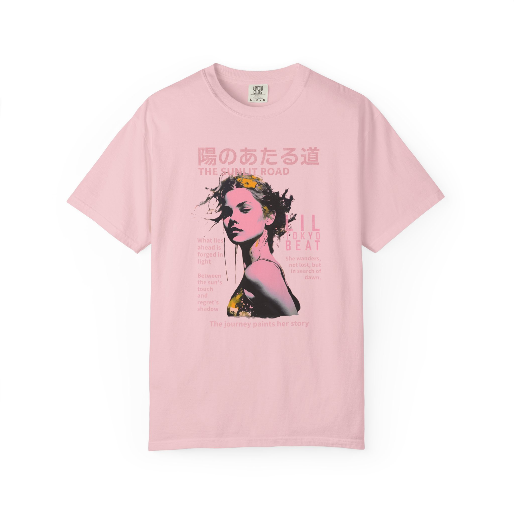 Step into a story of light, hope, and quiet resilience with this poetic graphic T-shirt from Lil Tokyo Beat. The design features a stylized portrait framed by soft floral elements and bilingual text that reflects themes of wandering, searching, and choosing to walk toward dawn even when the path is uncertain. With its warm palette, introspective mood, and contemporary streetwear edge, this tee is perfect for creatives, dreamers, J‑culture fans, and anyone who connects with designs that speak to personal journeys and the light that shapes them. Whether worn for peaceful days, reflective moments, weekend outings, or everyday streetwear, this shirt channels the spirit of growth, courage, and the beauty found in forging your own sunlit road. Created under the Lil Tokyo Beat philosophy—Kool. Artful. Timeless.—this design continues the brand vision as A New Voice in Tee Culture.