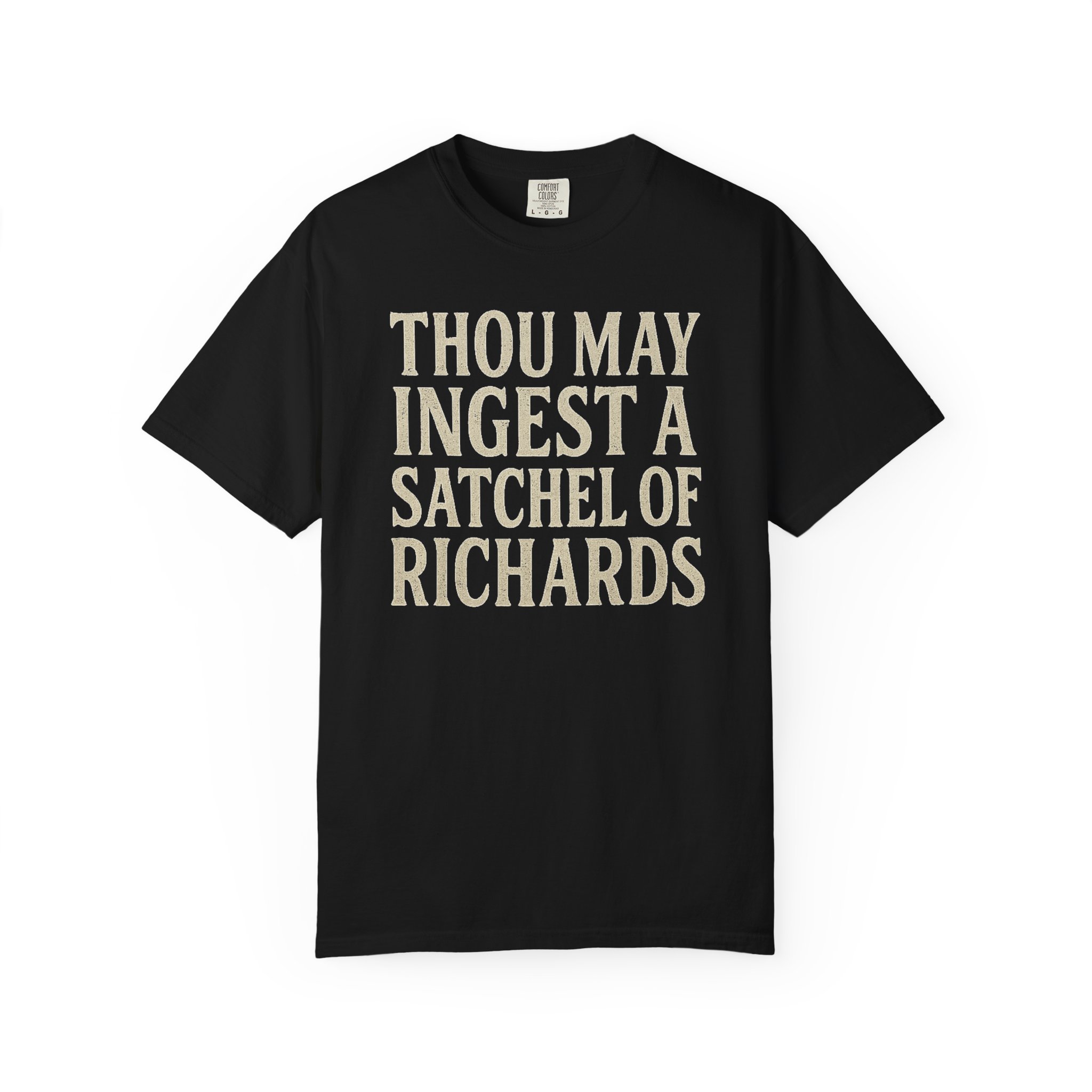 This heavyweight garment-dyed tee brings a dry, literary wit to everyday wear. Made from 100% ring-spun US cotton with a relaxed fit and tubular construction, the shirt feels broken-in from the first wear and holds up through regular use. The front features a bold, antiqued-type headline that reads like a line from an old satirical pamphlet — subtle, clever, and slightly absurd. Wear it to readings, low-key nights out, or while lounging at home with a book and coffee; the soft, muted dye and sewn-in label keep the look quietly crafted rather than flashy.