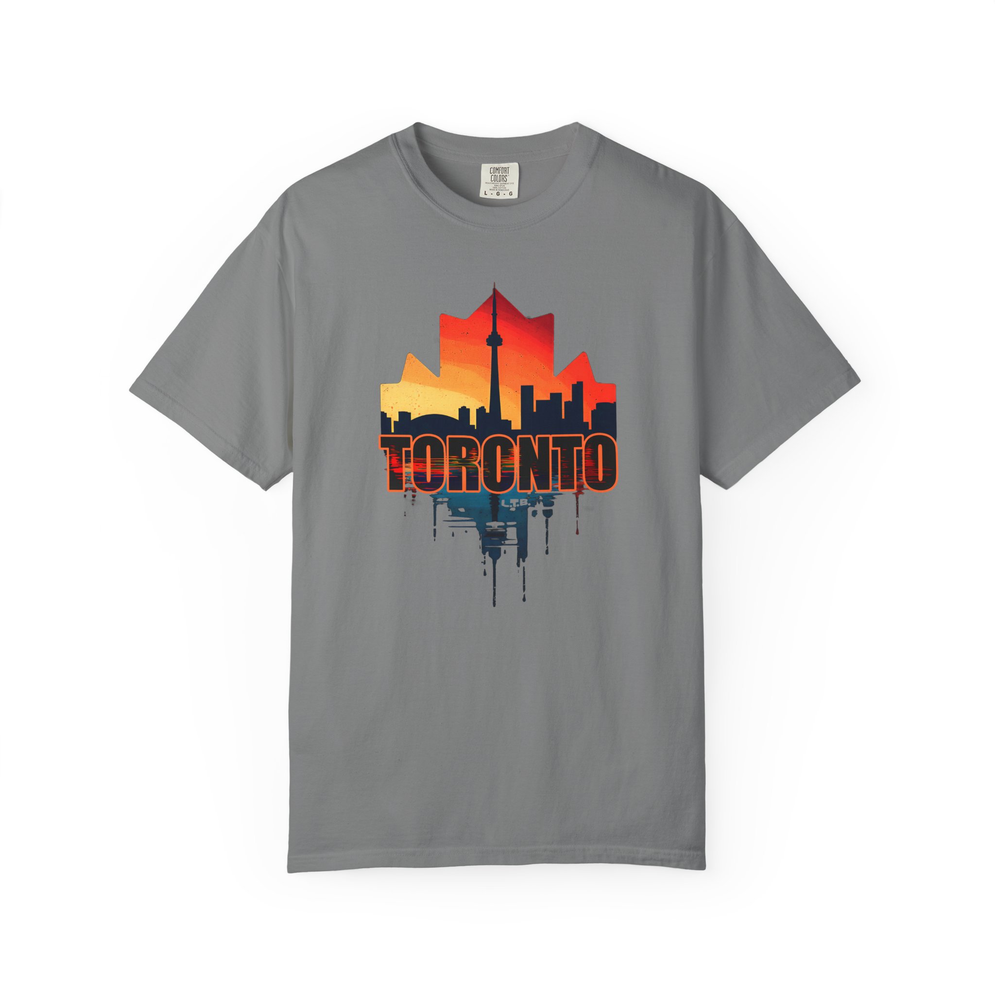 Celebrate one of Canada’s most iconic cities with this bold Toronto skyline graphic T-shirt from Lil Tokyo Beat. The design features the recognizable silhouette of Toronto’s skyline highlighted by the famous CN Tower, framed within a striking maple leaf shape that symbolizes Canada. Warm sunset tones of orange and red blend into the skyline, creating a dramatic cityscape that captures the energy of Toronto at dusk.