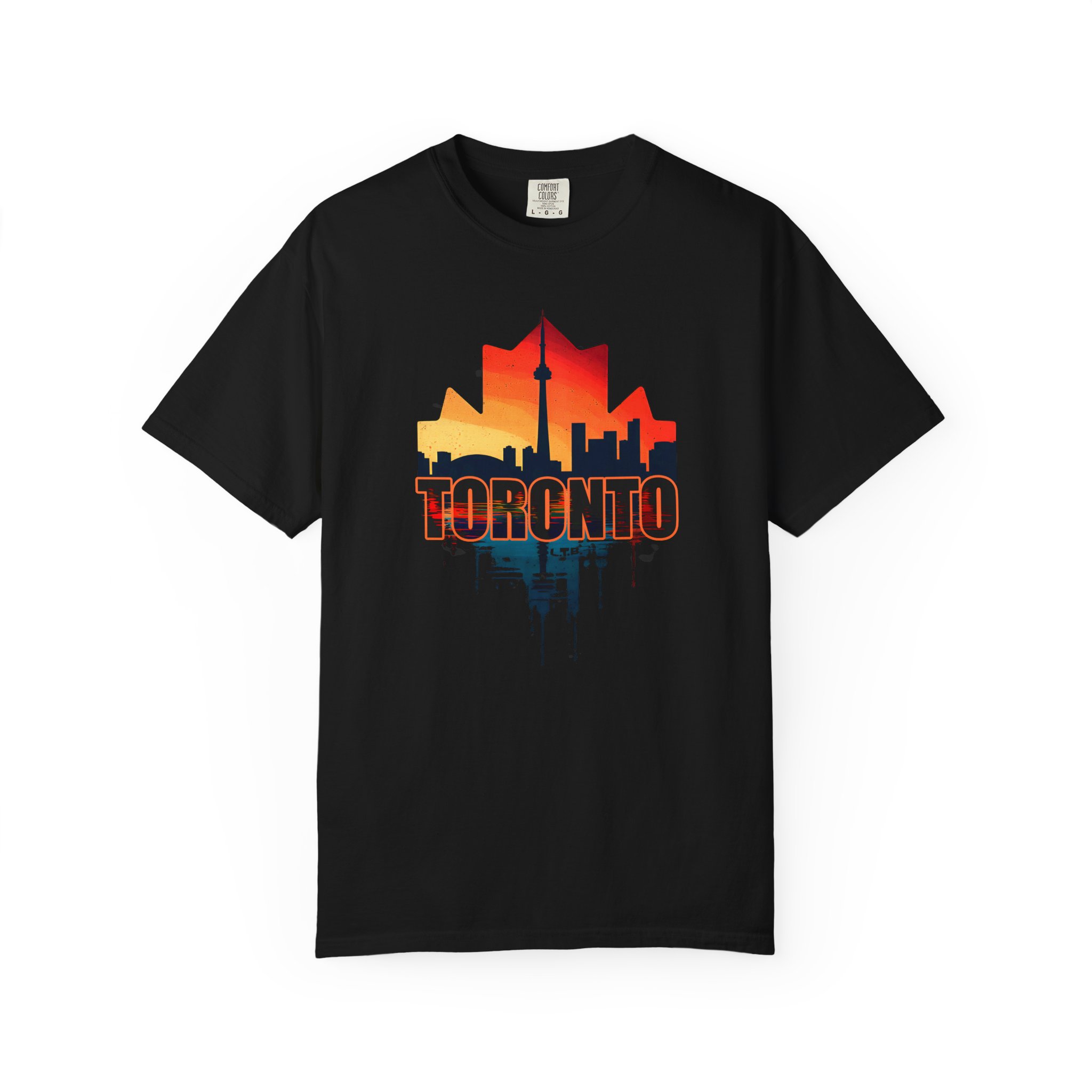 Be the first to review “Toronto Skyline Maple Leaf T-Shirt – CN Tower Sunset City Graphic Tee”
