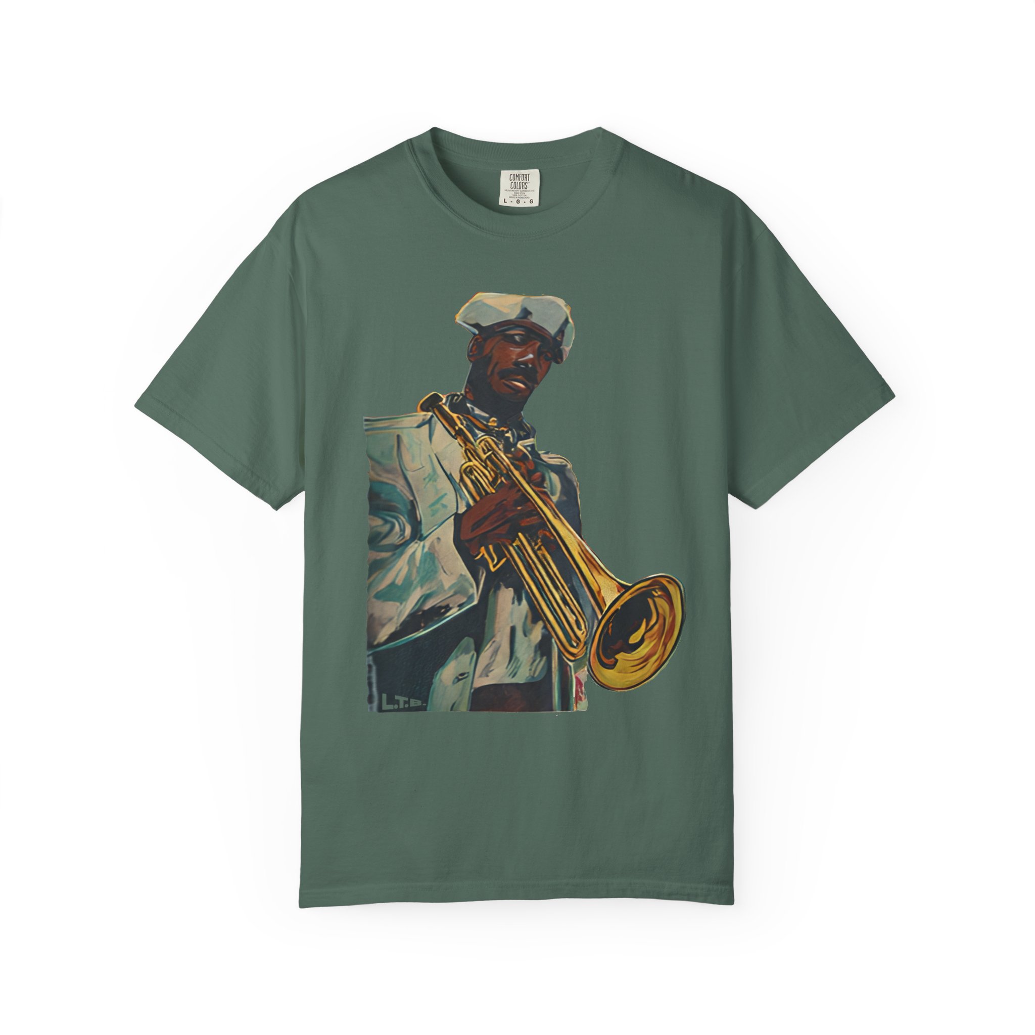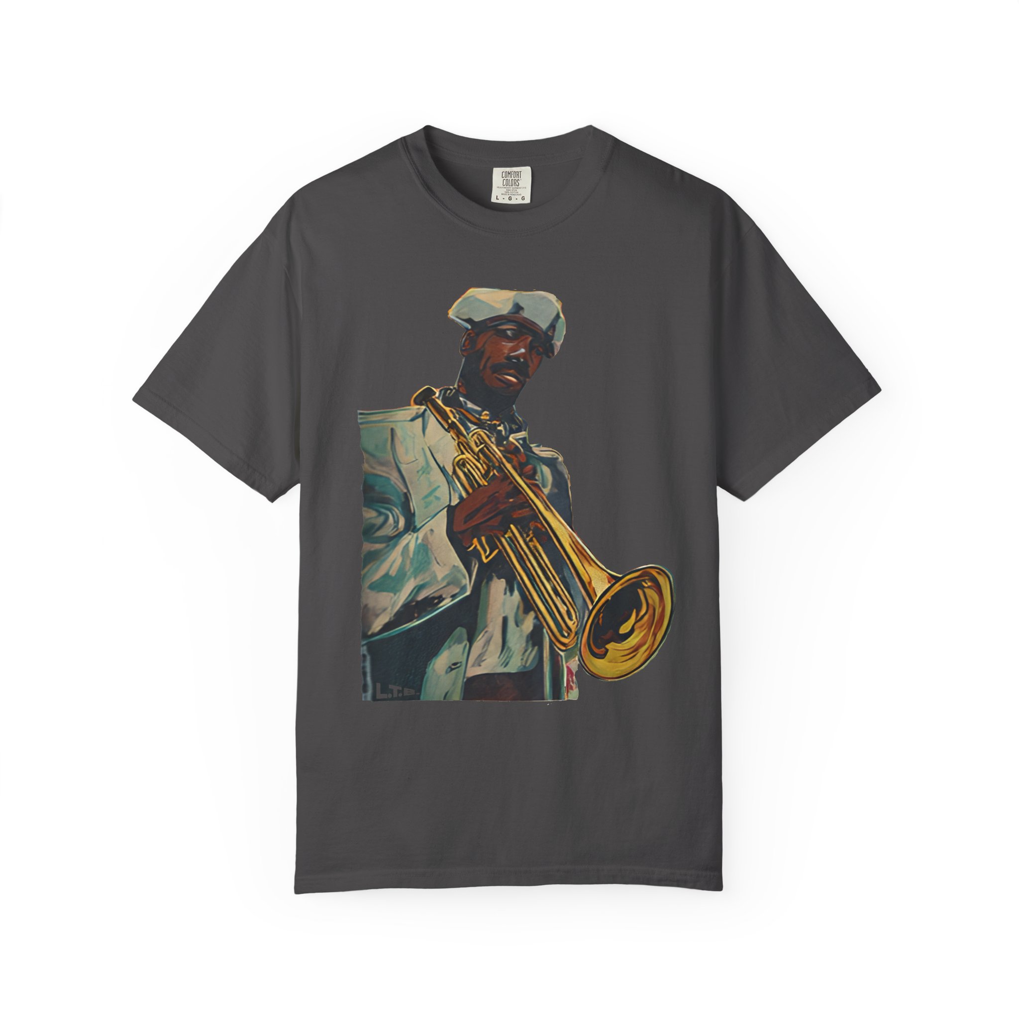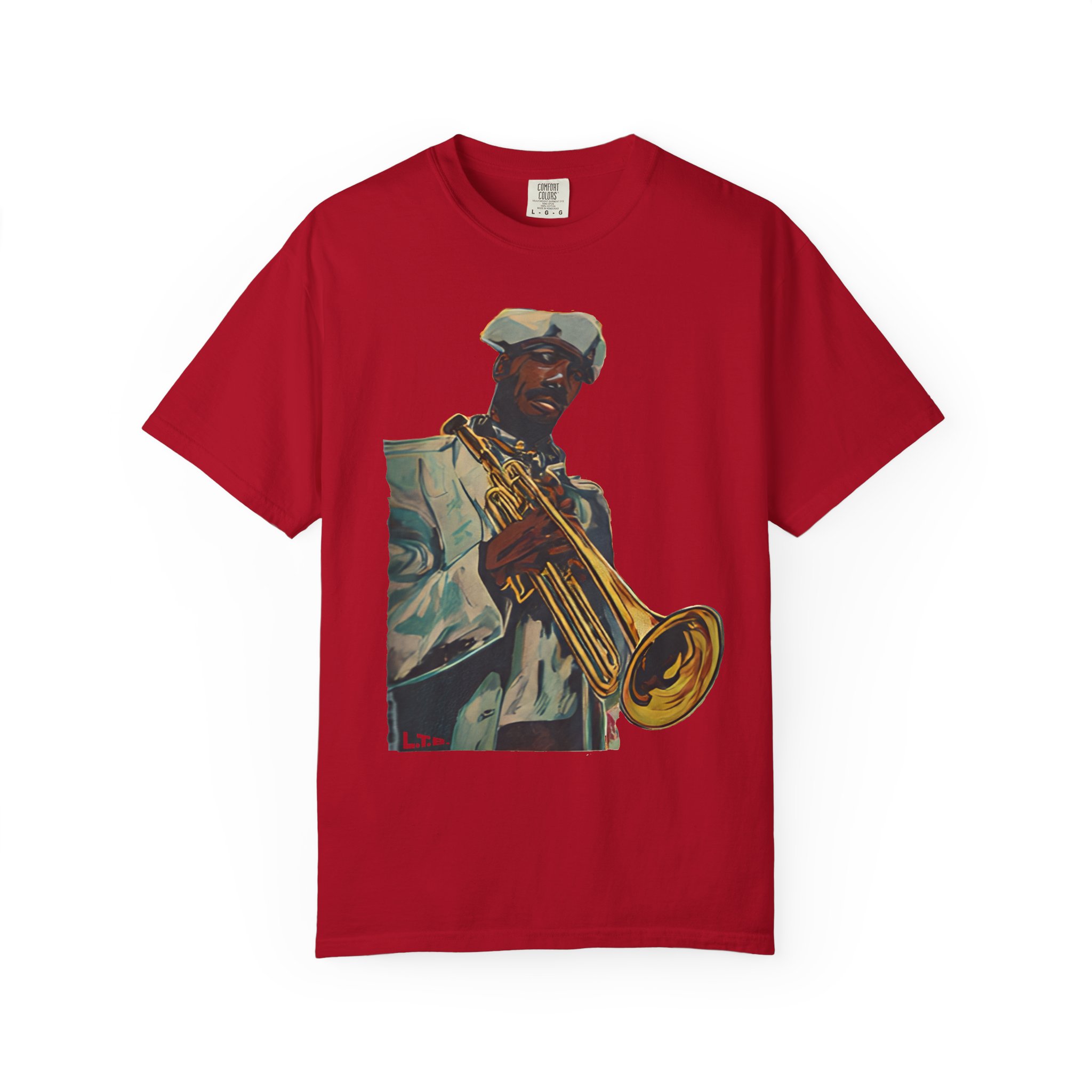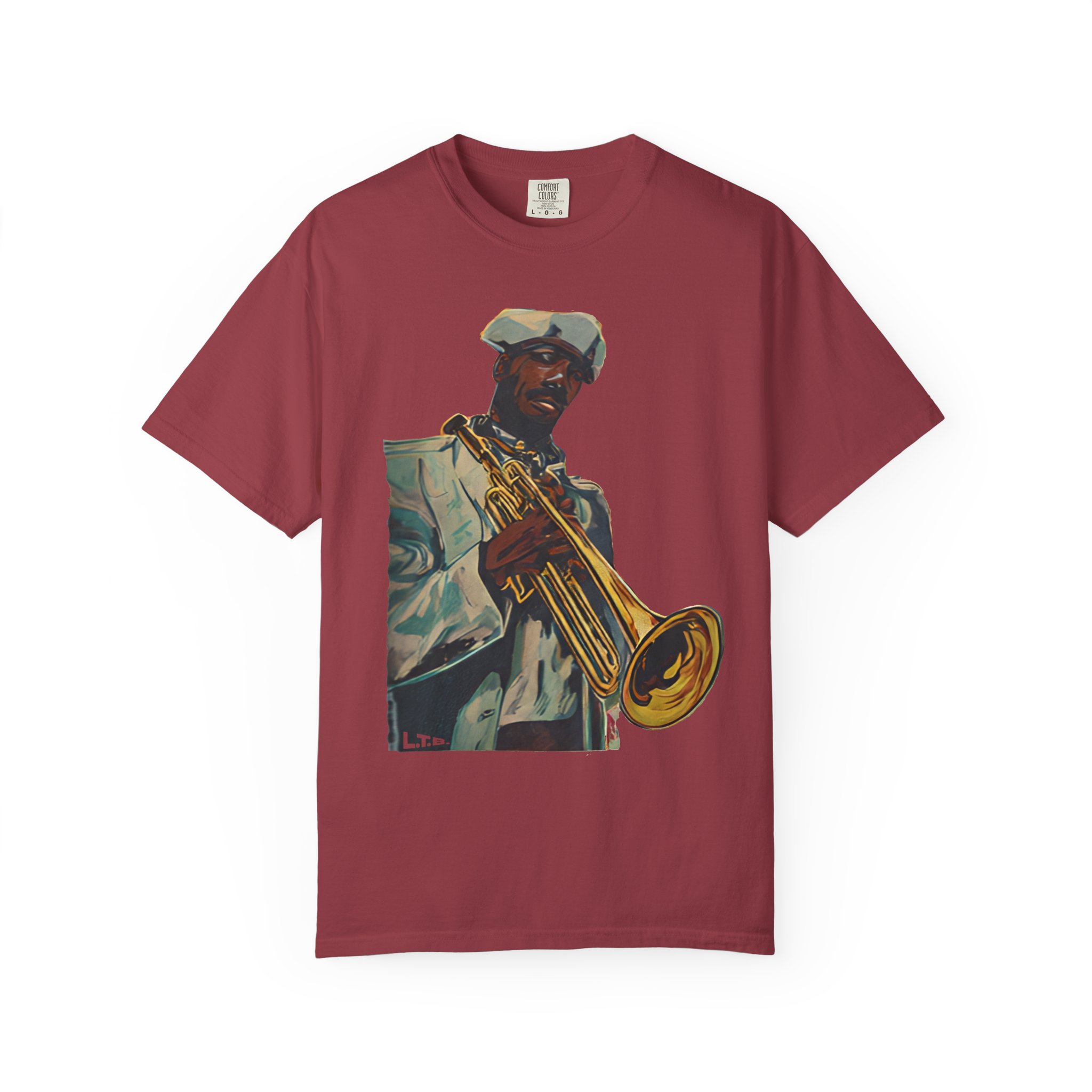 This heavyweight, garment-dyed tee brings warm, lived-in color and bold musical energy to your everyday rotation. The front artwork — a stylized portrait of a trumpeter mid-performance — feels like a late-night set in a smoky club or a sunny street-corner jam. The soft, garment-dyed finish and relaxed fit invite you to wear it again and again until the shirt takes on your rhythm. It sits comfortably through rehearsals, gigs, and weekends spent crate-digging or listening to records. Durable double-needle stitching and a tubular, no-side-seam build keep the silhouette clean and long-lasting, while the sewn-in label and pre-shrunk ring-spun cotton mean the fit stays true. Choose from many earthy, vintage-inspired colors to match the artwork’s warm tones and your own style story.