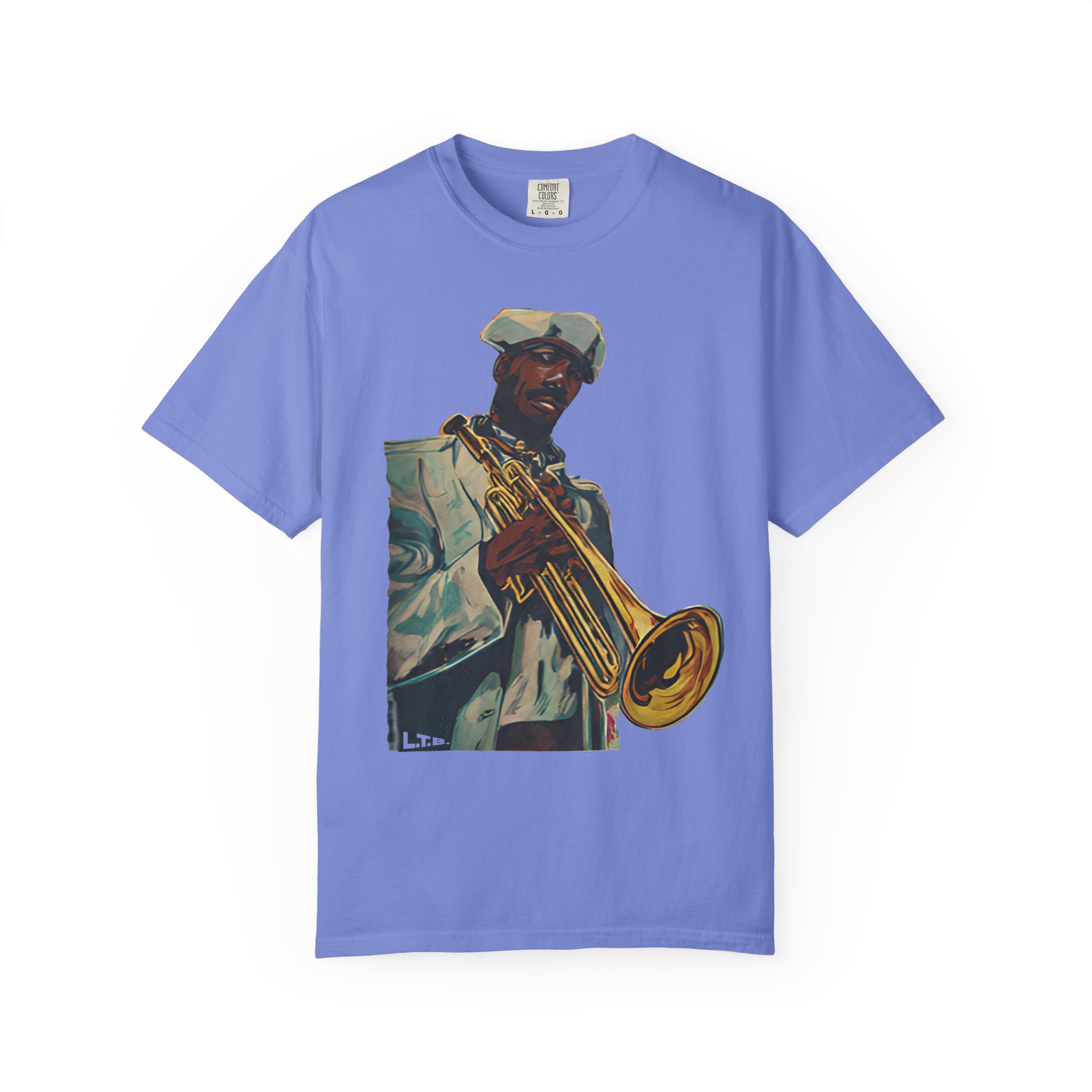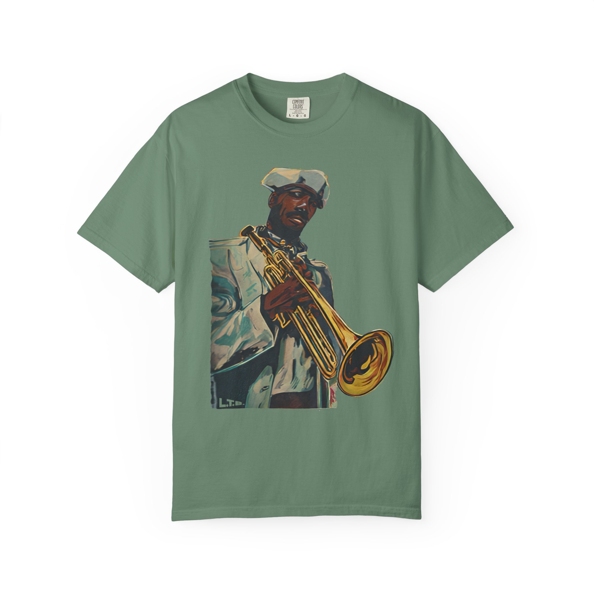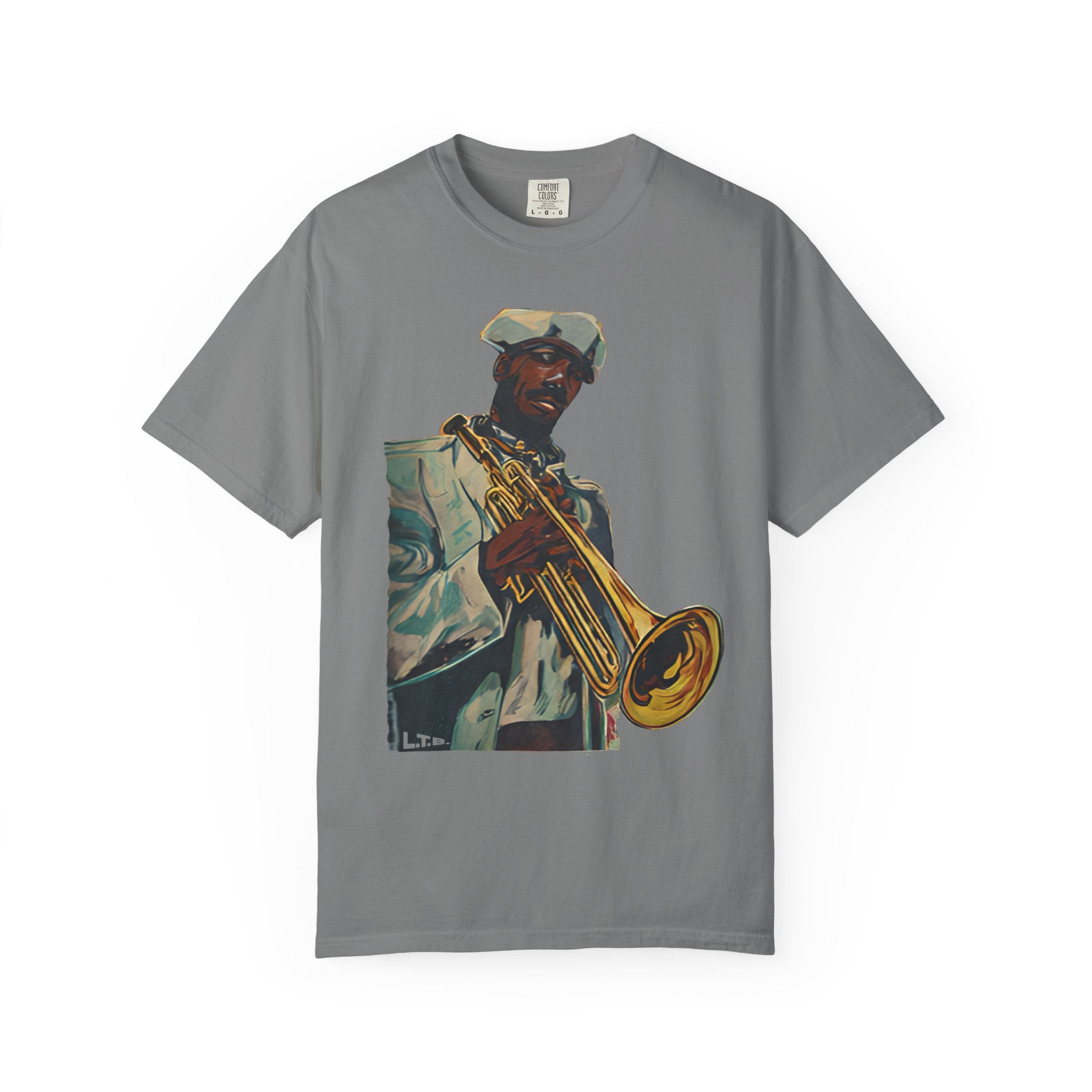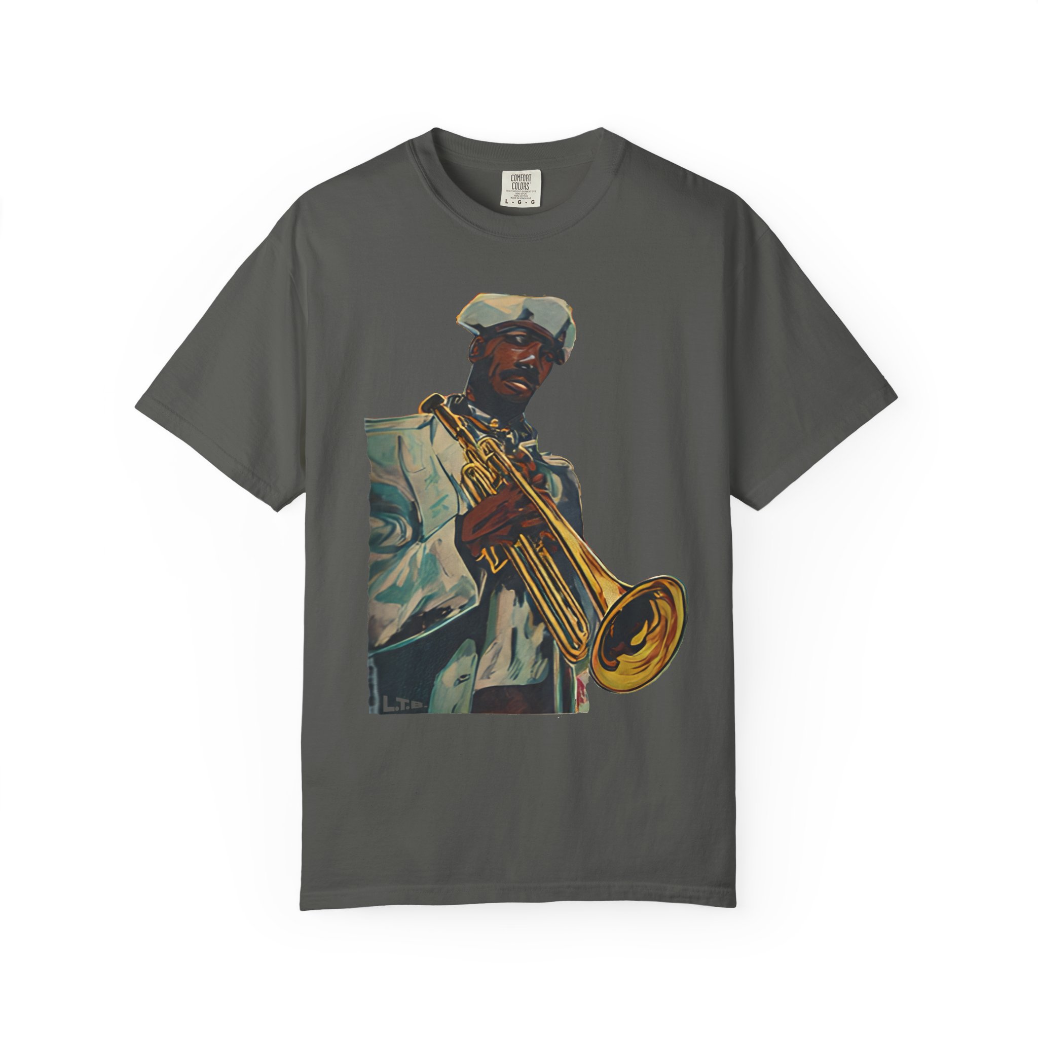 This heavyweight, garment-dyed tee brings warm, lived-in color and bold musical energy to your everyday rotation. The front artwork — a stylized portrait of a trumpeter mid-performance — feels like a late-night set in a smoky club or a sunny street-corner jam. The soft, garment-dyed finish and relaxed fit invite you to wear it again and again until the shirt takes on your rhythm. It sits comfortably through rehearsals, gigs, and weekends spent crate-digging or listening to records. Durable double-needle stitching and a tubular, no-side-seam build keep the silhouette clean and long-lasting, while the sewn-in label and pre-shrunk ring-spun cotton mean the fit stays true. Choose from many earthy, vintage-inspired colors to match the artwork’s warm tones and your own style story.