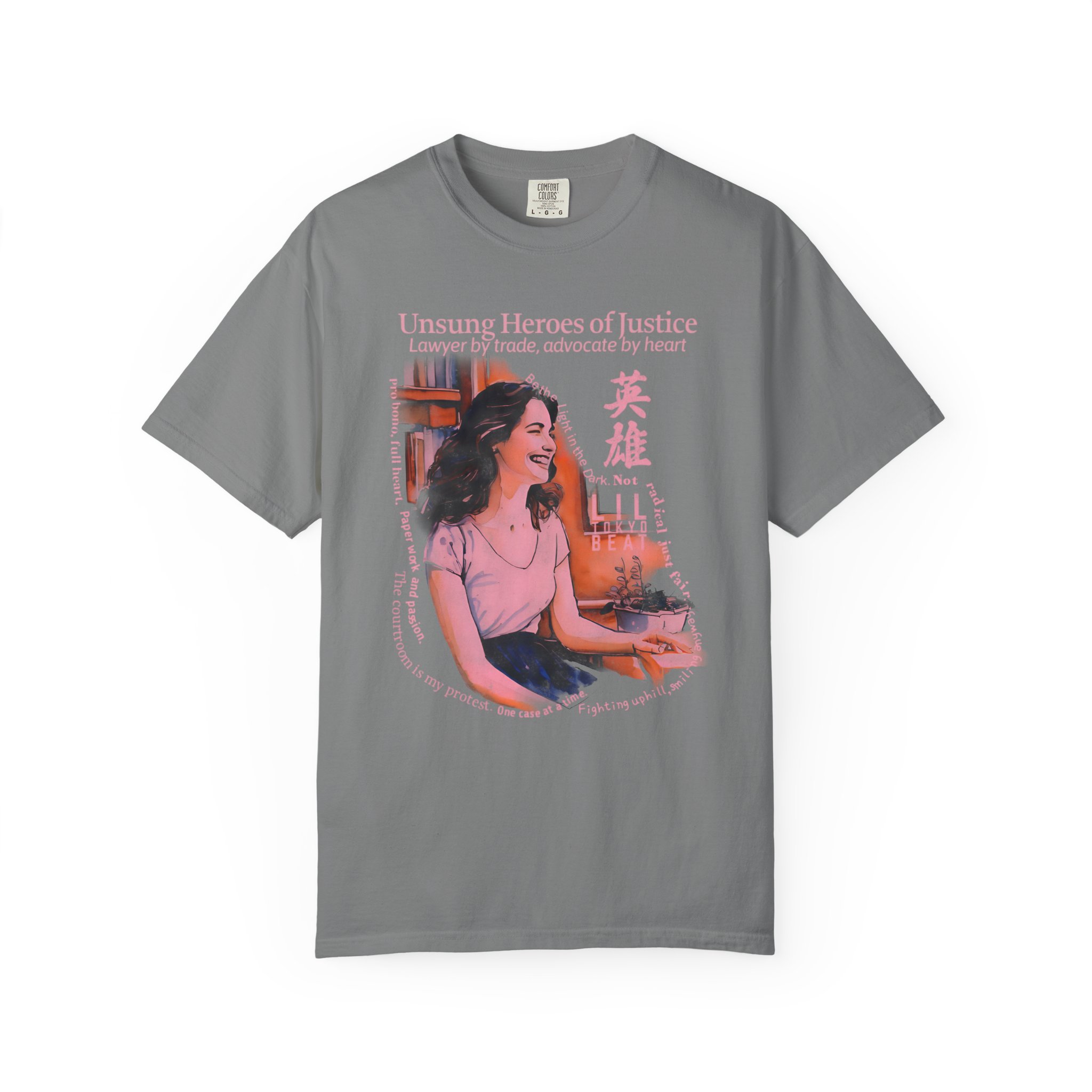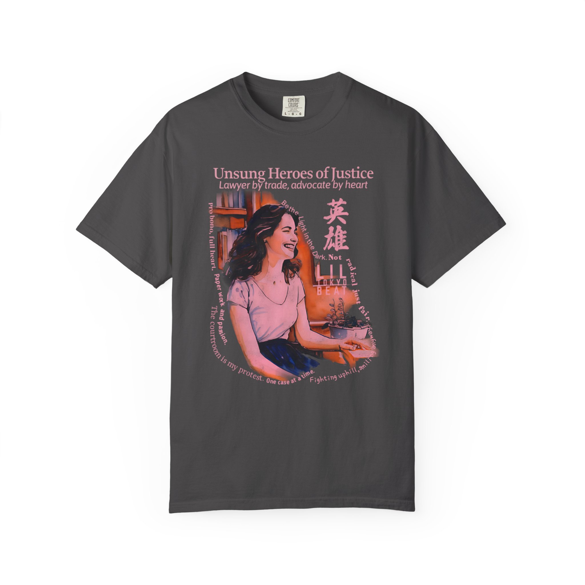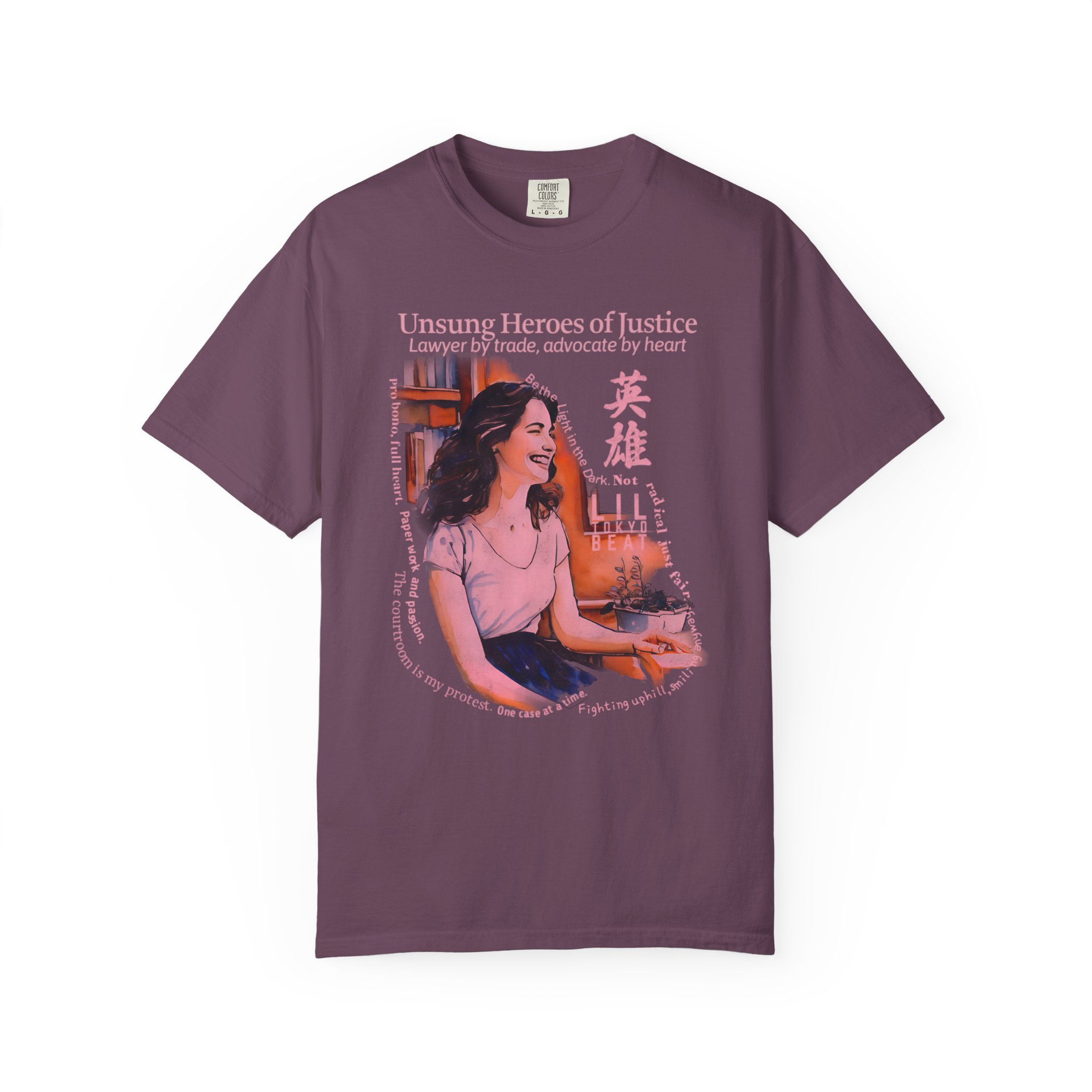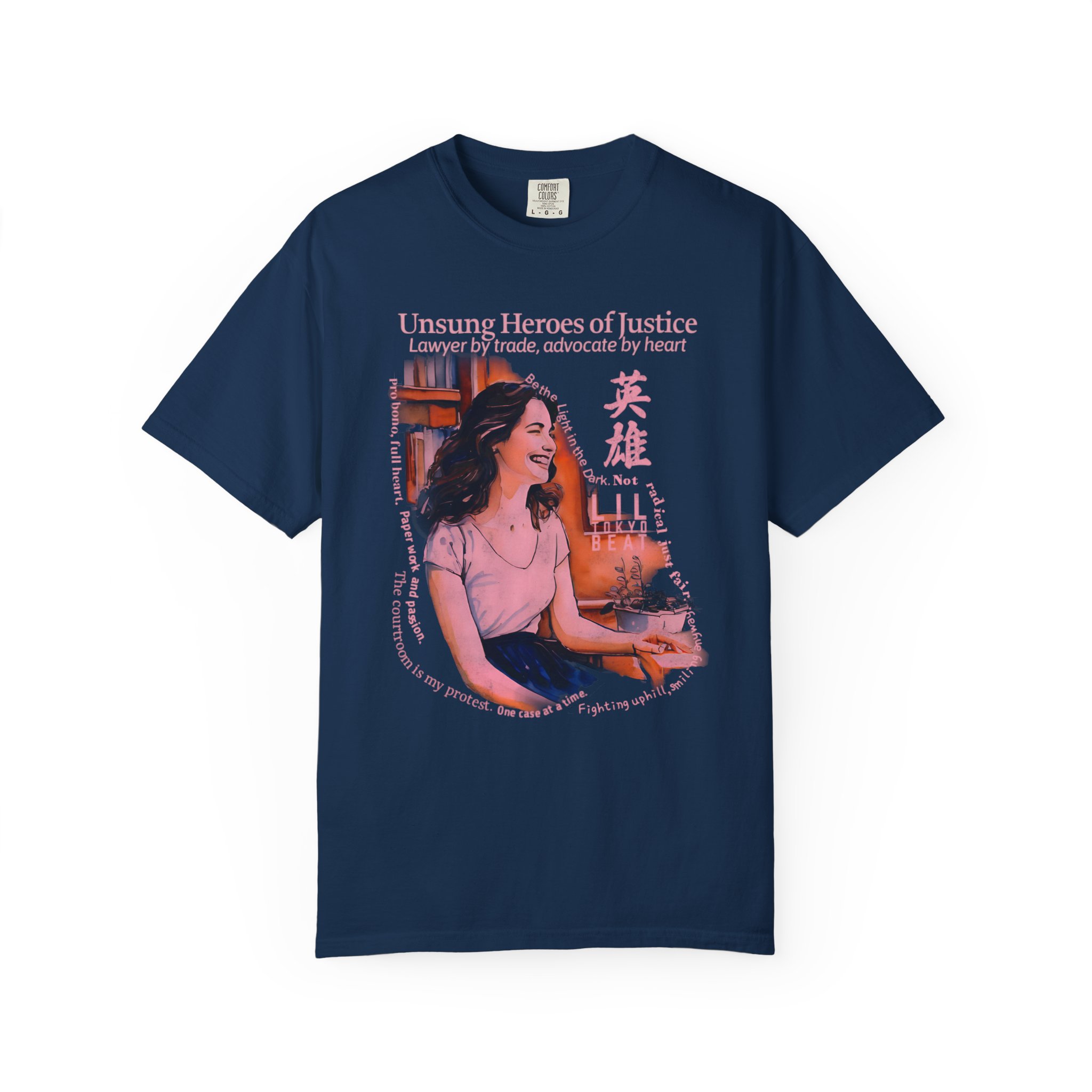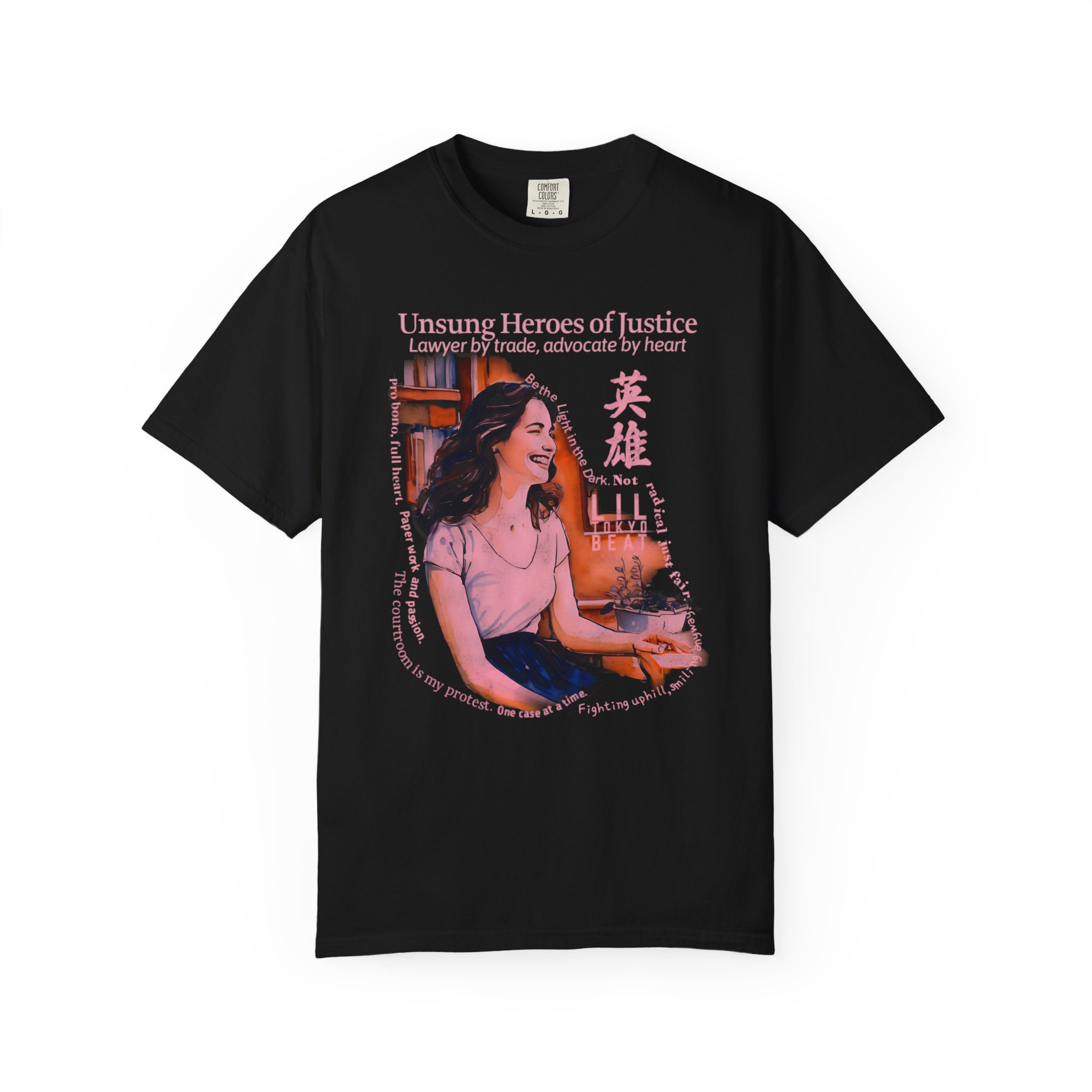 Celebrate purpose, passion, and advocacy with this justice‑inspired graphic T-shirt from Lil Tokyo Beat. The design features a thoughtful illustrated character surrounded by books and warm colorwork, capturing the spirit of dedication, service, and standing up for others. Blending modern illustration with themes of resilience and quiet heroism, this tee honors those who work behind the scenes to make a difference. Perfect for law students, public defenders, nonprofit workers, community advocates, and anyone who believes in doing the work for impact—not recognition. Whether worn in the office, on campus, or at community events, this shirt embodies integrity, compassion, and everyday courage. Created under the Lil Tokyo Beat philosophy—Kool. Artful. Timeless.—this design continues the brand vision as A New Voice in Tee Culture.