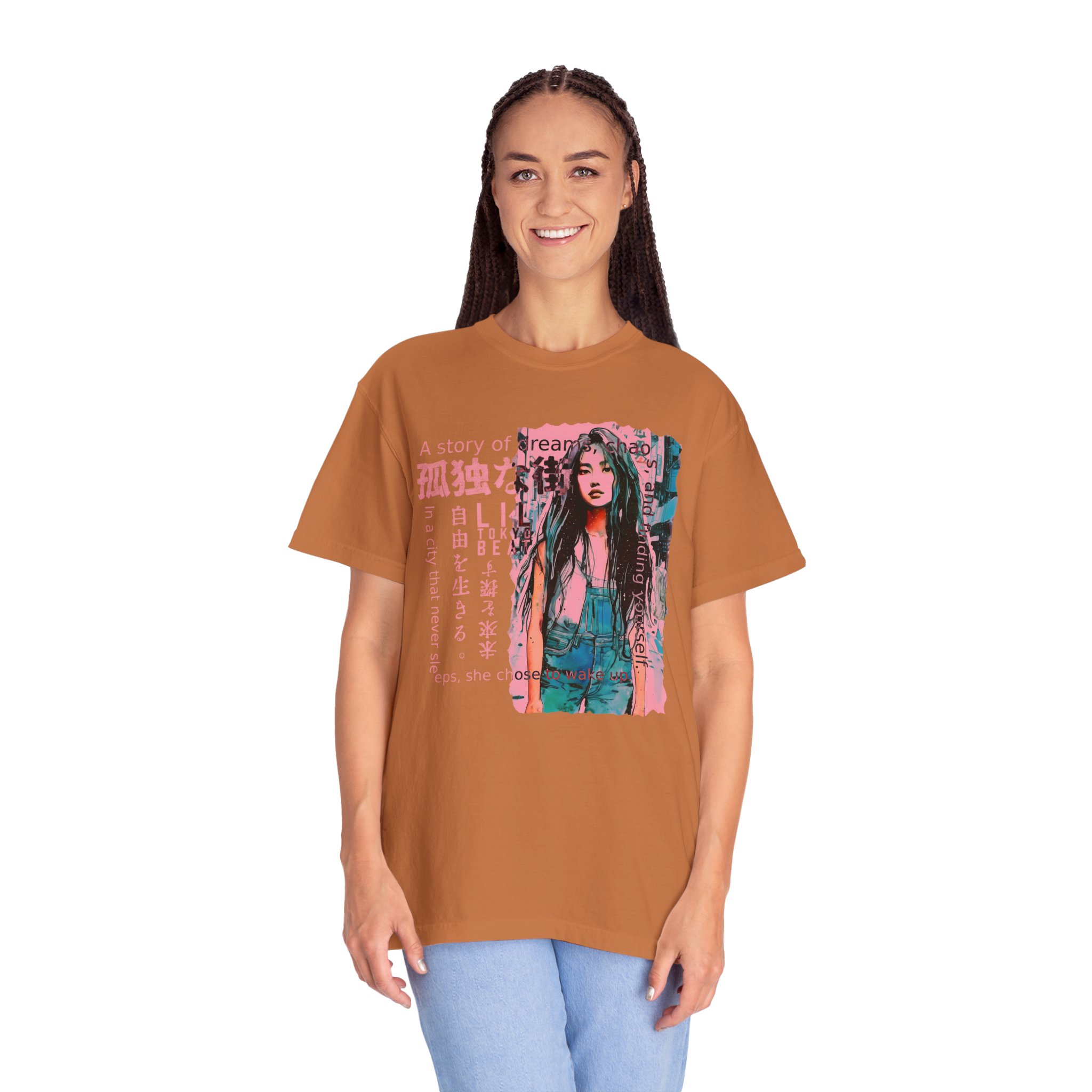 Urban Tokyo Dreamer Graphic Tee – Unisex Garment-Dyed T-shirt, Bold Japanese Streetwear Shirt, Tokyo Inspired Tee, Unisex Graphic Top, t0