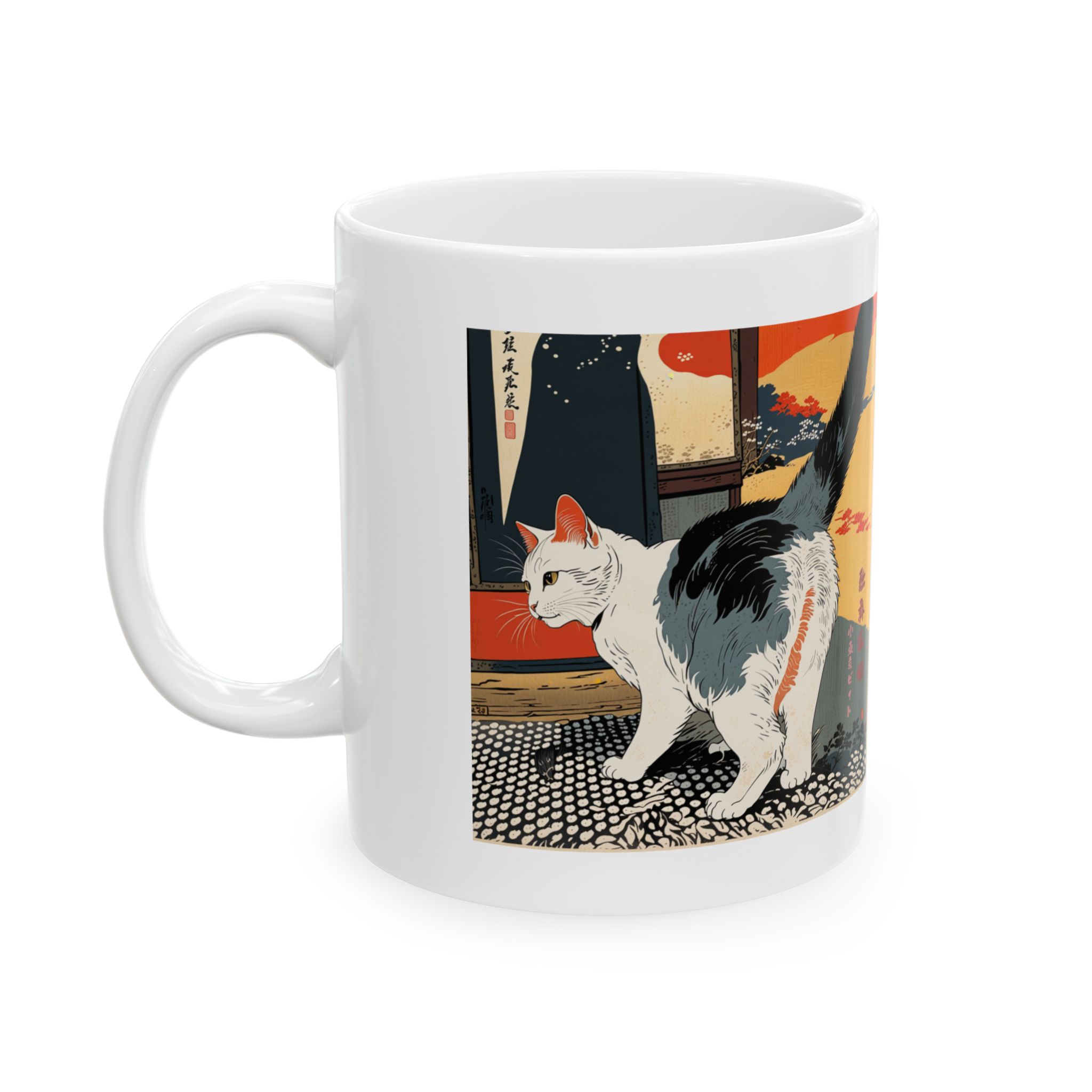 Vintage Kabuki Cat Ceramic Mug – 11oz, 15oz, Japanese Art Coffee Cup, Gift for Cat Lovers, Tea Drinkers, Unique Home Decor