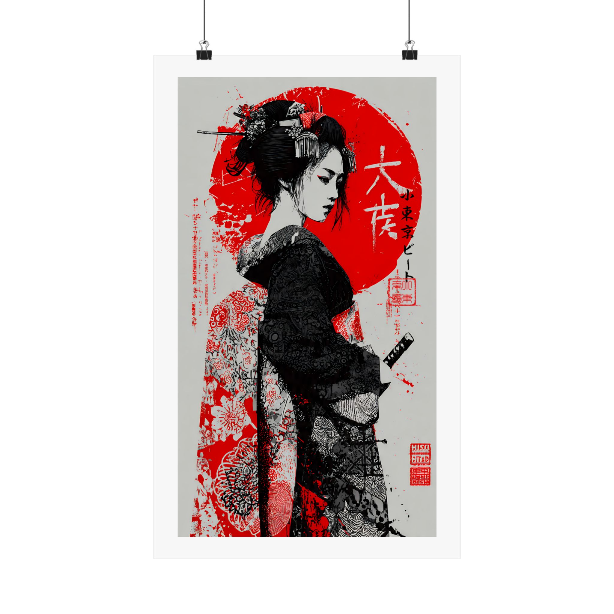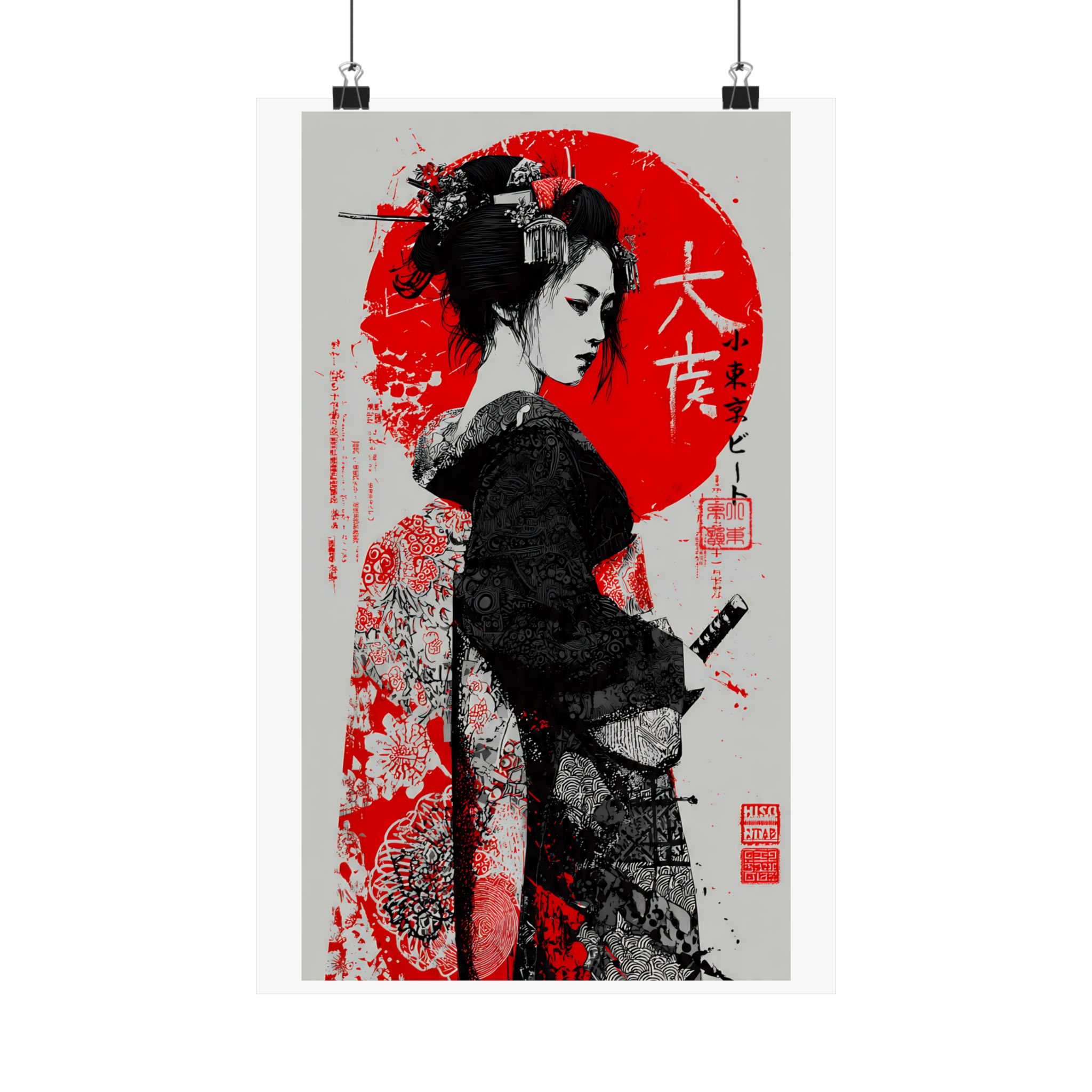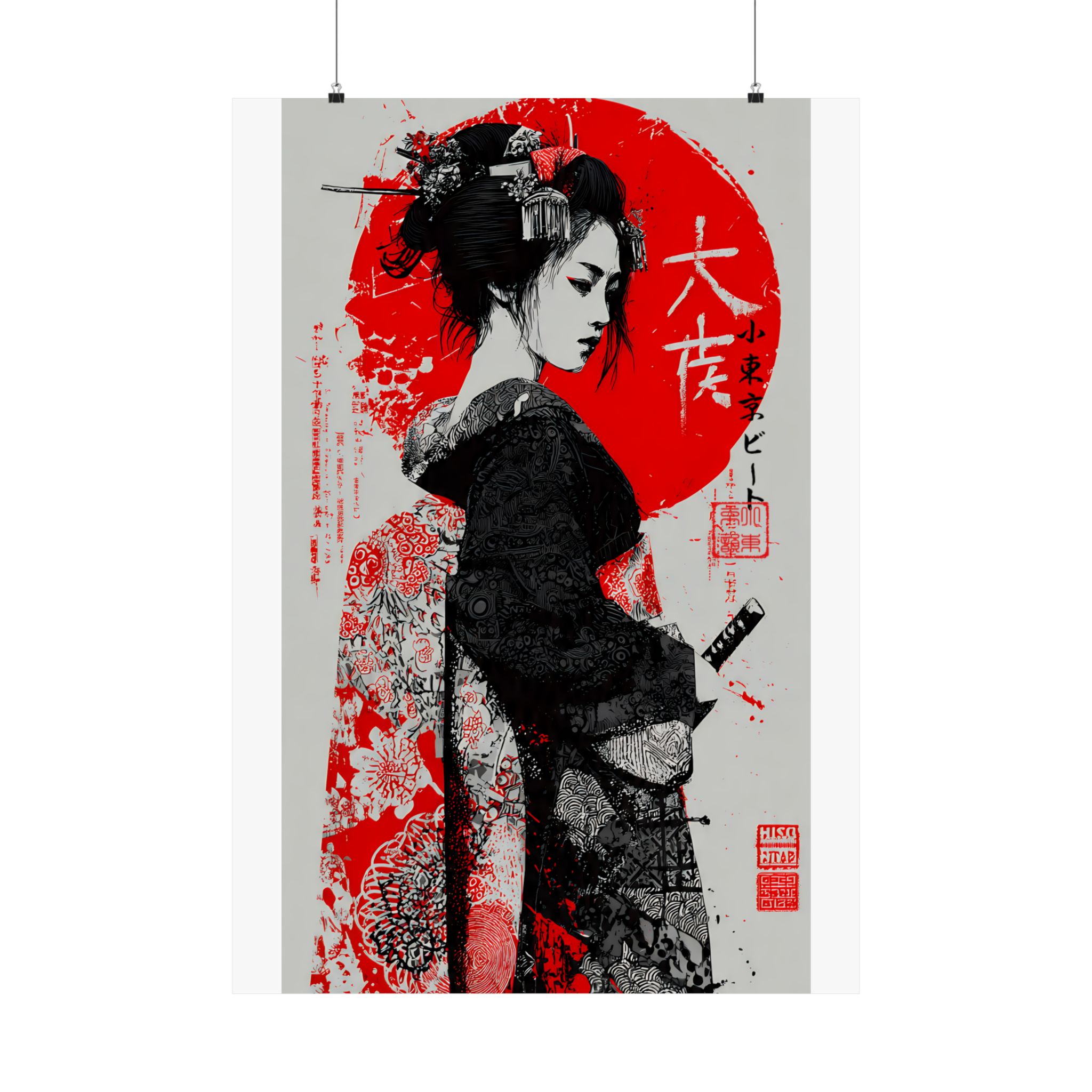 Wakizashi Geisha Matte Vertical Poster — Japanese Red Sun Wall Art