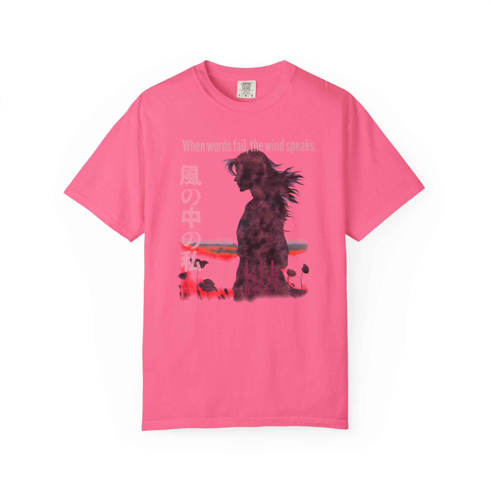 This T-Shirt features a poetic sunset silhouette design with the phrase ‘When Words Fail, the Wind Speaks’. It gives off a calming and introspective vibe, perfect for those who appreciate nature and poetry. Ideal for casual wear and can be a thoughtful gift for poetry lovers or nature enthusiasts. Suitable for occasions like birthdays, anniversaries, or casual outings. Product features – Available in multiple sizes from S to 4XL – Double-needle stitching for durability – Garment-dyed fabric for a soft texture – Made with 100% ring-spun US cotton for comfort – Available in 58 colors Care instructions – Machine wash: cold (max 30C or 90F) – Do not bleach – Tumble dry: low heat – Iron, steam or dry: low heat – Do not dryclean