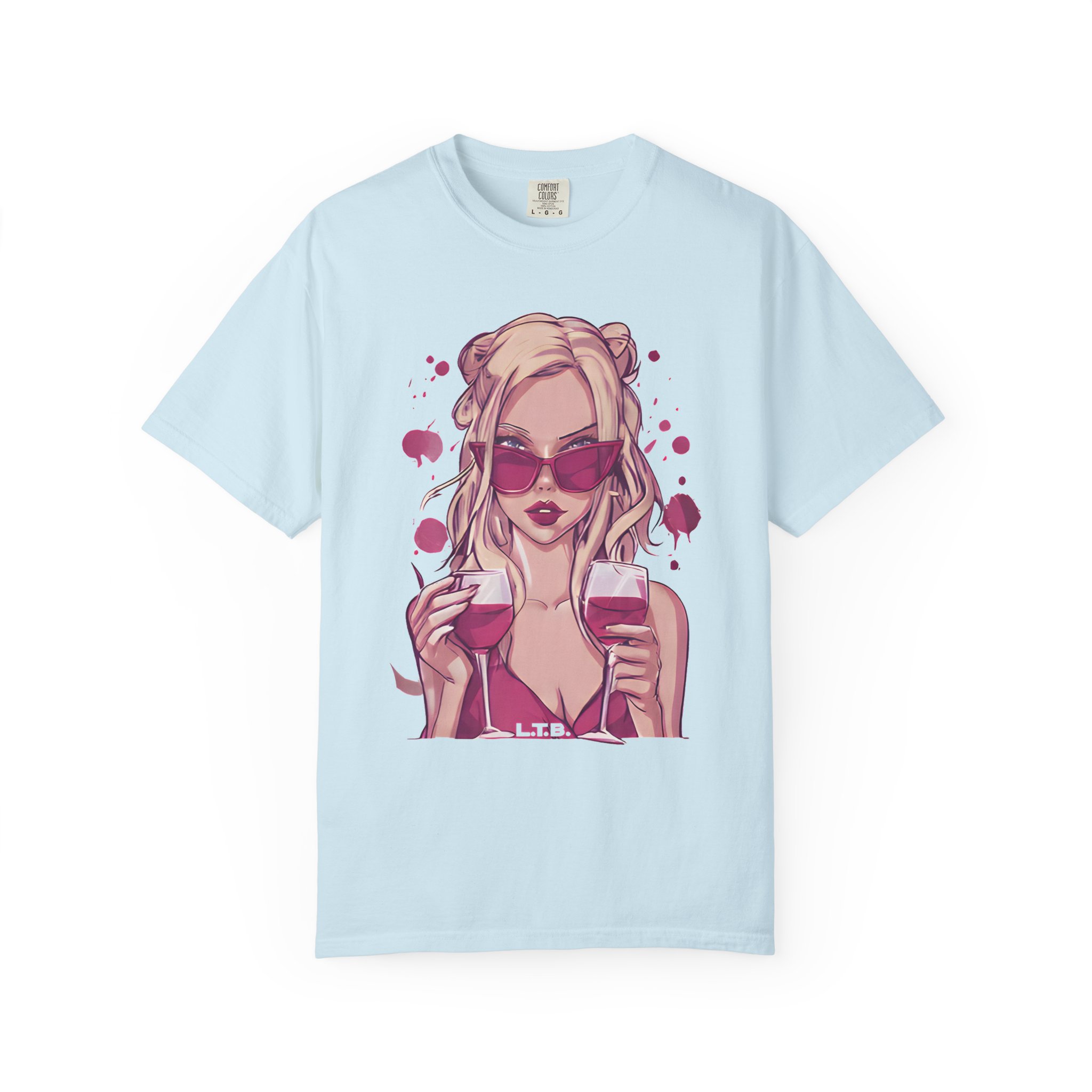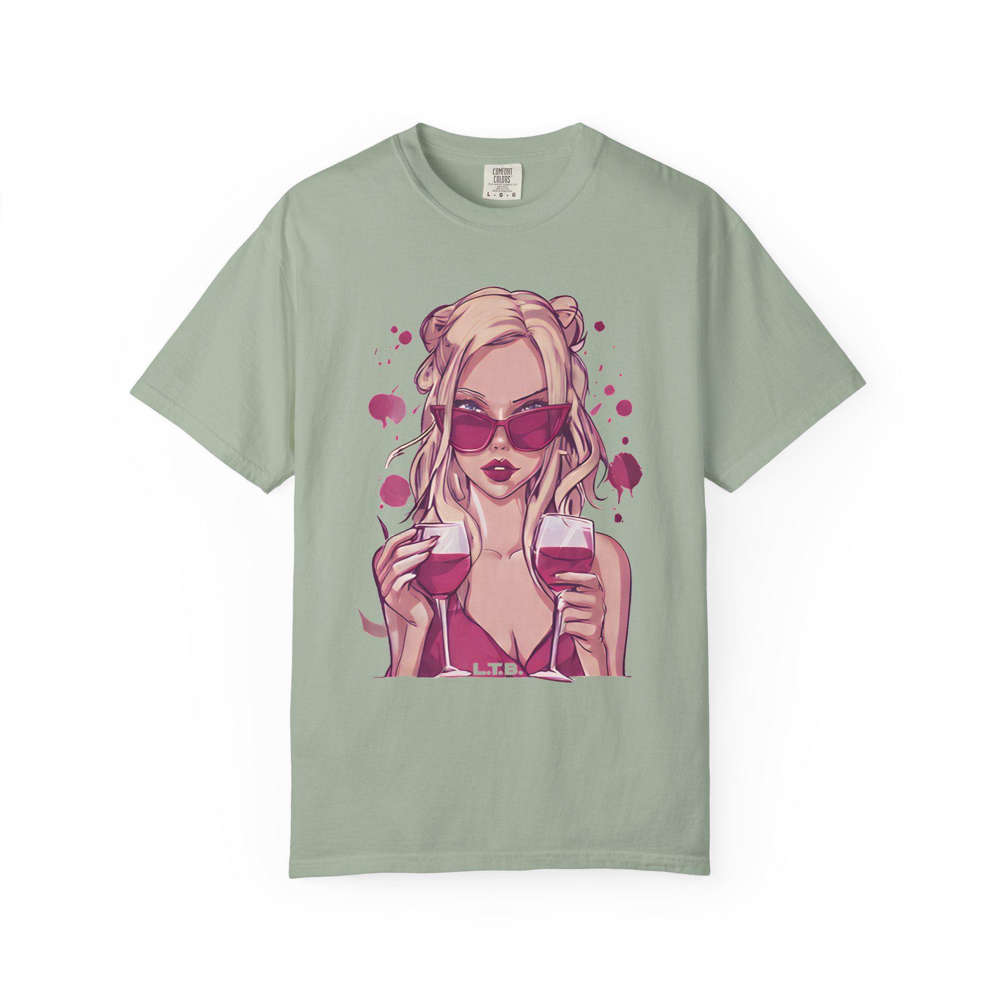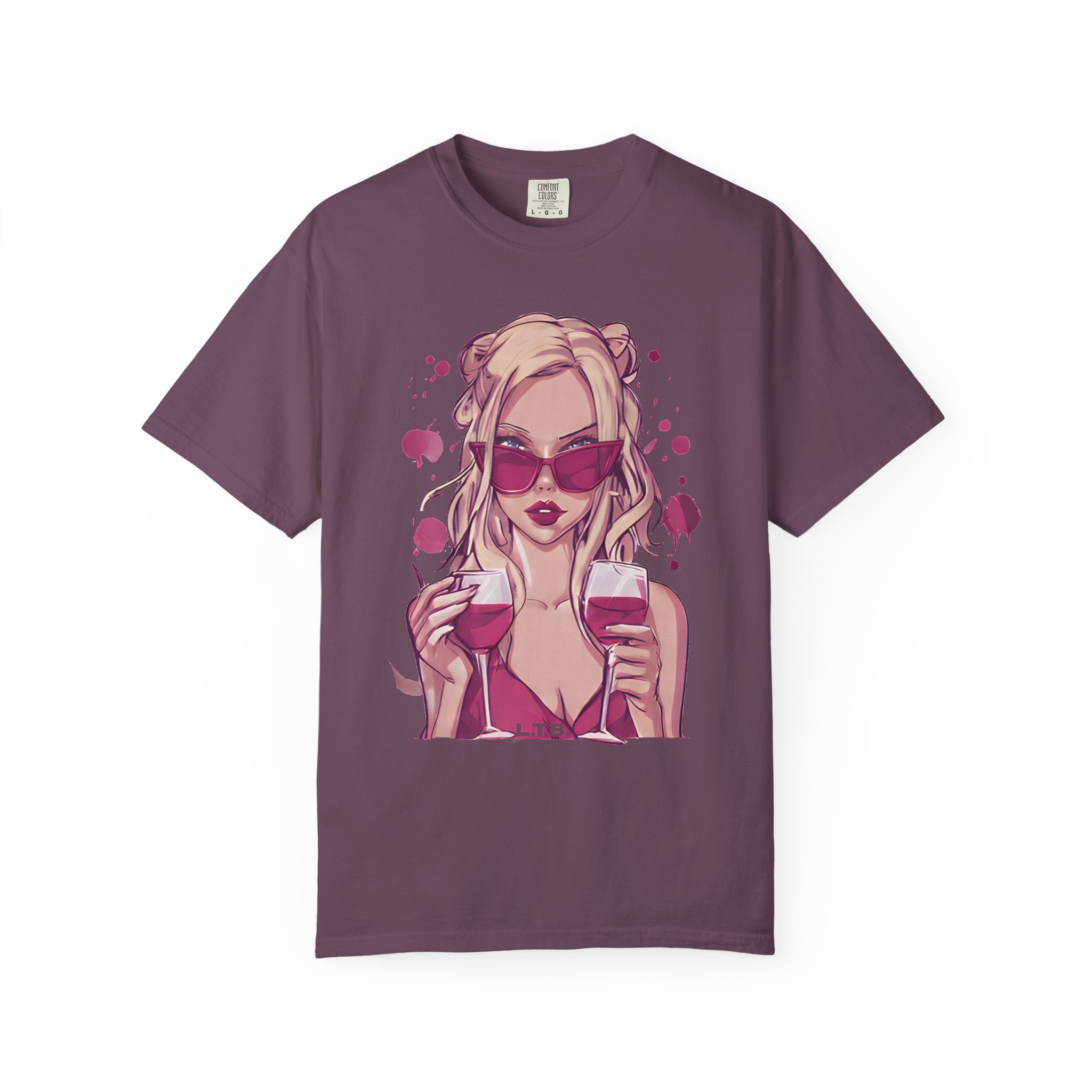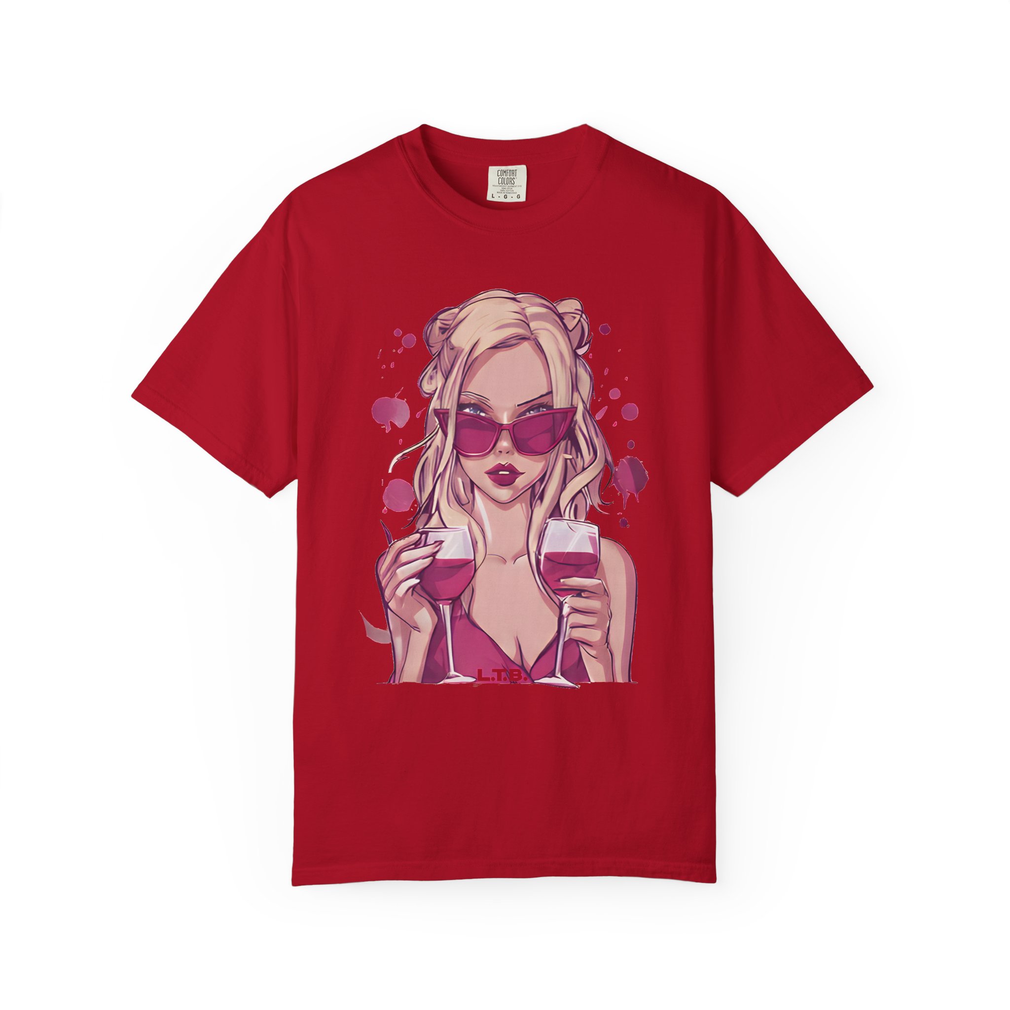 Sip in style with this chic wine girl t-shirt featuring a fashionable illustrated portrait holding two glasses of red wine. With bold sunglasses, confident expression, and splash-art accents, this design blends modern fashion illustration with wine-lover lifestyle vibes. Perfect for girls’ night out, wine tastings, brunch dates, and casual glam looks, this Lil Tokyo Beat original delivers playful confidence and artistic edge. Designed for wine lovers, fashion fans, and anyone who enjoys stylish statement tees, this piece brings together fun, attitude, and wearable art. Kool. Artful. Timeless. A new voice in tee culture — where fashion meets flavor and personality shines.