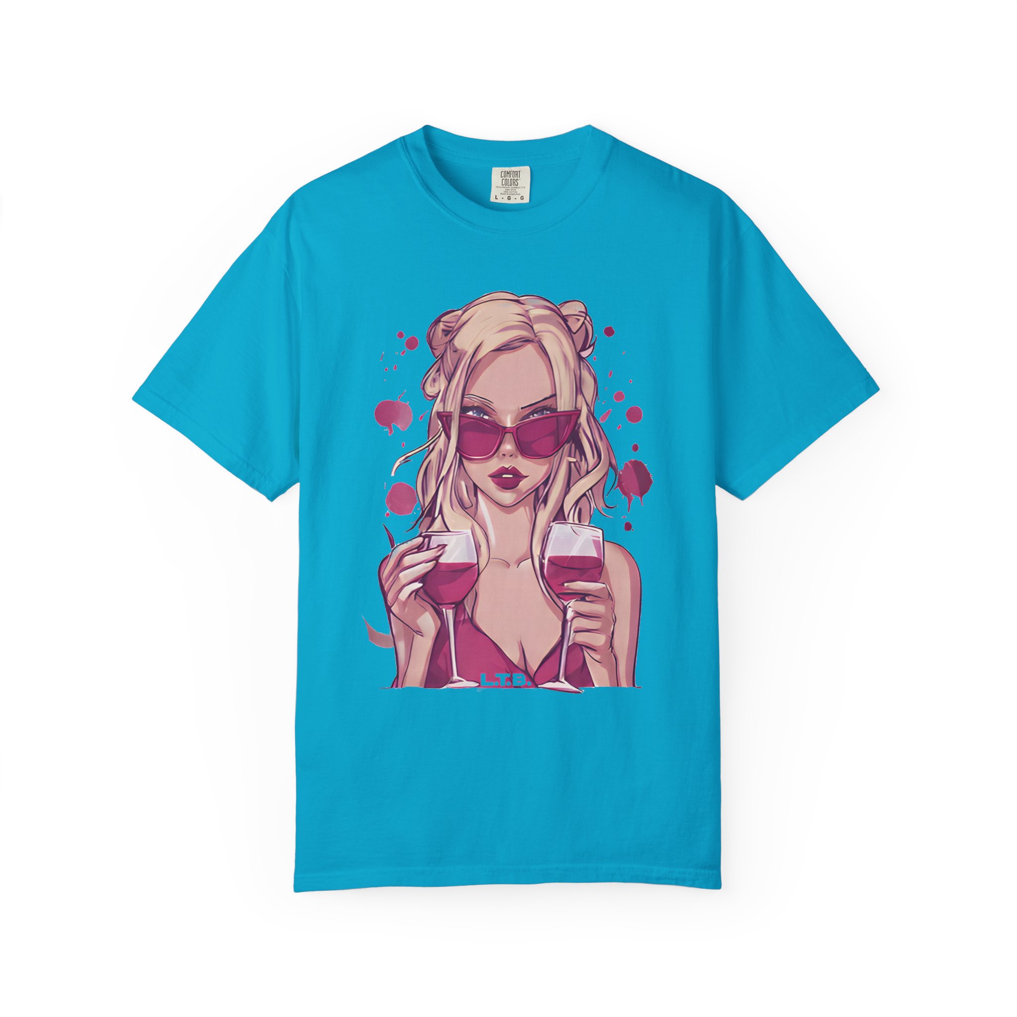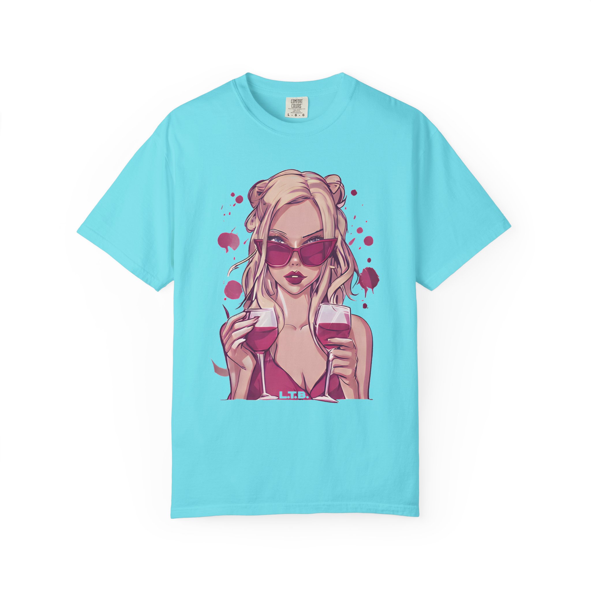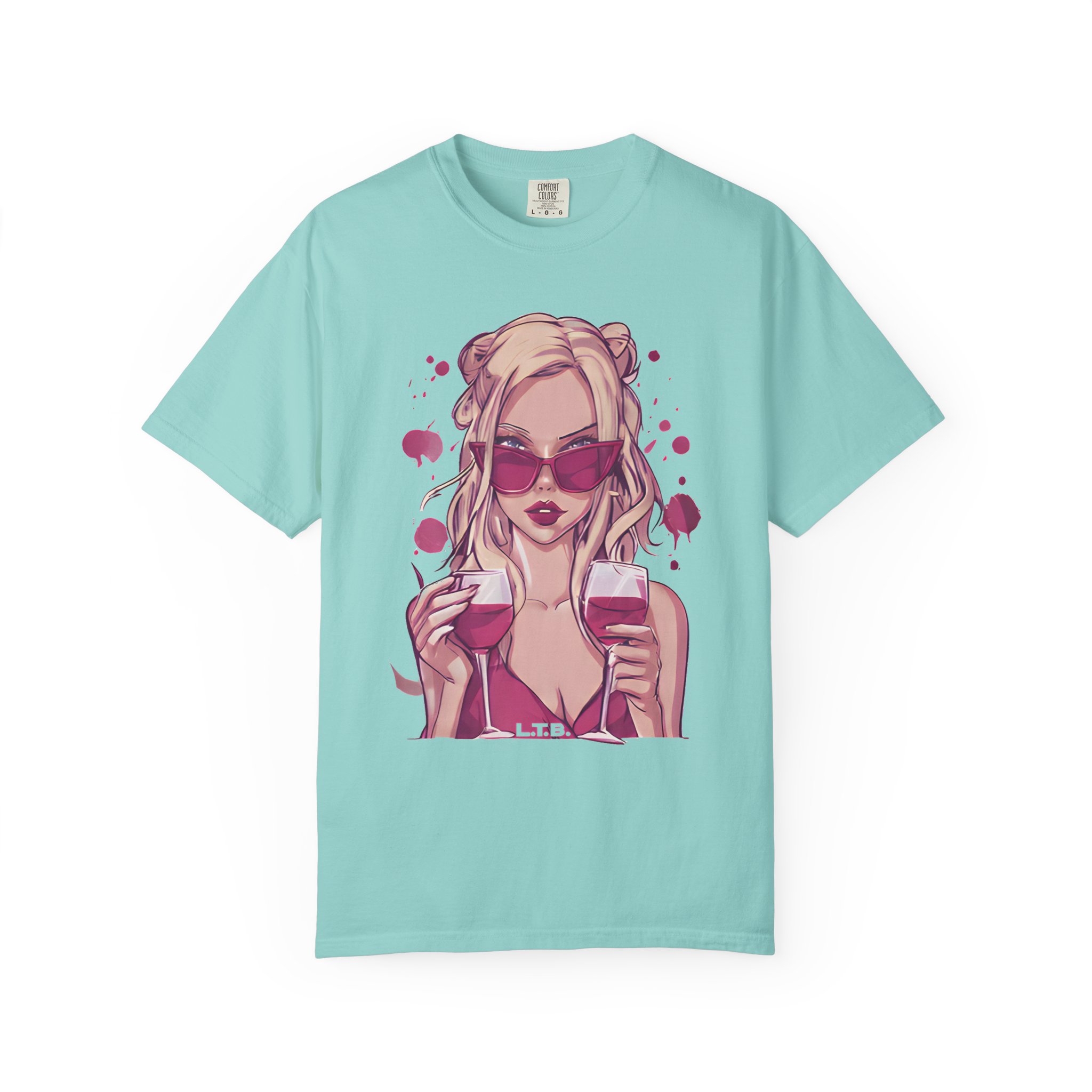Sip in style with this chic wine girl t-shirt featuring a fashionable illustrated portrait holding two glasses of red wine. With bold sunglasses, confident expression, and splash-art accents, this design blends modern fashion illustration with wine-lover lifestyle vibes. Perfect for girls’ night out, wine tastings, brunch dates, and casual glam looks, this Lil Tokyo Beat original delivers playful confidence and artistic edge. Designed for wine lovers, fashion fans, and anyone who enjoys stylish statement tees, this piece brings together fun, attitude, and wearable art. Kool. Artful. Timeless. A new voice in tee culture — where fashion meets flavor and personality shines.