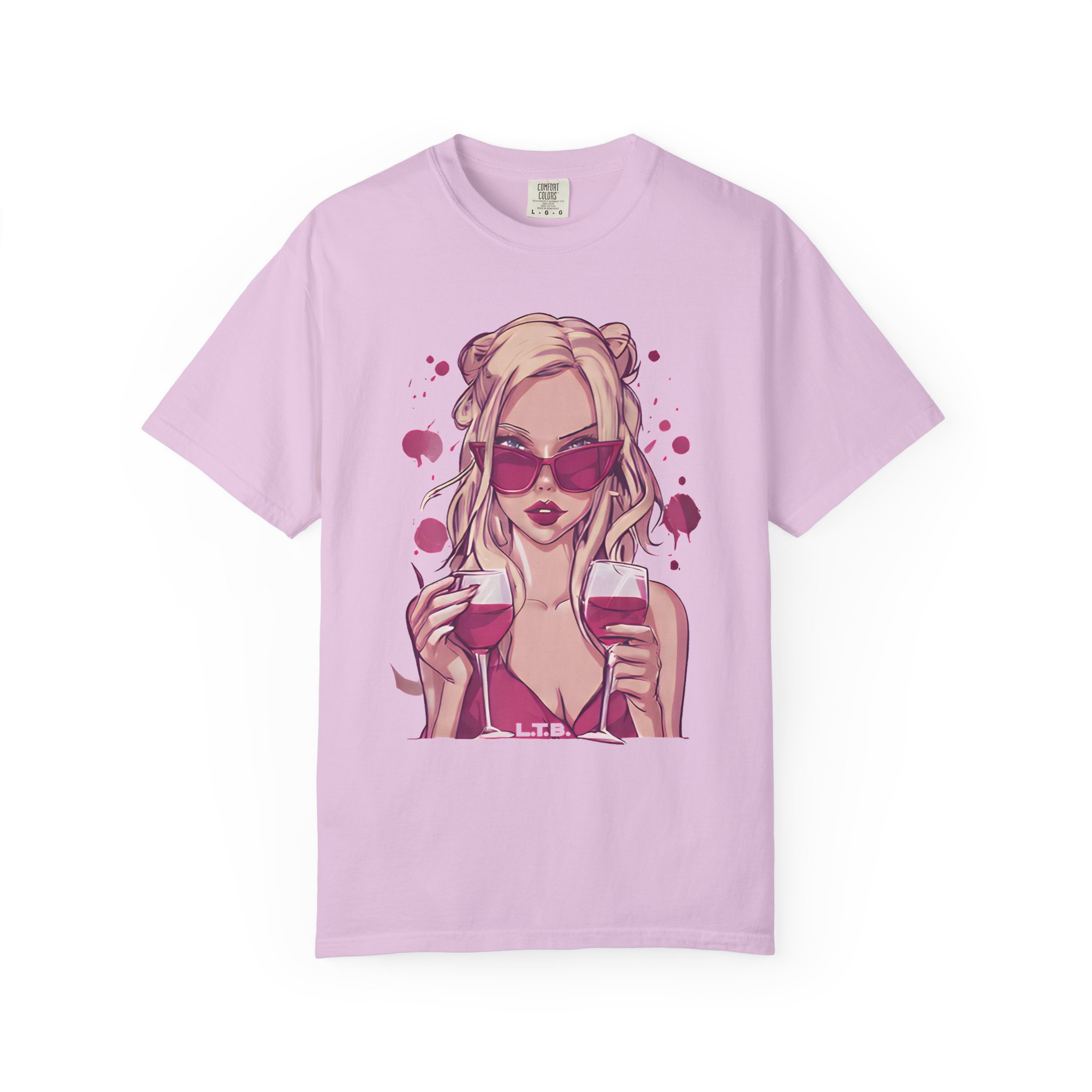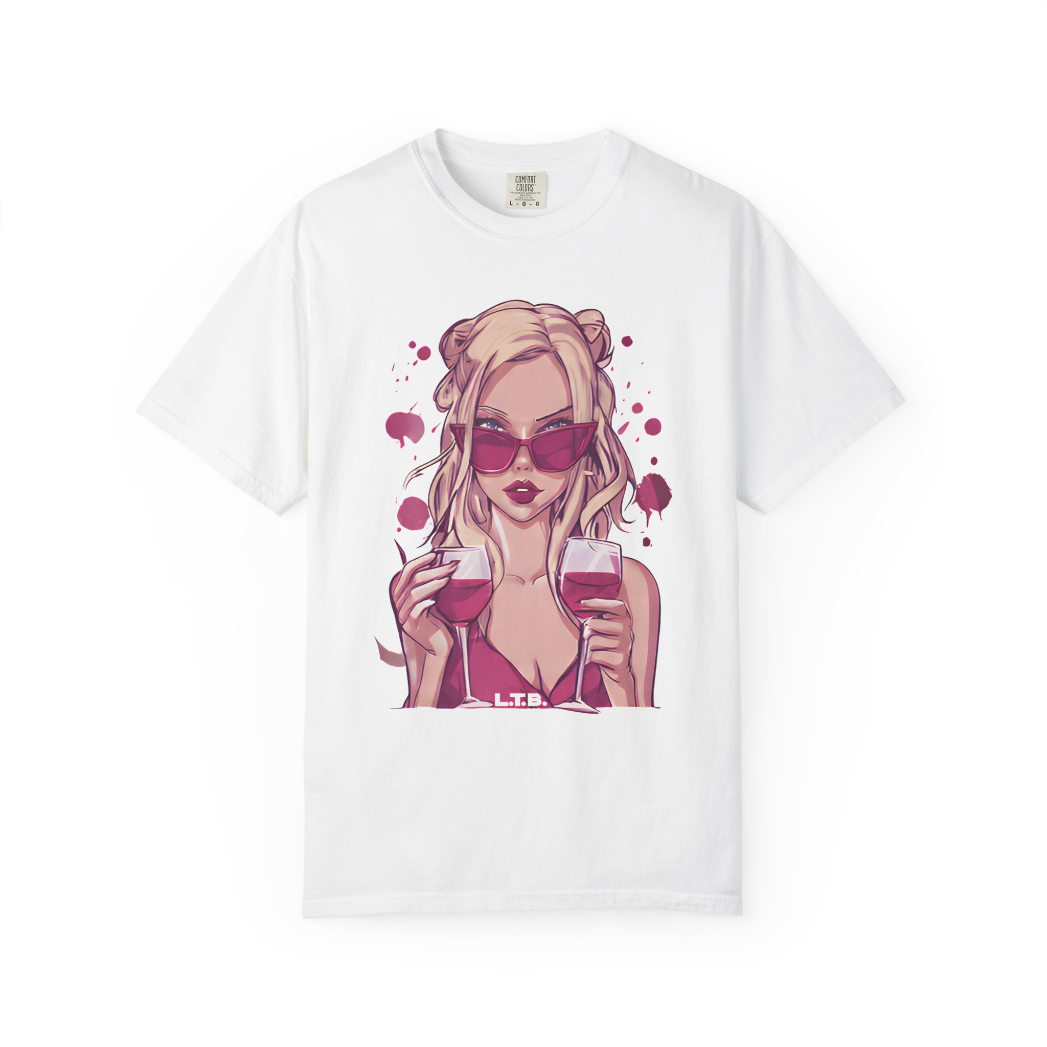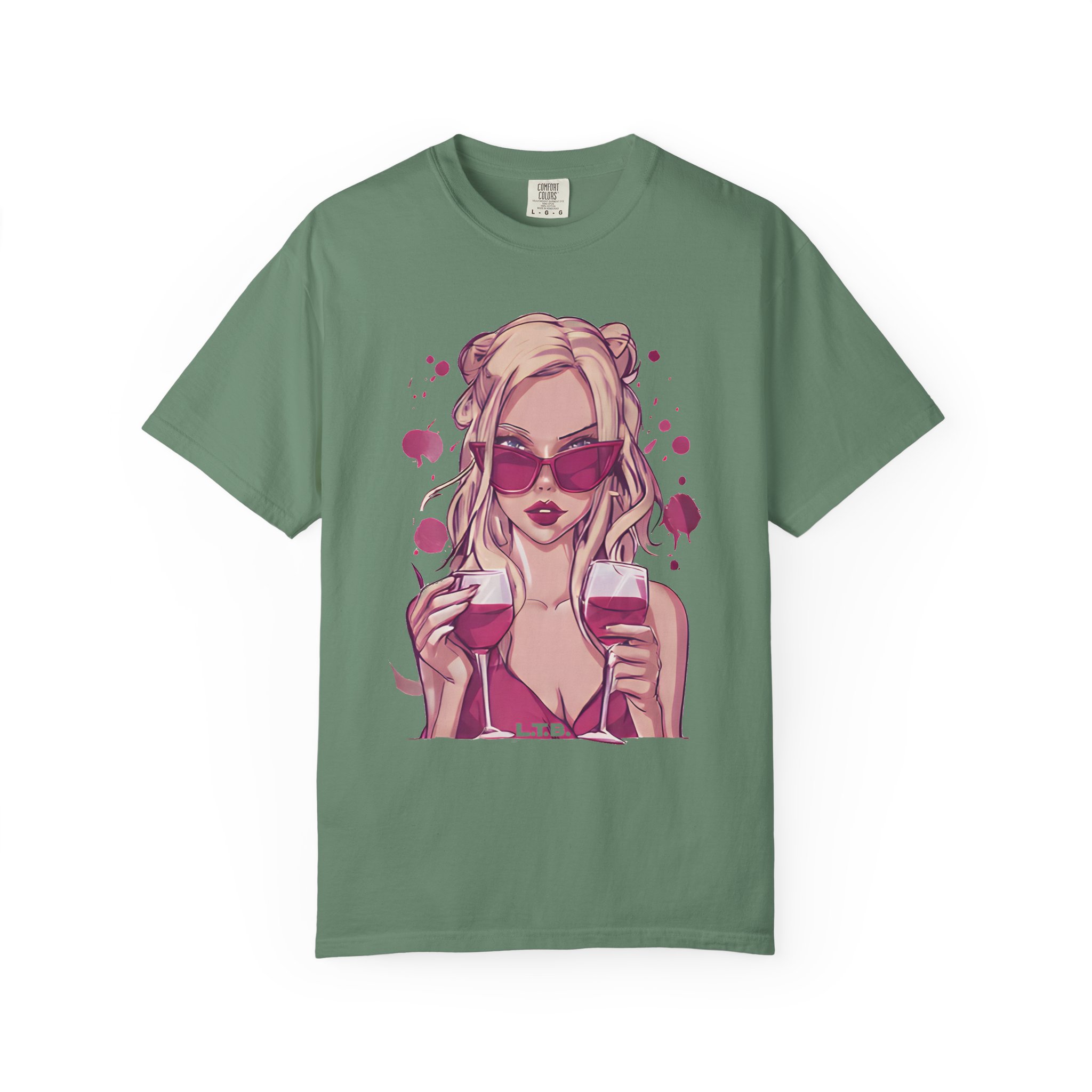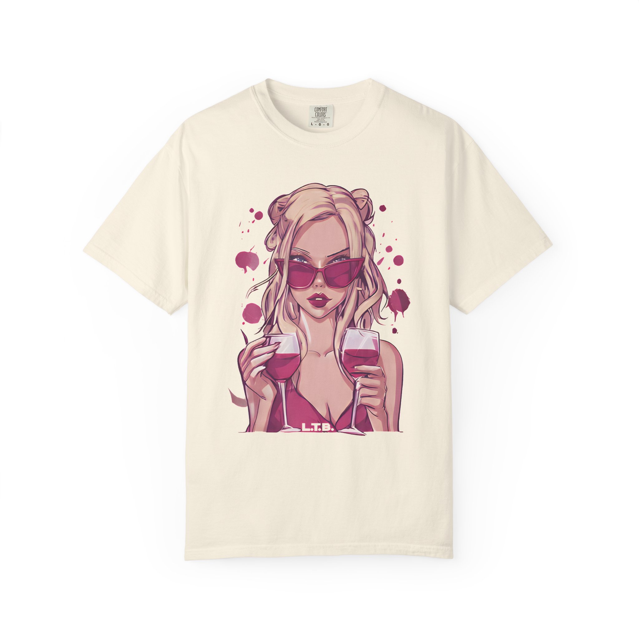 Sip in style with this chic wine girl t-shirt featuring a fashionable illustrated portrait holding two glasses of red wine. With bold sunglasses, confident expression, and splash-art accents, this design blends modern fashion illustration with wine-lover lifestyle vibes. Perfect for girls’ night out, wine tastings, brunch dates, and casual glam looks, this Lil Tokyo Beat original delivers playful confidence and artistic edge. Designed for wine lovers, fashion fans, and anyone who enjoys stylish statement tees, this piece brings together fun, attitude, and wearable art. Kool. Artful. Timeless. A new voice in tee culture — where fashion meets flavor and personality shines.