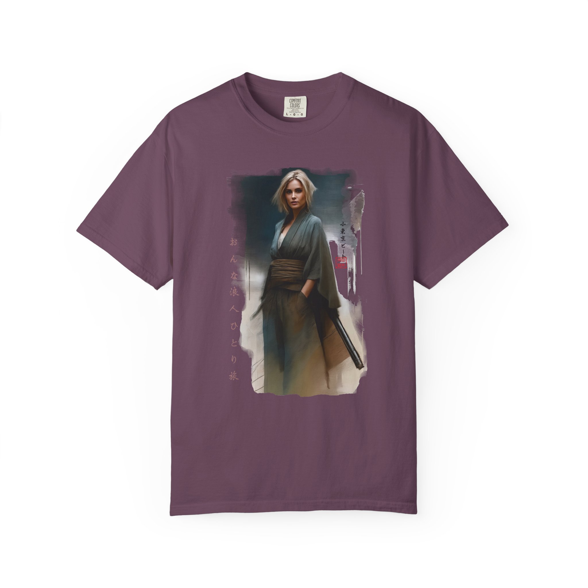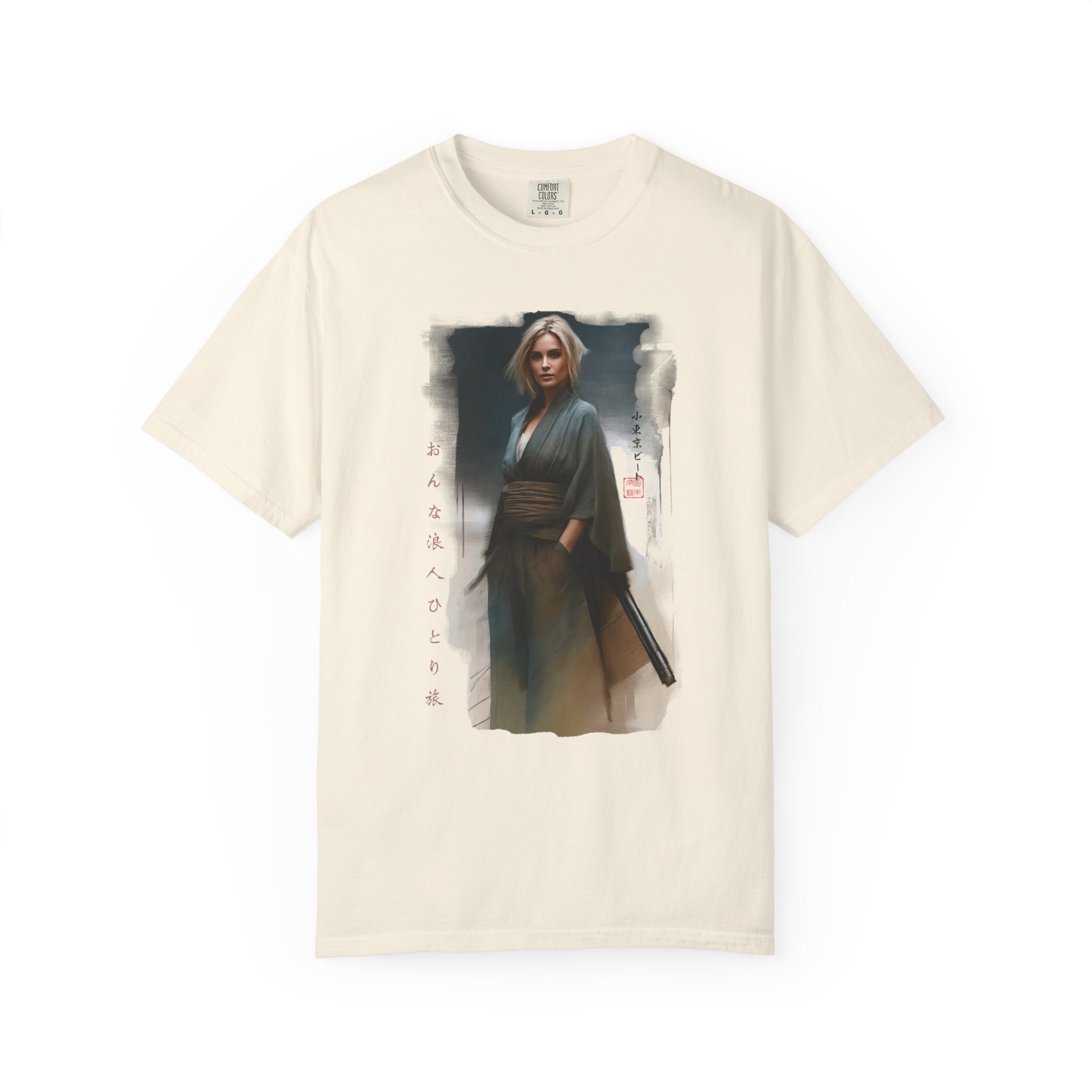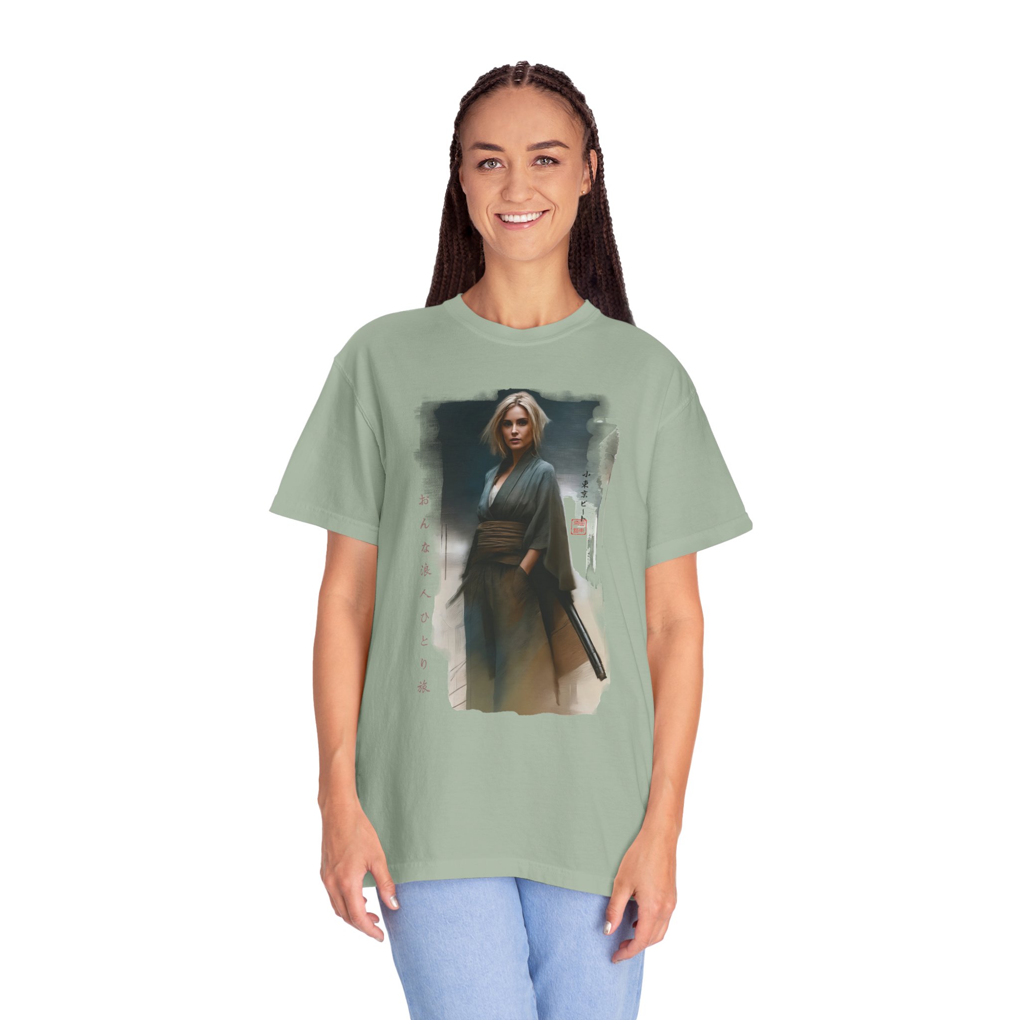 This Japanese style Woman Samurai Ronin Traveler Graphic Tee is a colorful, retro unisex t-shirt that makes a great gift for fans. Perfect for casual wear, this tee exudes a unique and cool vibe, suitable for gaijin looking to make a fashion statement. It is ideal for those who appreciate Japanese culture and history, and can be worn on casual days out or as a statement piece during cultural events and conventions. Product features – Available in multiple sizes from S to 4XL for the perfect fit – Double-needle stitching for durability – Garment-dyed fabric for a soft color and texture – Made with high quality, 100% ring-spun US cotton for long-lasting comfort – Relaxed fit and crew neckline for versatility in styling Care instructions – Machine wash: cold (max 30C or 90F) – Do not bleach – Tumble dry: low heat – Iron, steam or dry: low heat – Do not dryclean