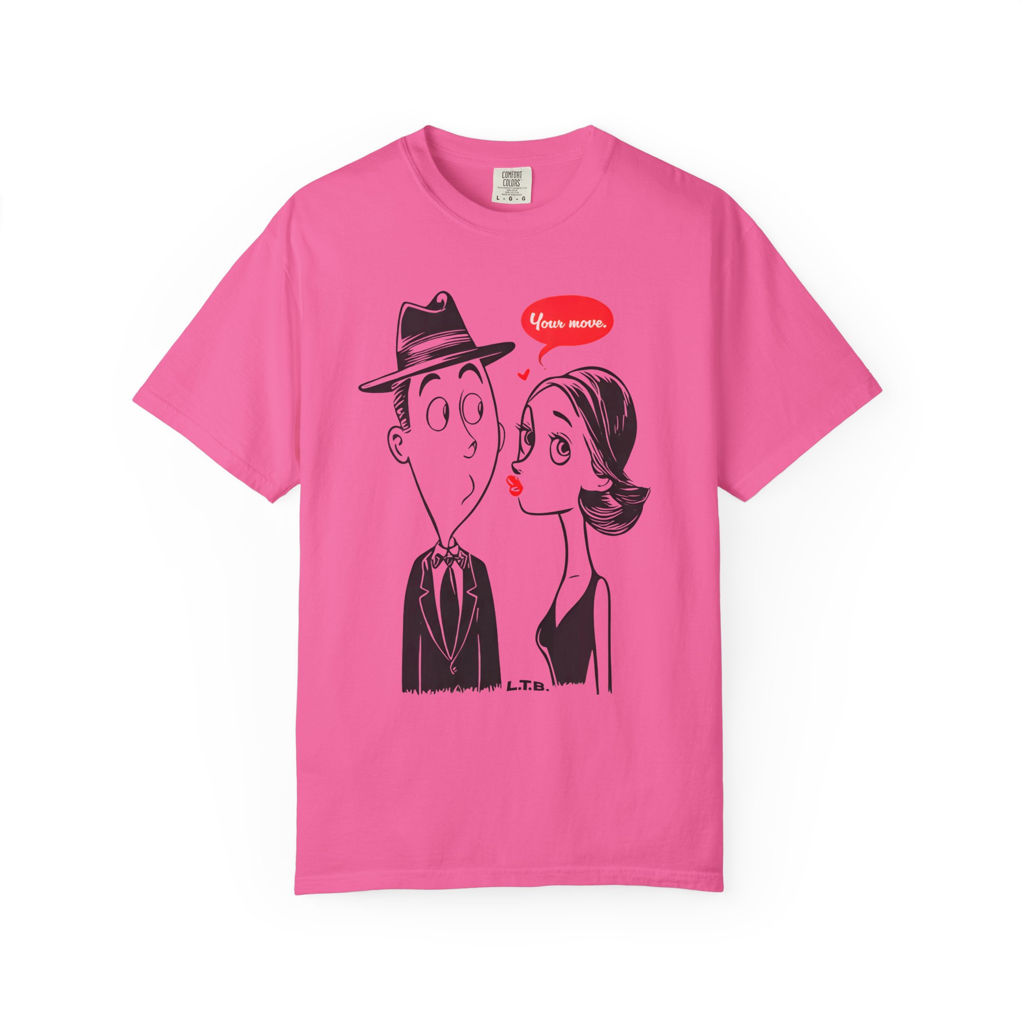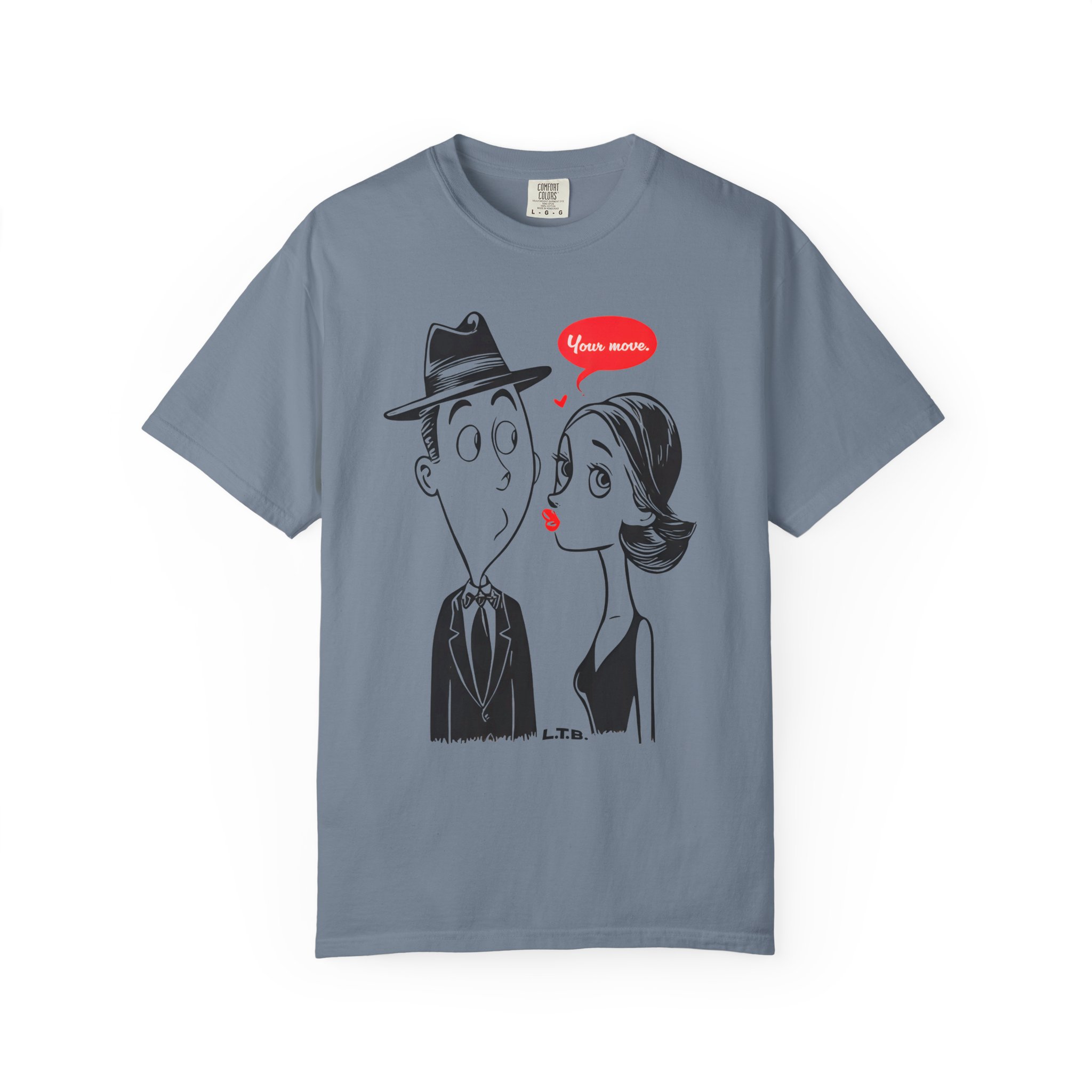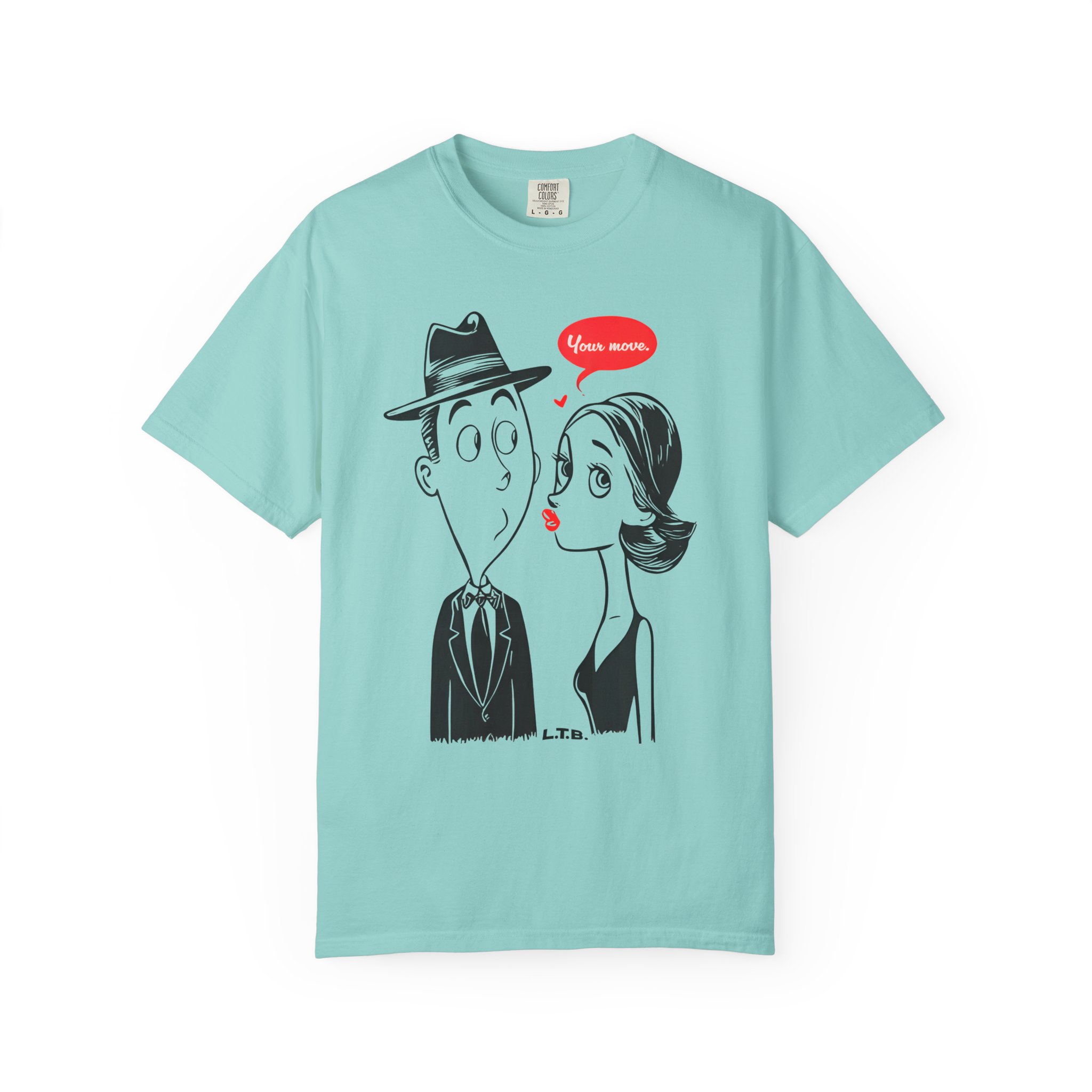 Perfect for couples, dating humor fans, and anyone who appreciates romantic comedy energy with a modern edge. A graphic tee that starts conversations without trying too hard.