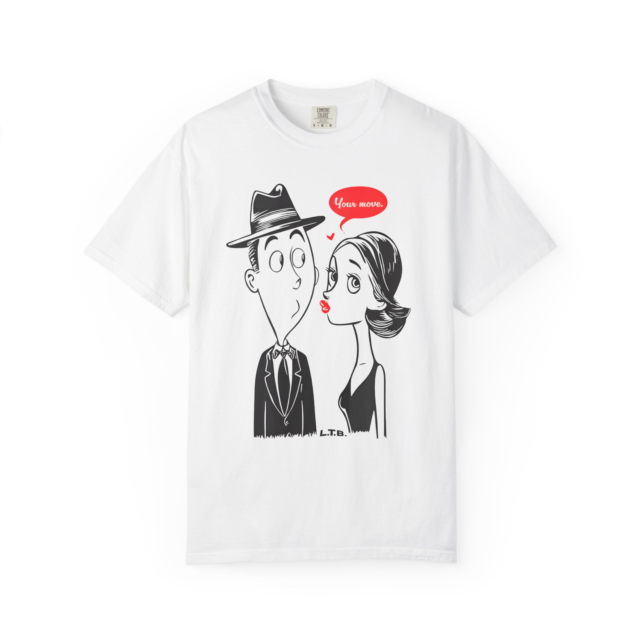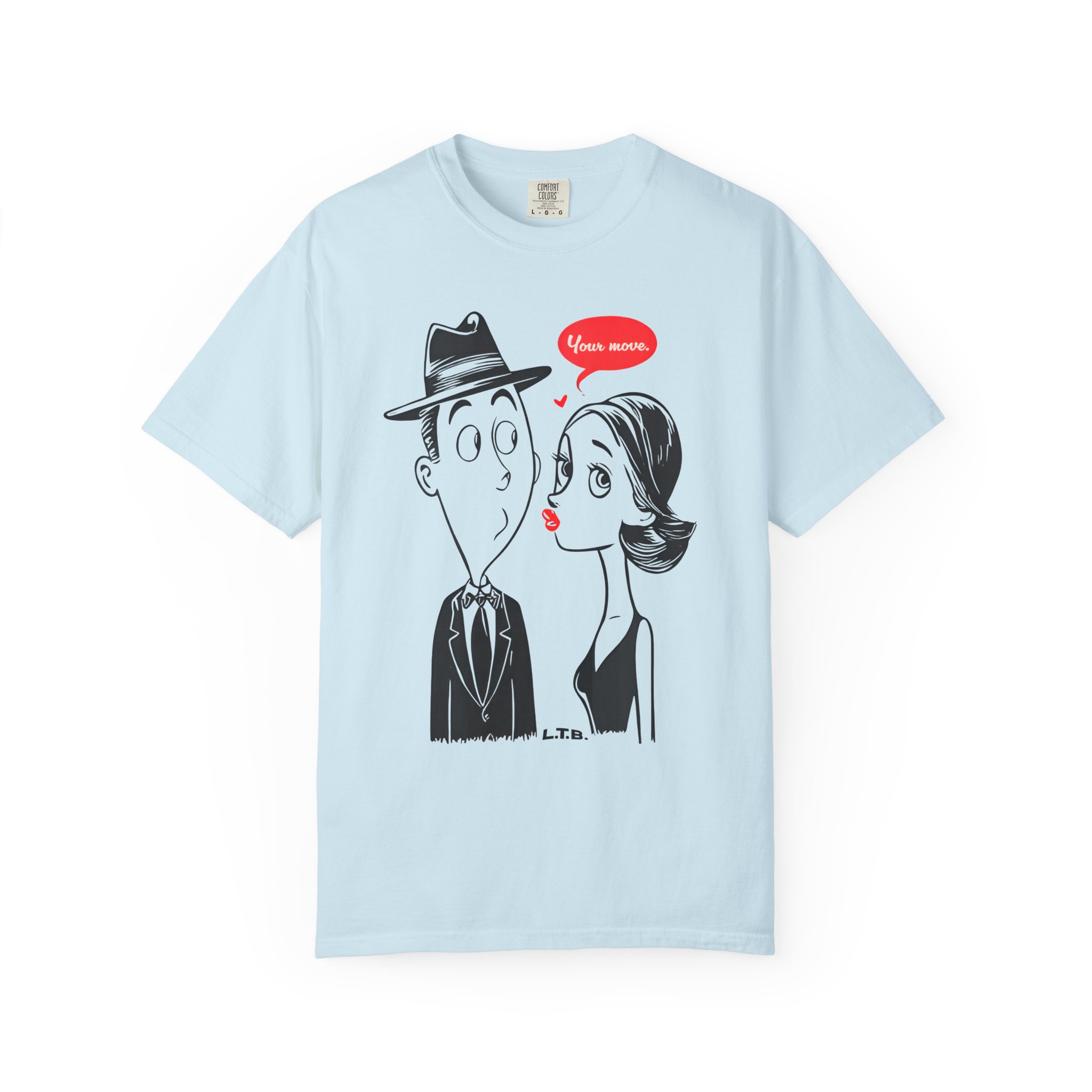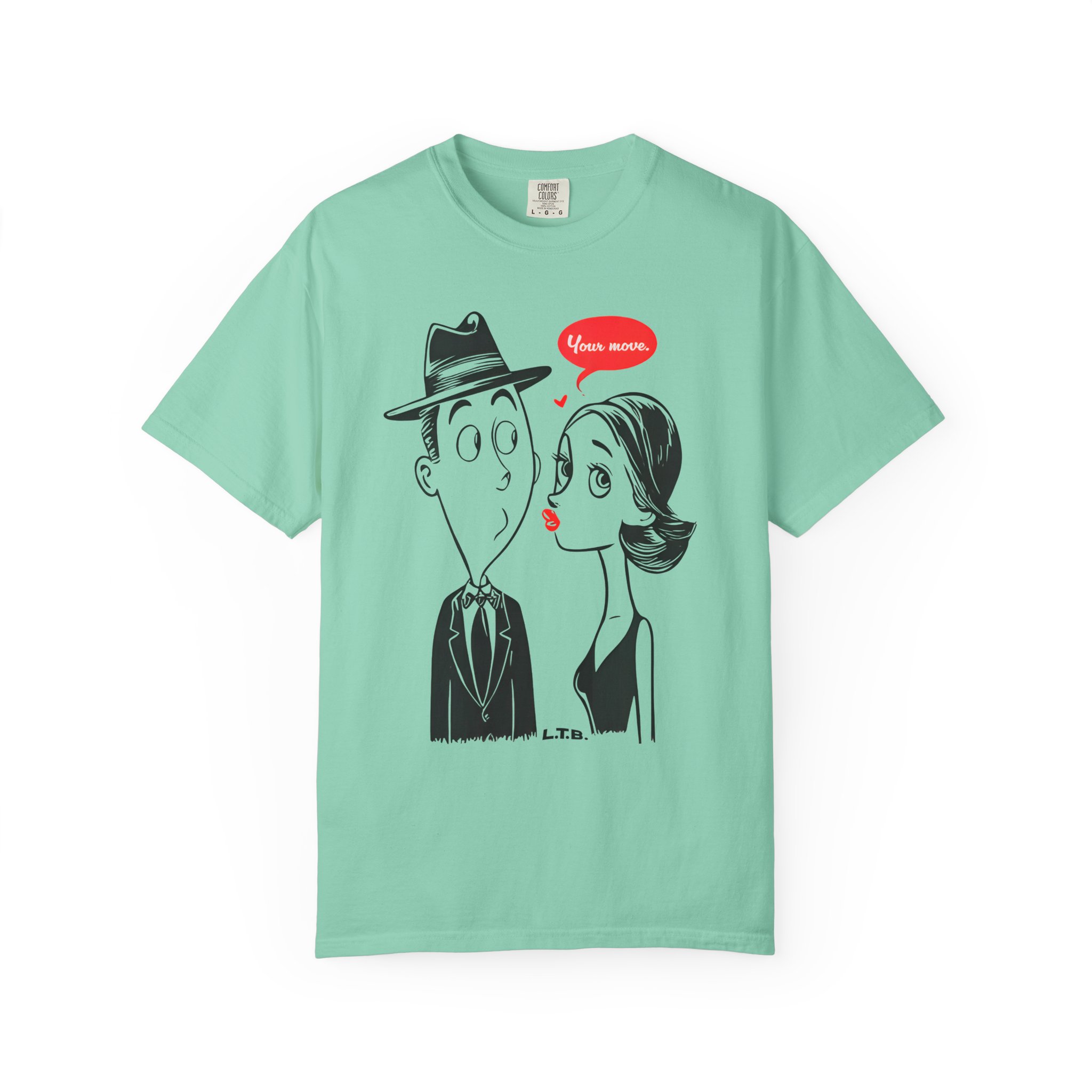 Perfect for couples, dating humor fans, and anyone who appreciates romantic comedy energy with a modern edge. A graphic tee that starts conversations without trying too hard.